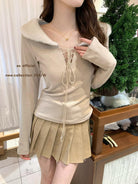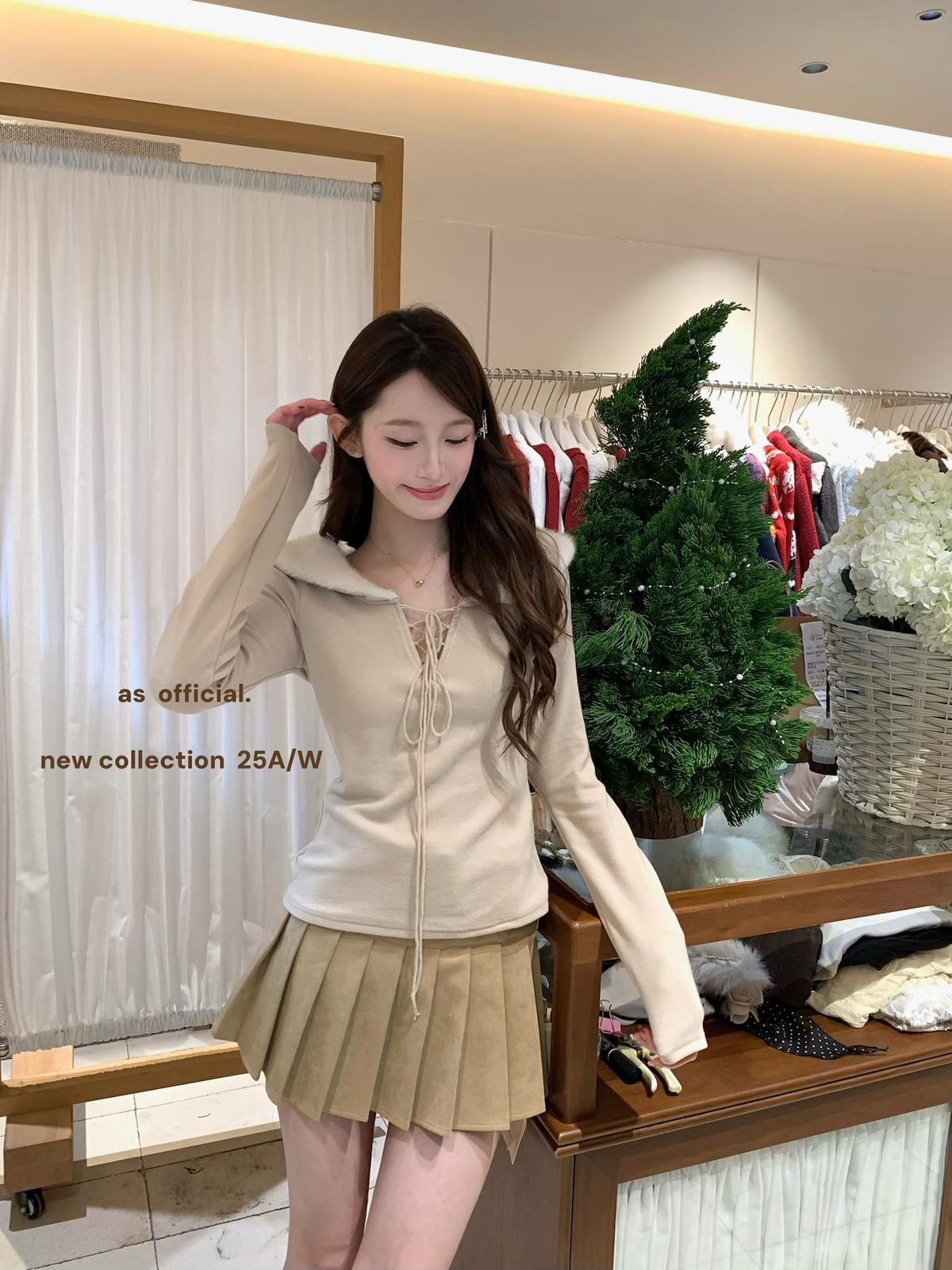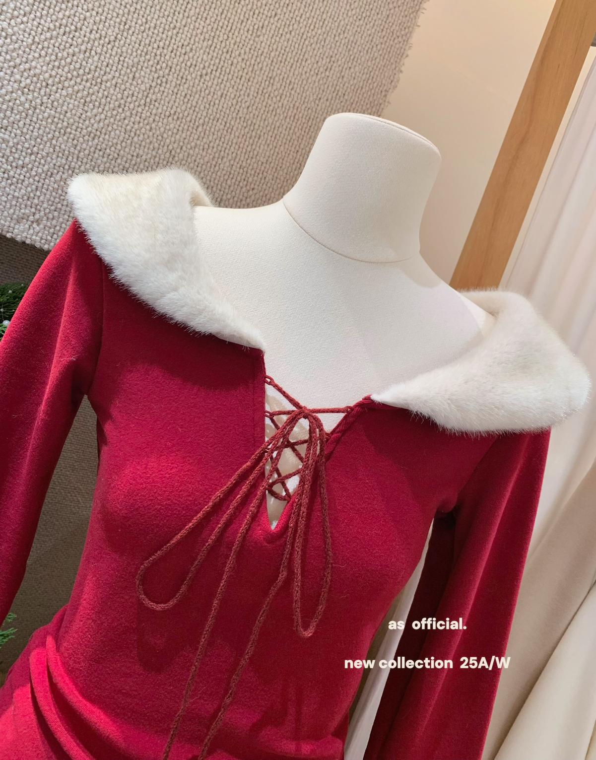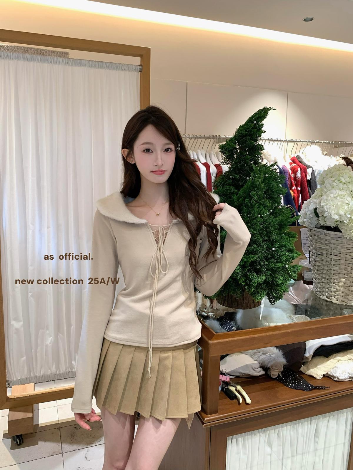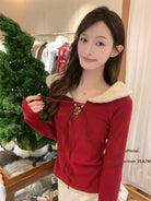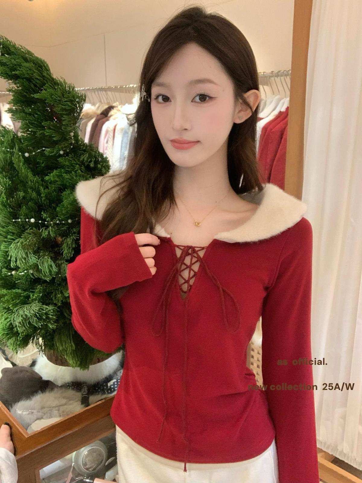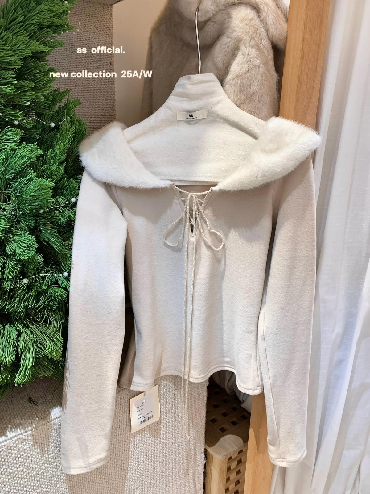 【C8243】絕美上新!節日氛圍首選• 嬌滴滴撞色毛領小衫