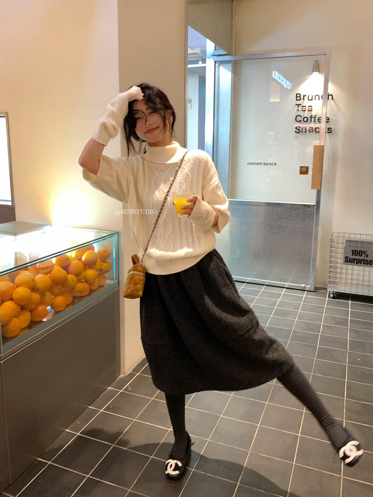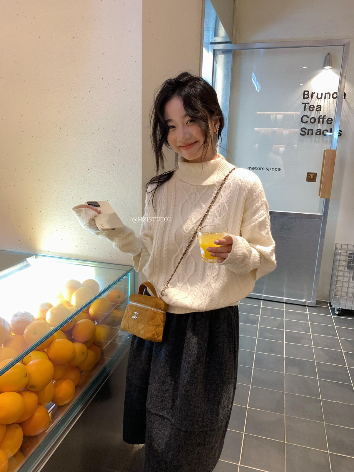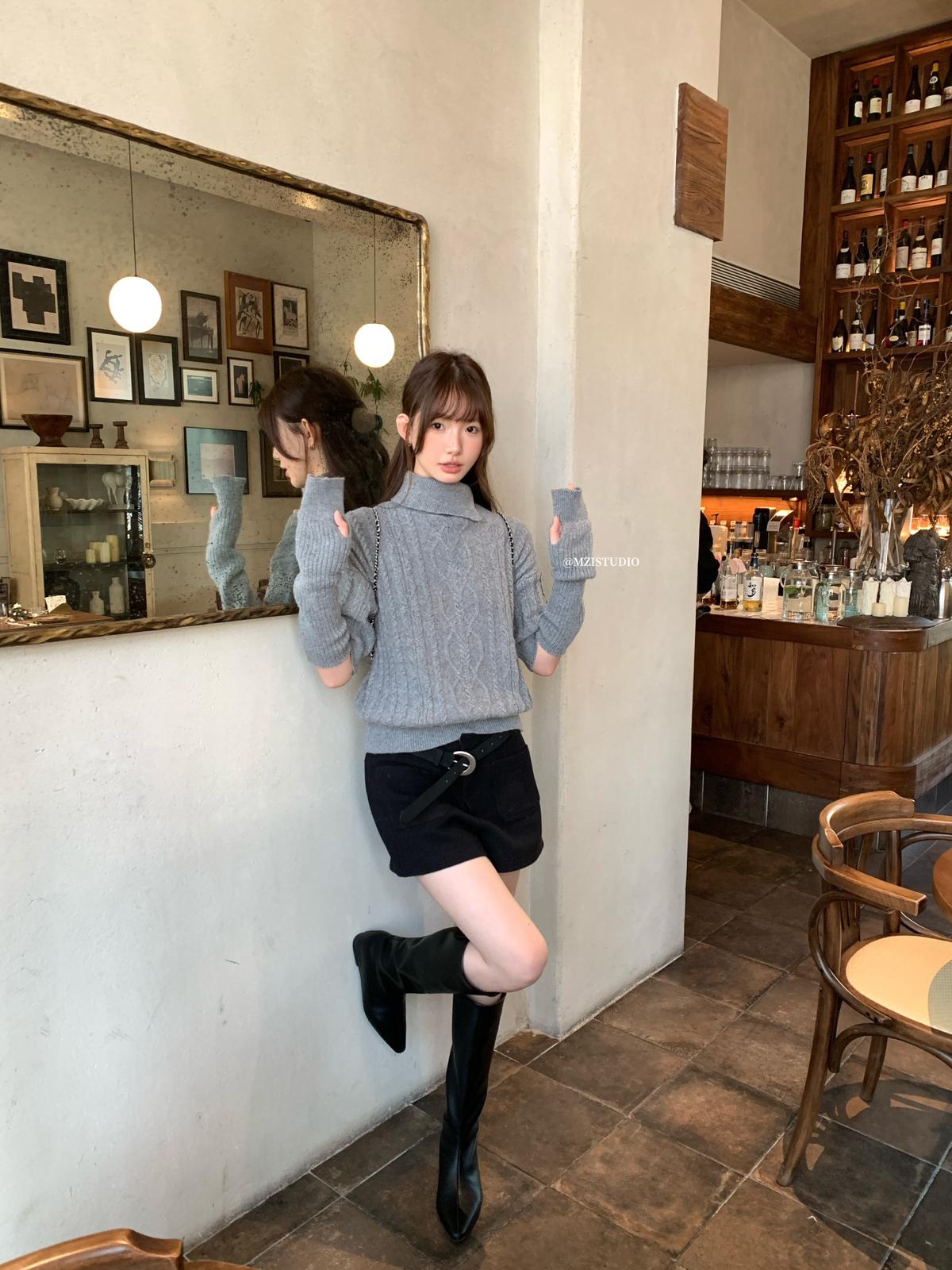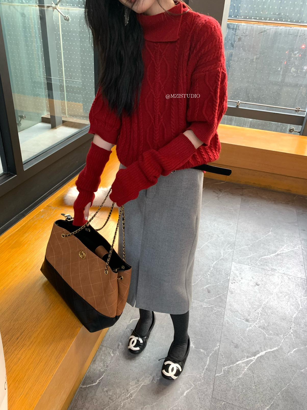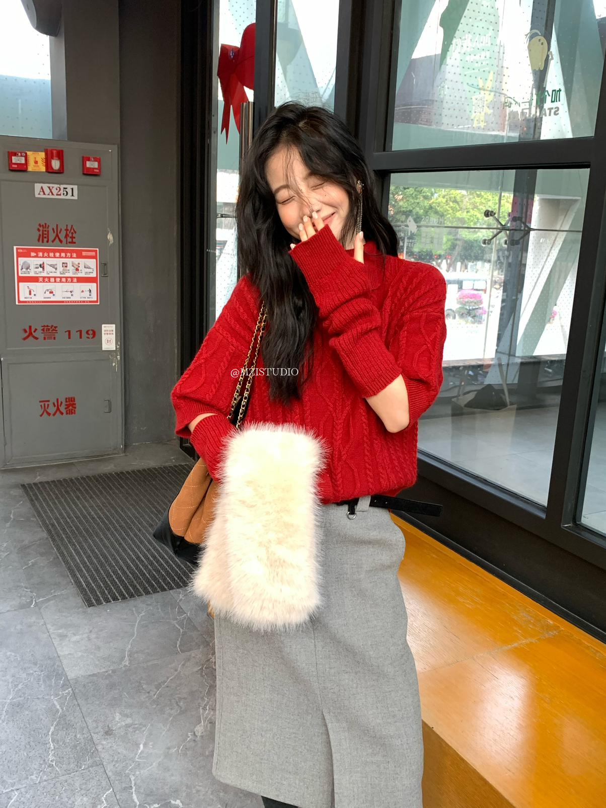 3. 【C8246】雪季聖誕碎片韓感麻花淑女型復古設計感套頭保暖毛衣(配袖套)(含10%浣熊毛)