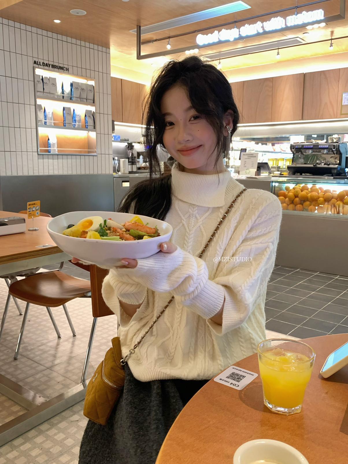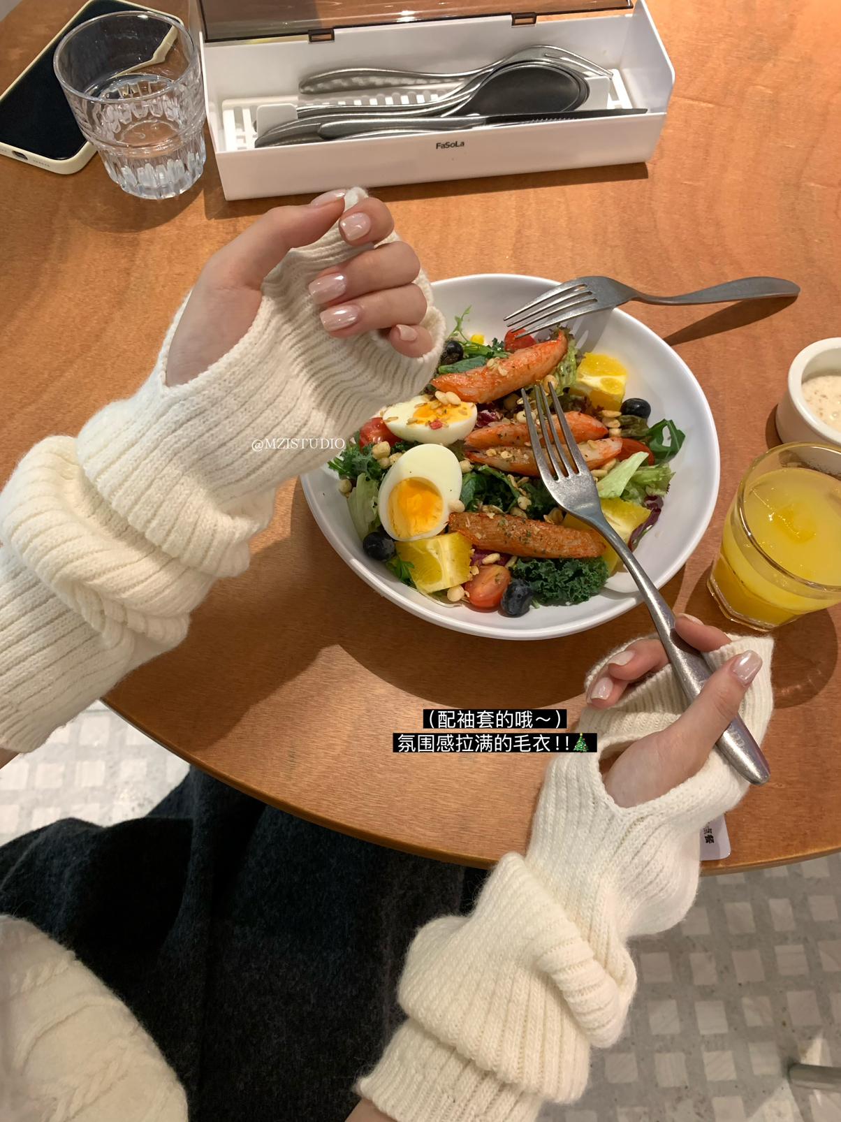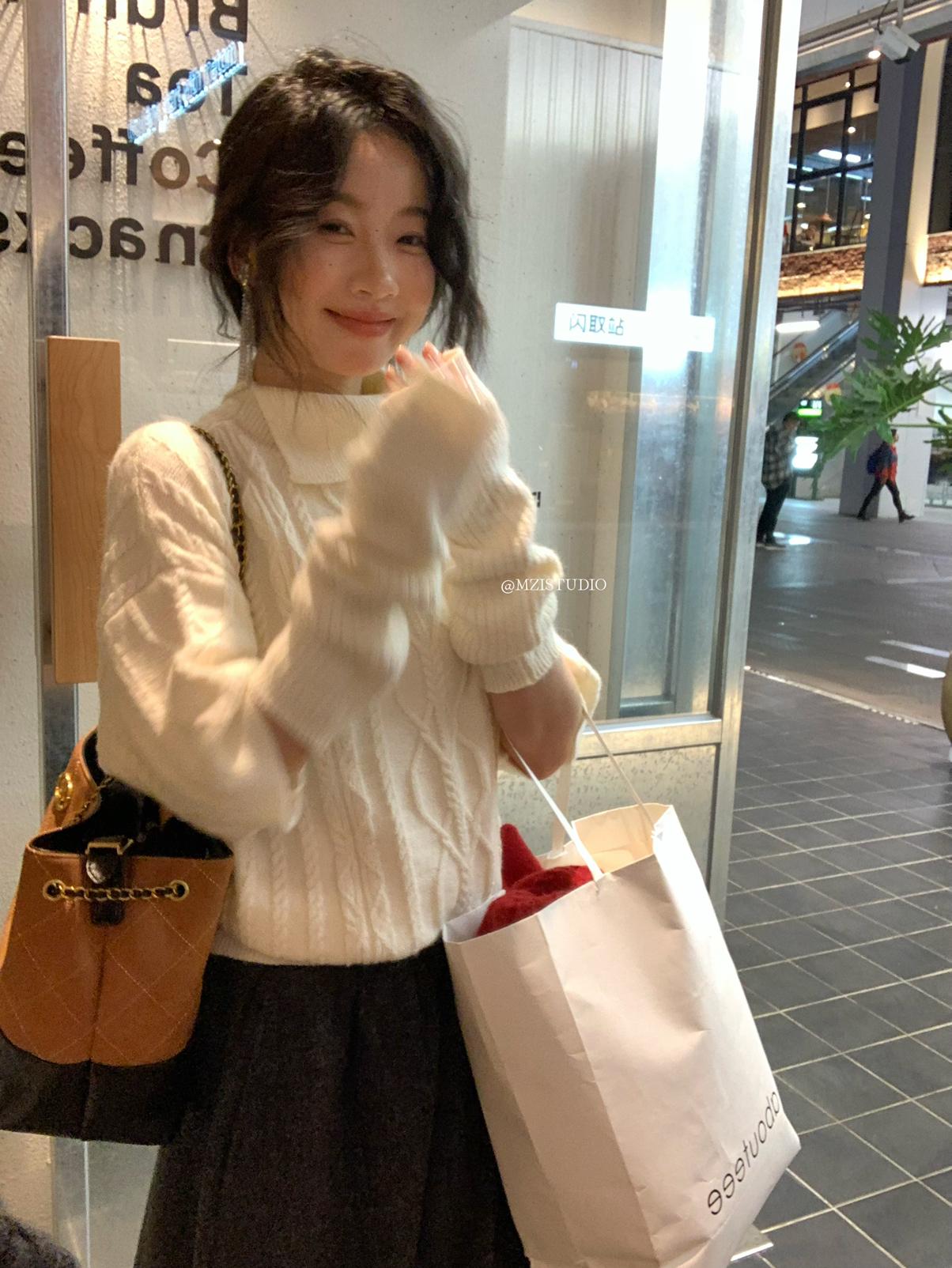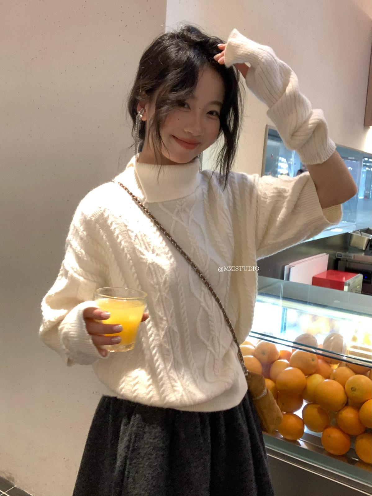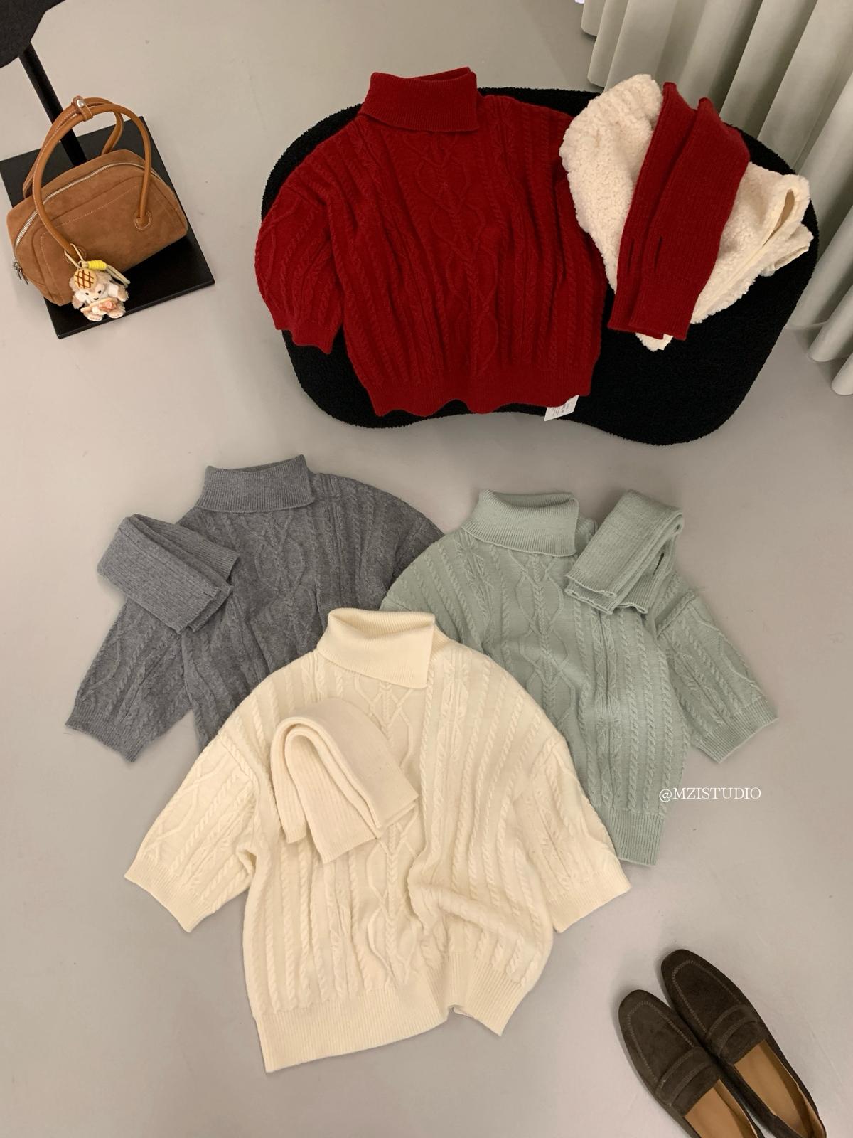 3. 【C8246】雪季聖誕碎片韓感麻花淑女型復古設計感套頭保暖毛衣(配袖套)(含10%浣熊毛)