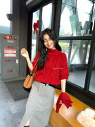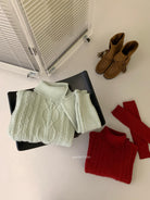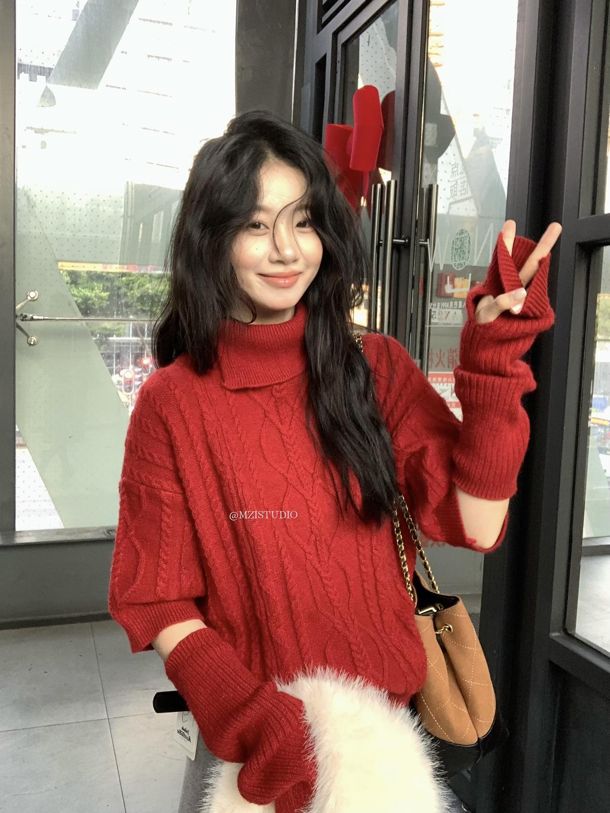 【C8246】雪季聖誕碎片韓感麻花淑女型復古設計感套頭保暖毛衣(配袖套)(含10%浣熊毛)