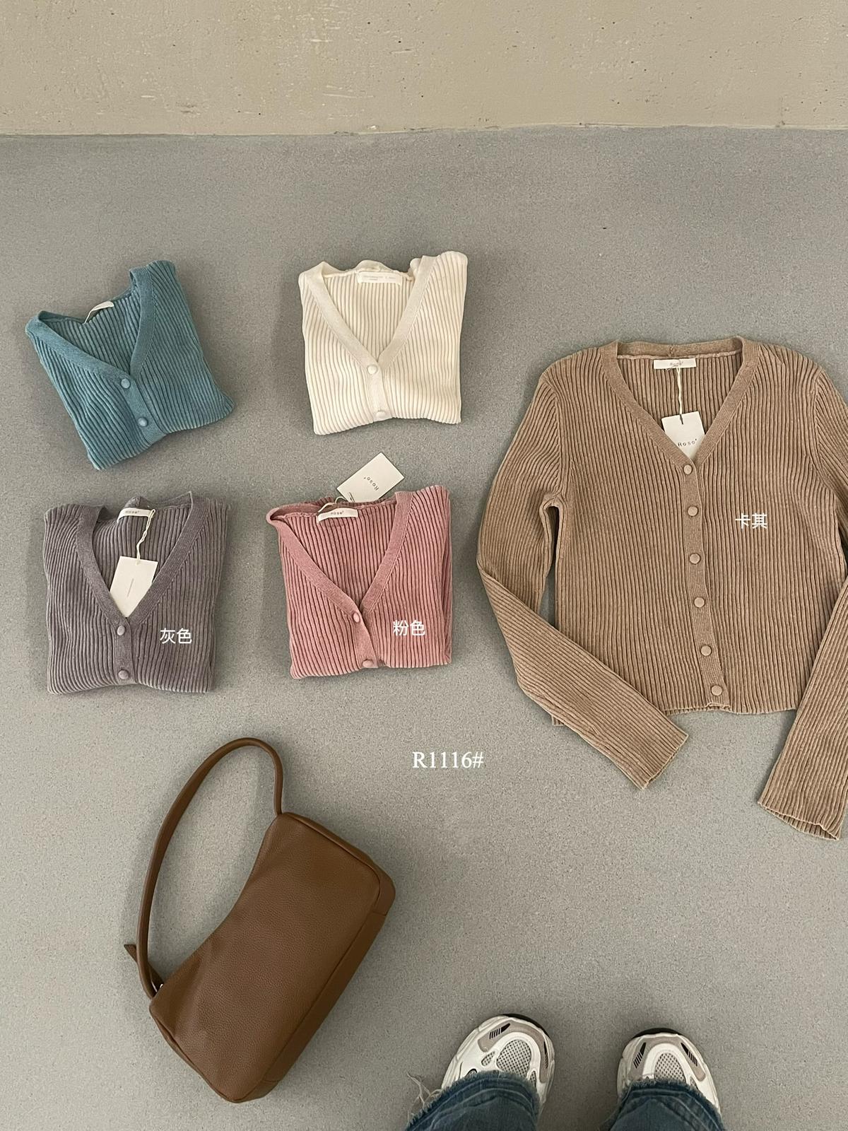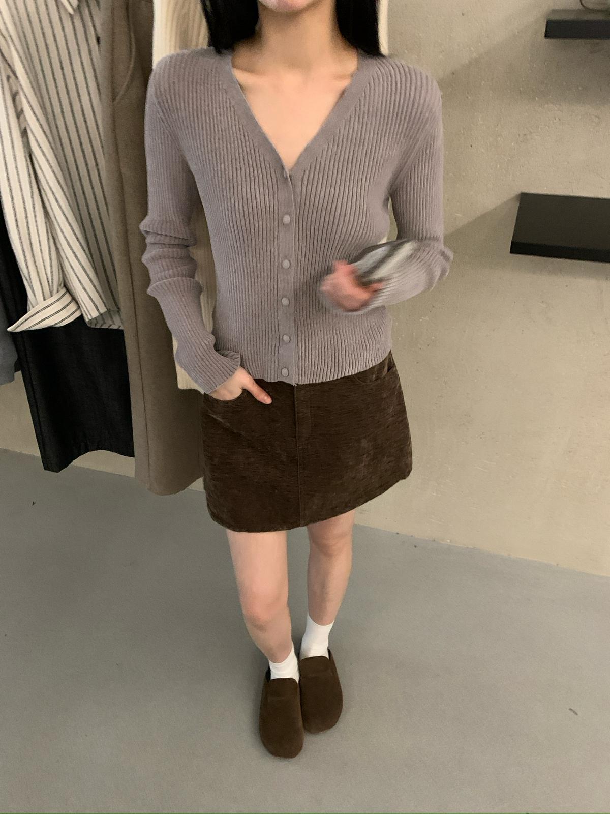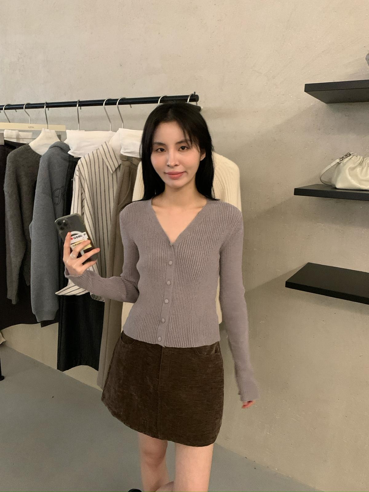 3. 【C8252】簡約v領雪尼爾長袖針織開衫