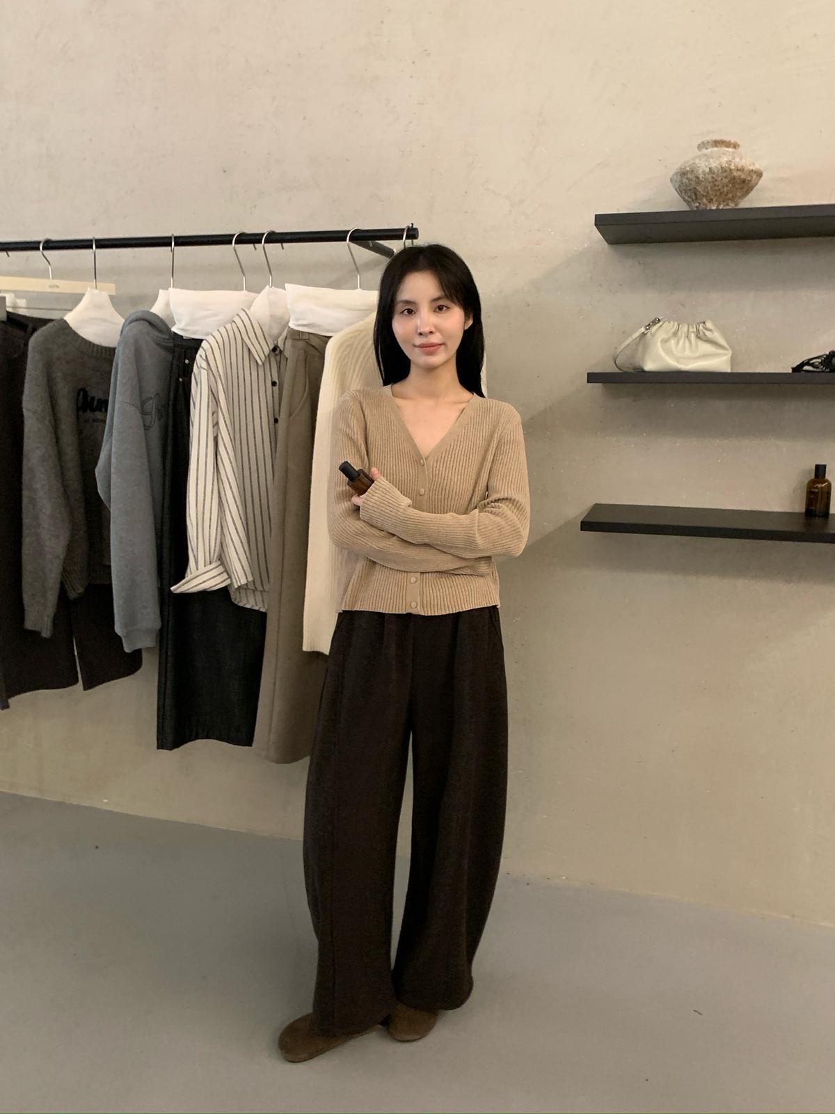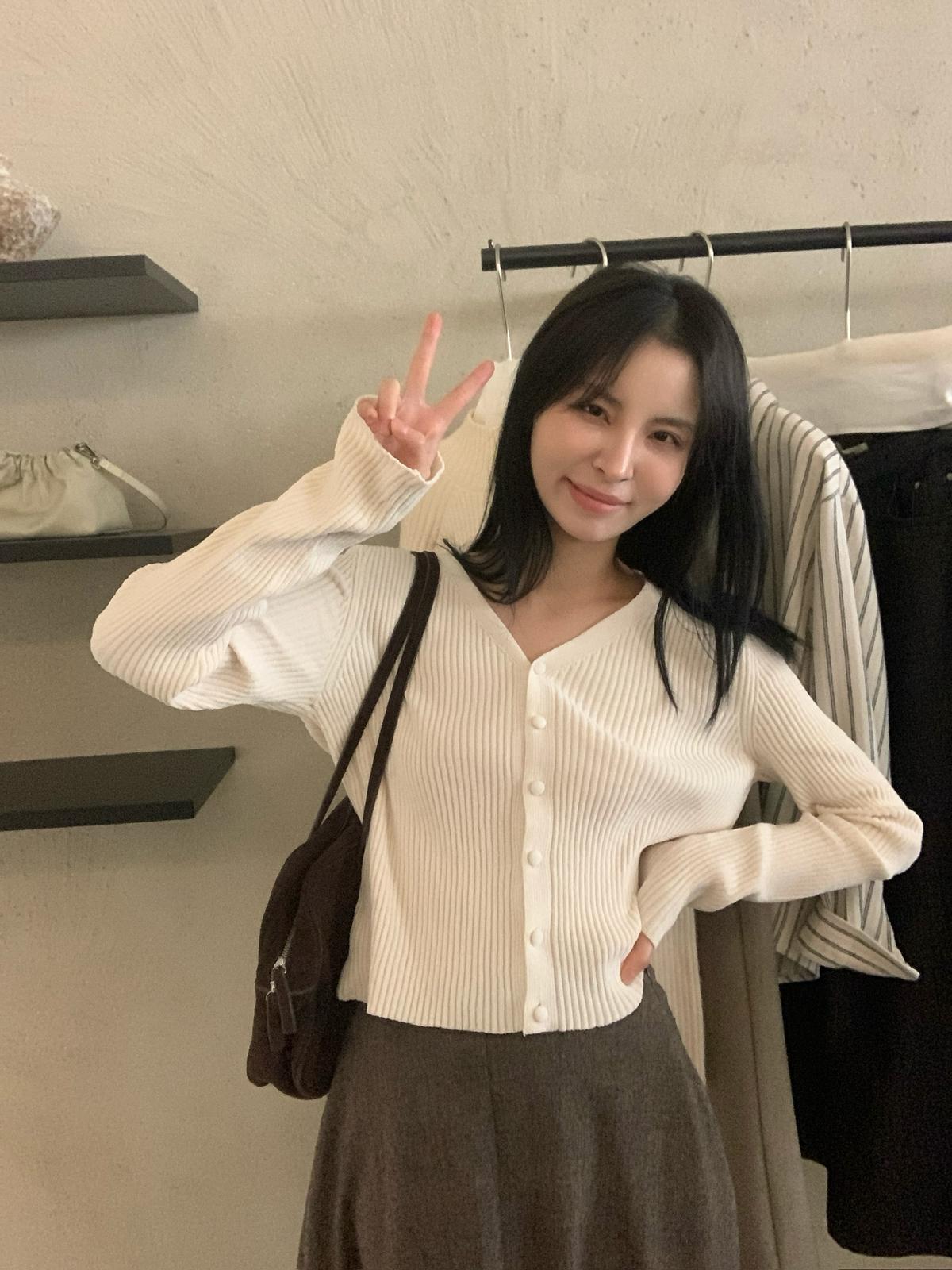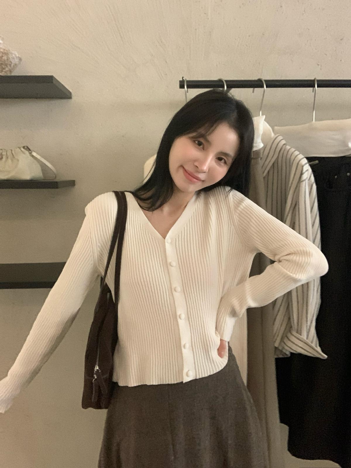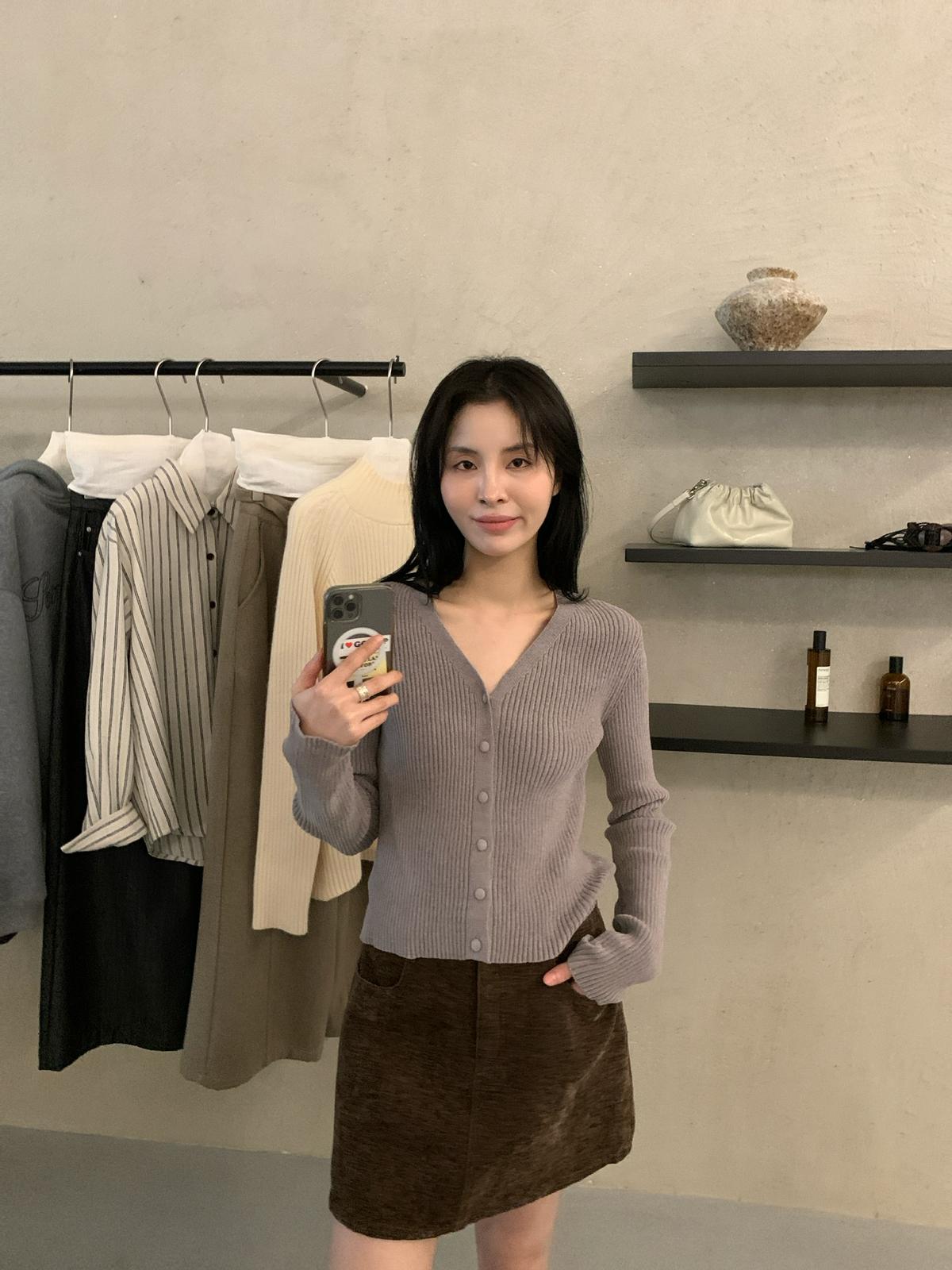 3. 【C8252】簡約v領雪尼爾長袖針織開衫