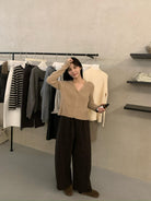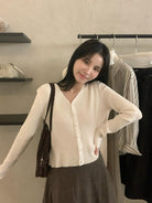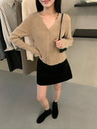 【C8252】簡約v領雪尼爾長袖針織開衫