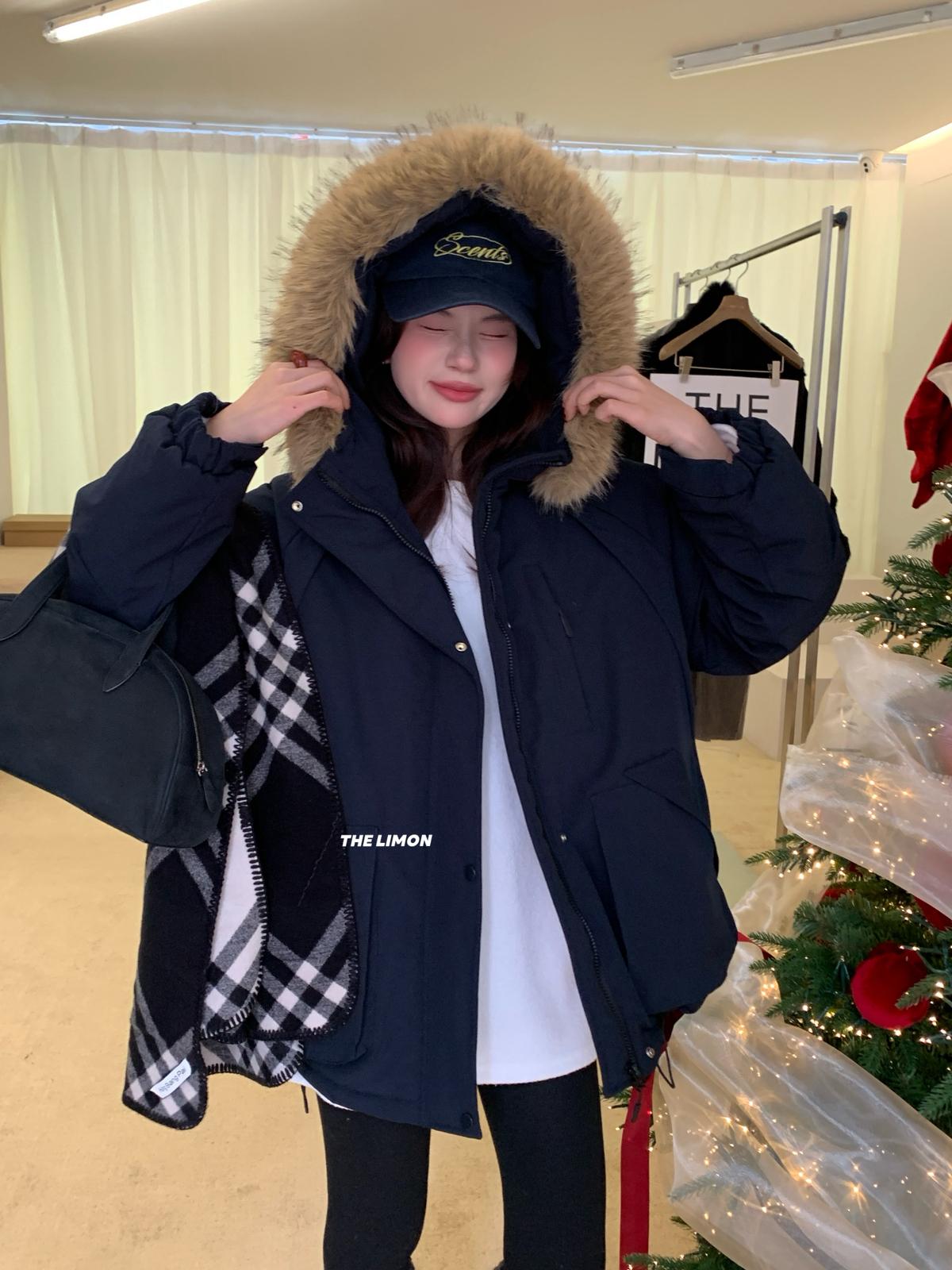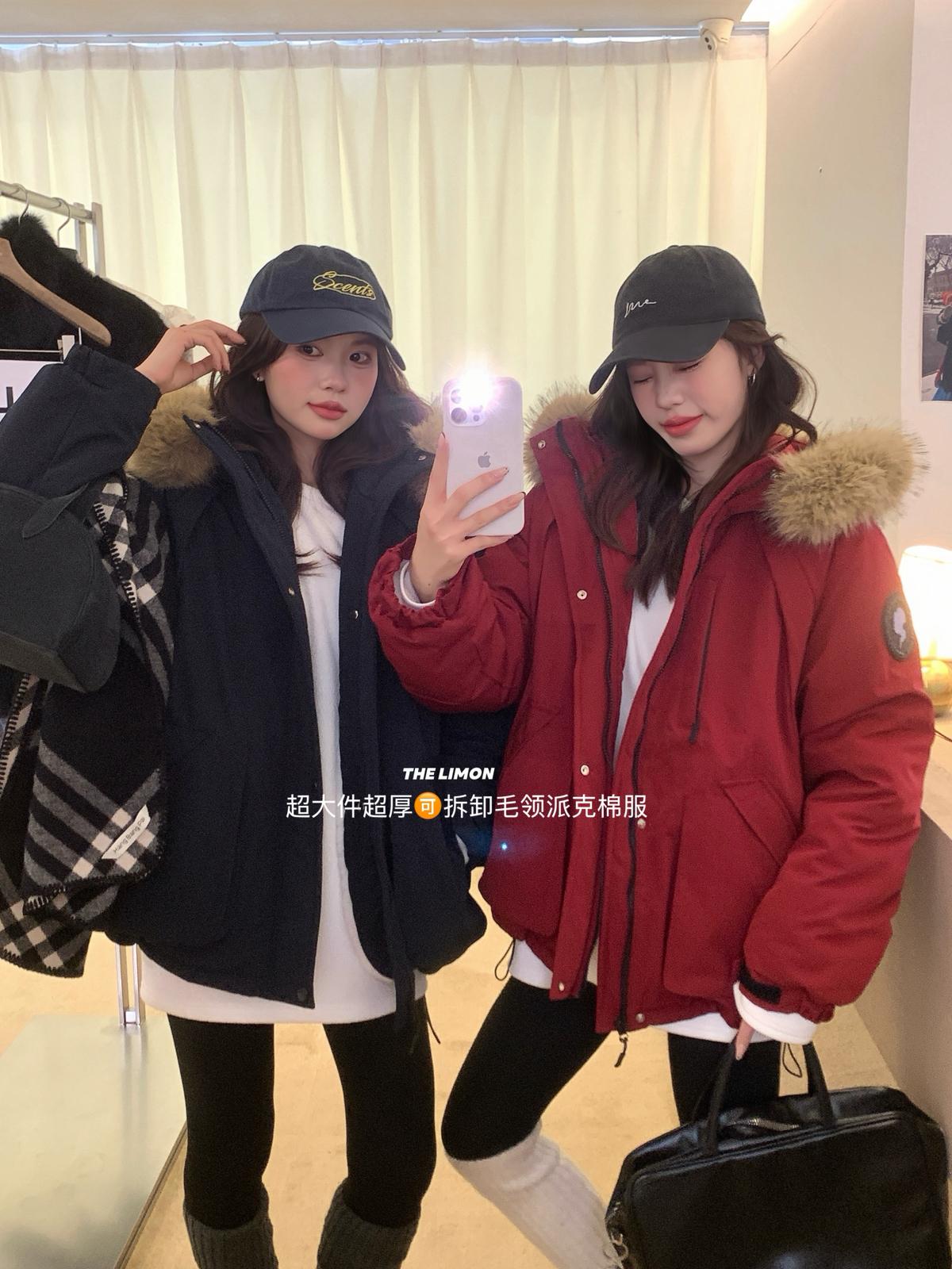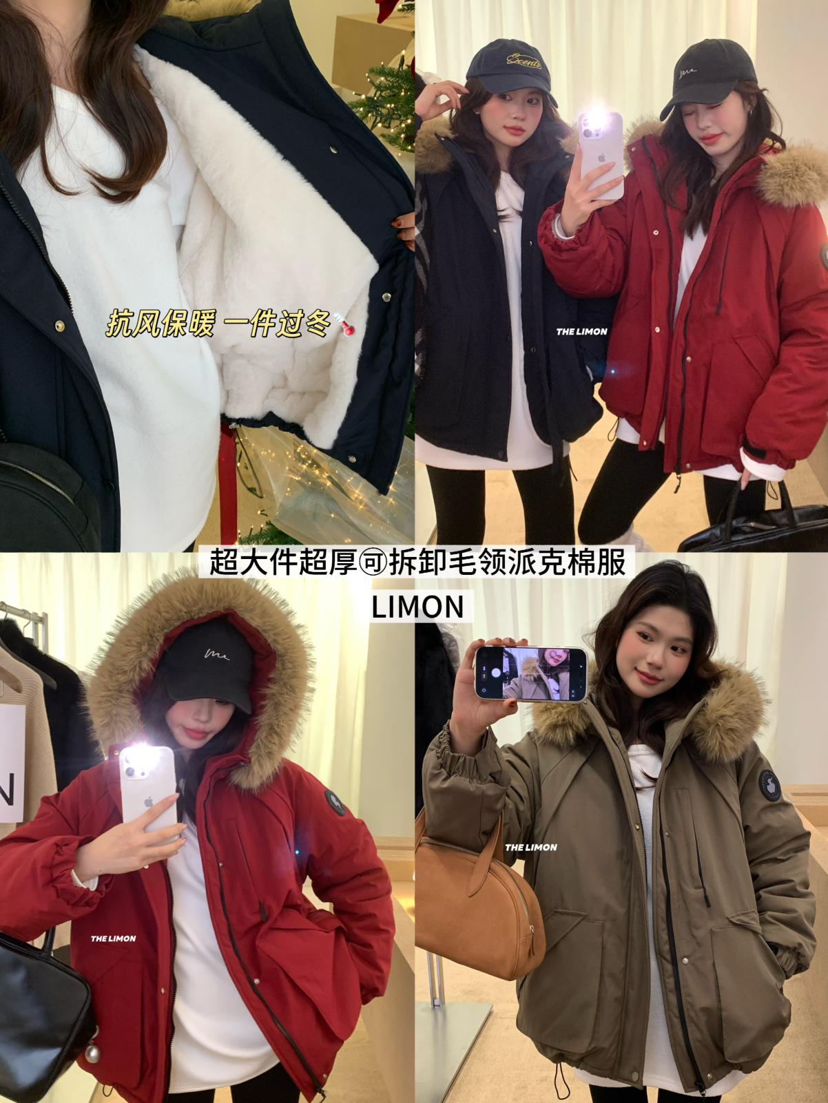 3. 【C8265】一件過冬!時髦加絨環保毛工裝派克服棉服(毛領可拆卸)