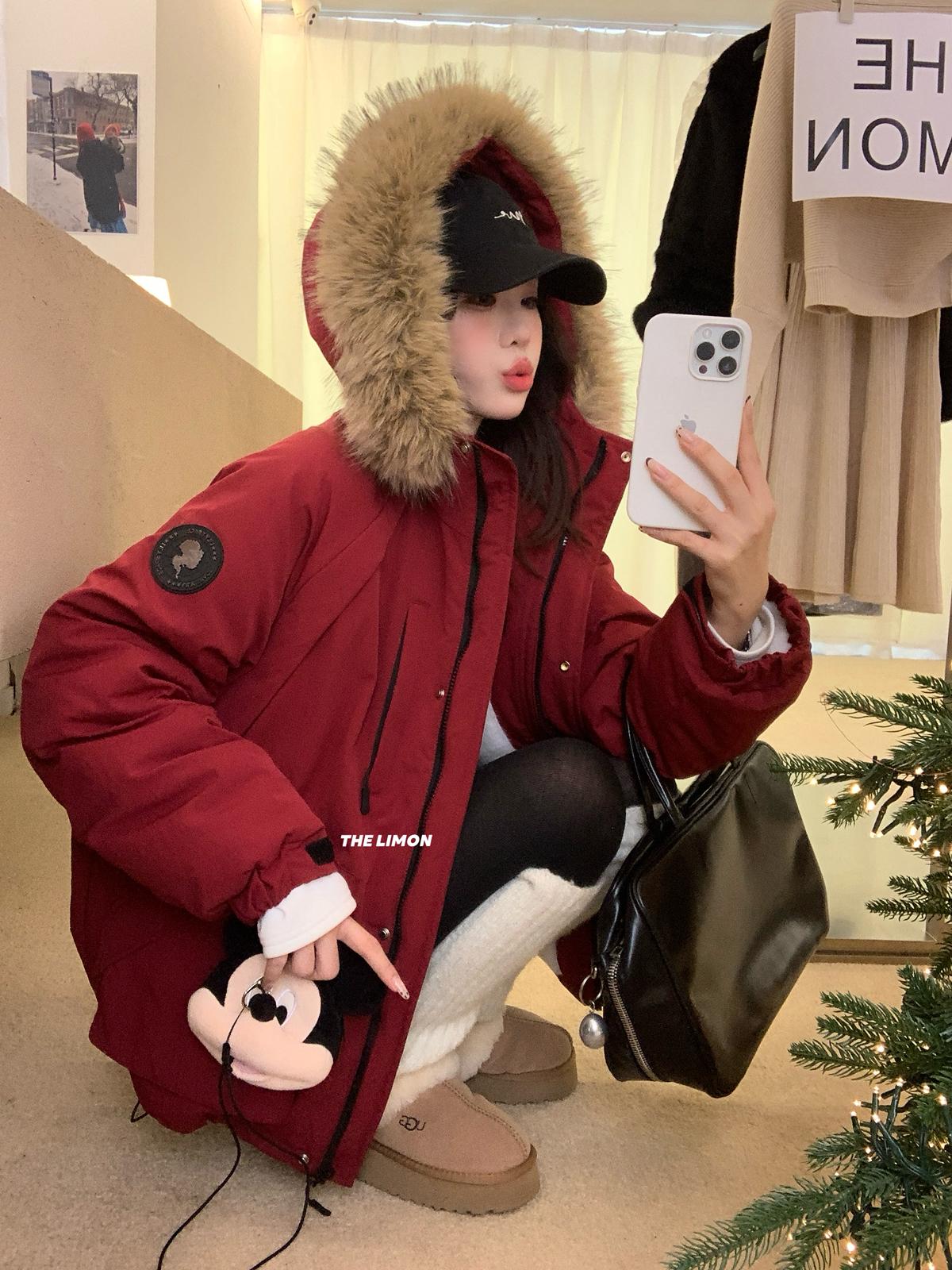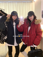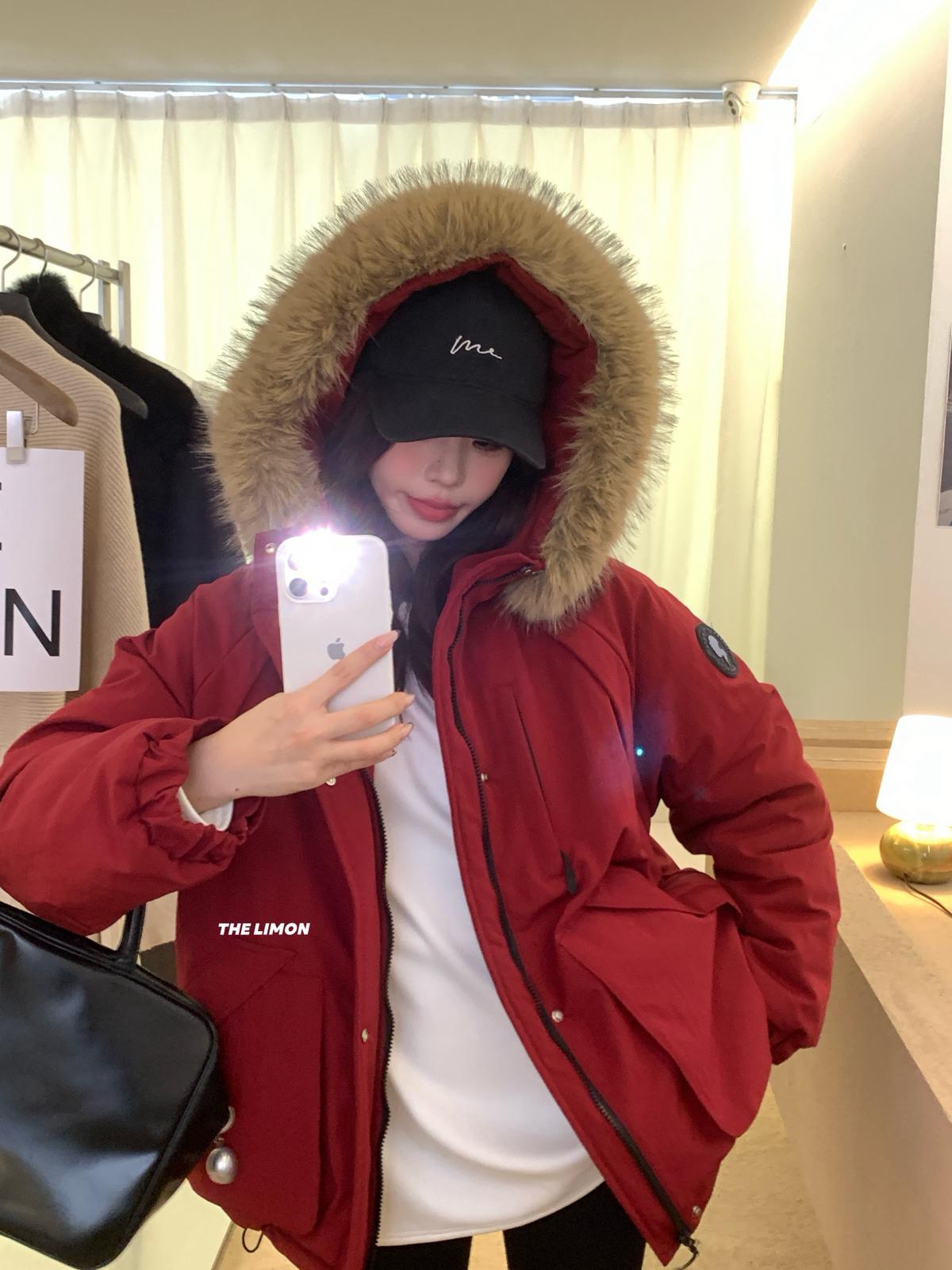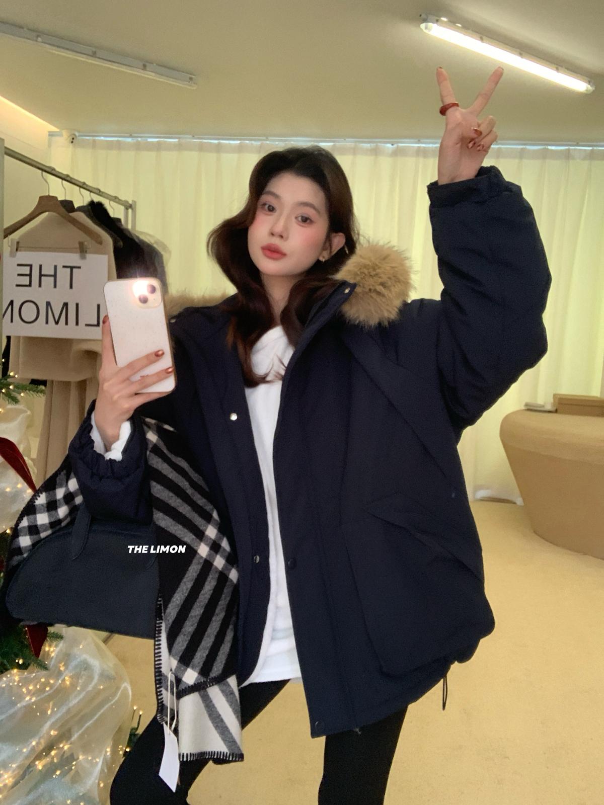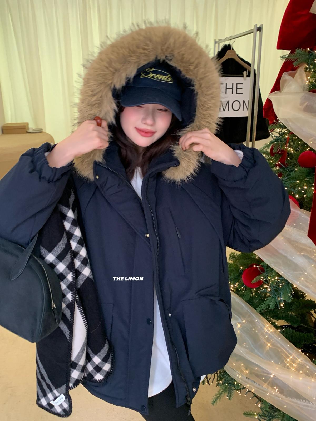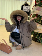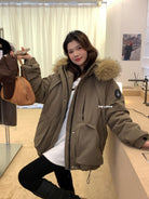 【C8265】一件過冬!時髦加絨環保毛工裝派克服棉服(毛領可拆卸)