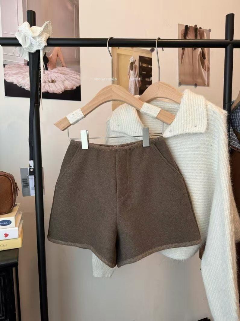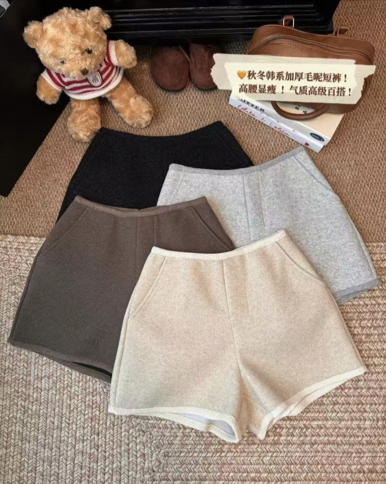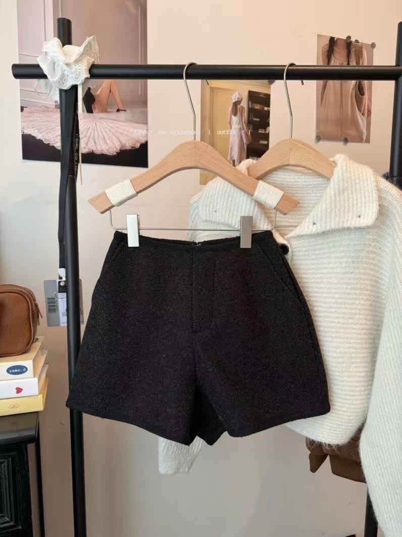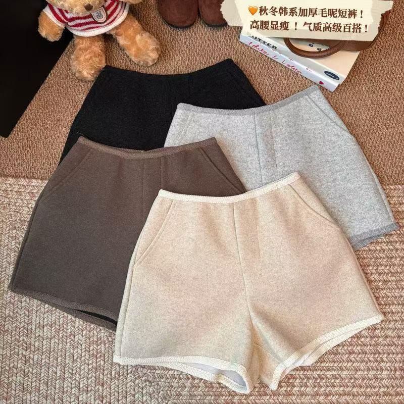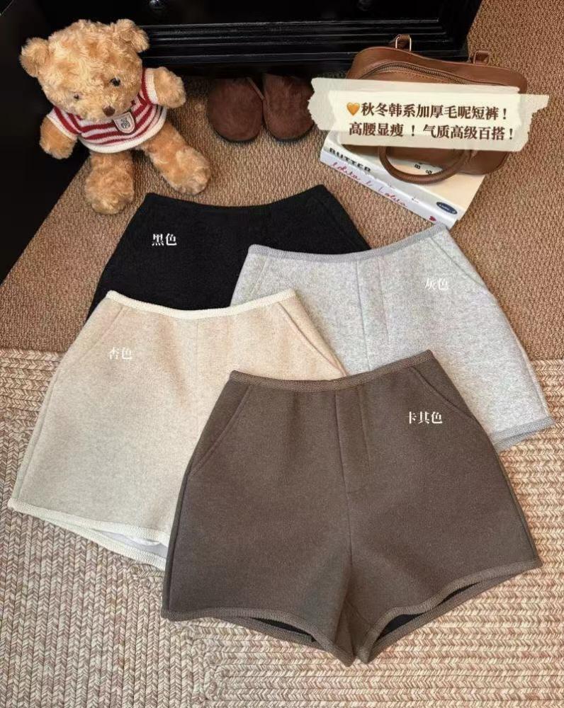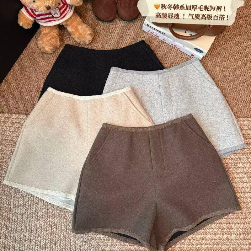 3. 【C8268】加厚毛呢短褲休閒直筒褲子高腰顯瘦闊腿褲a字休閒短褲