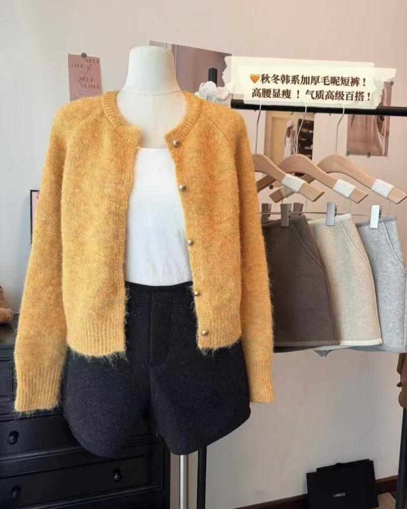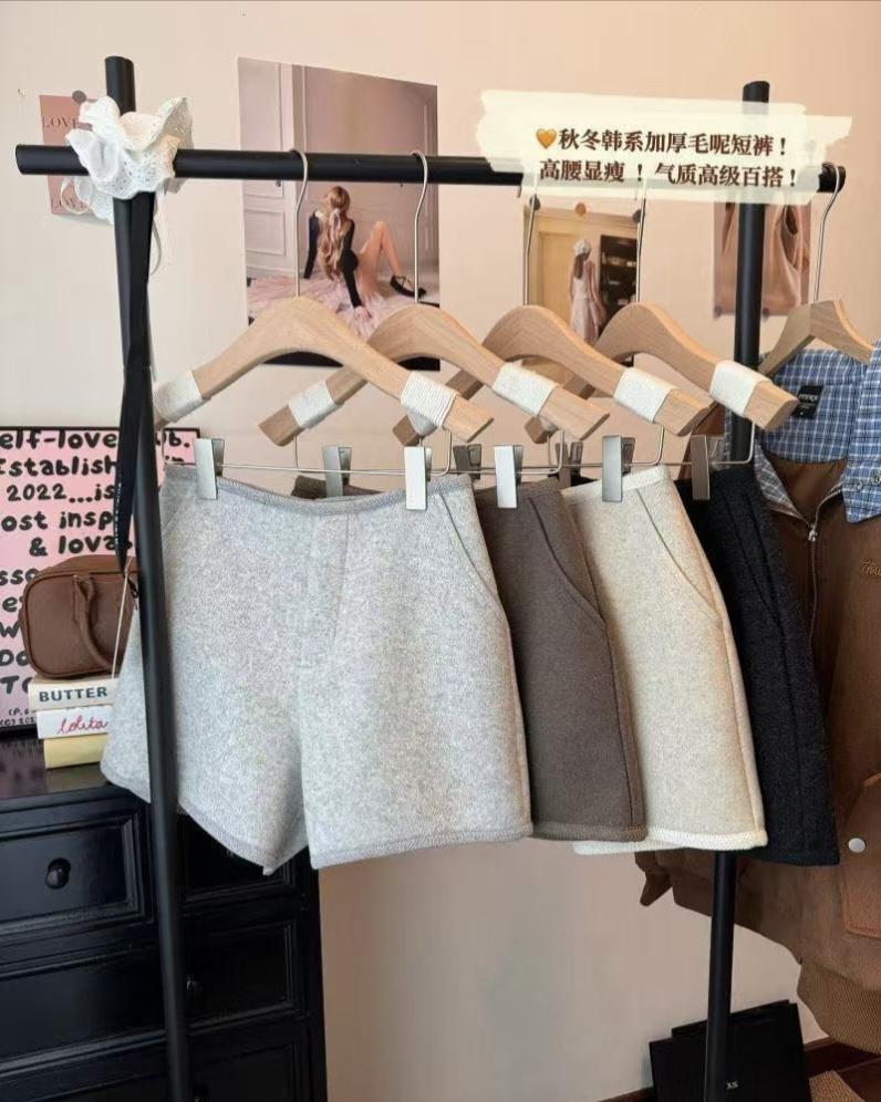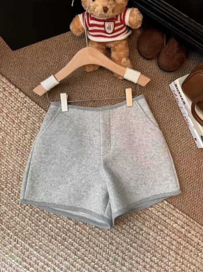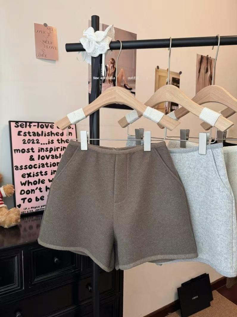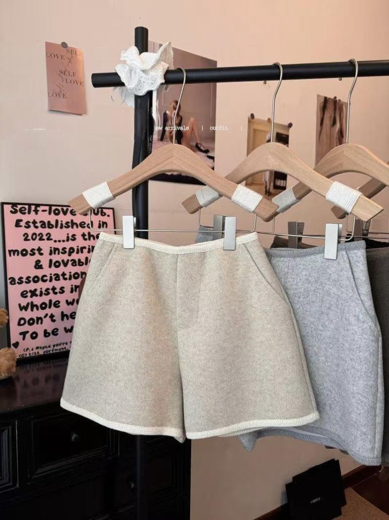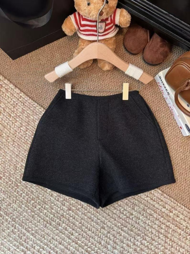 3. 【C8268】加厚毛呢短褲休閒直筒褲子高腰顯瘦闊腿褲a字休閒短褲