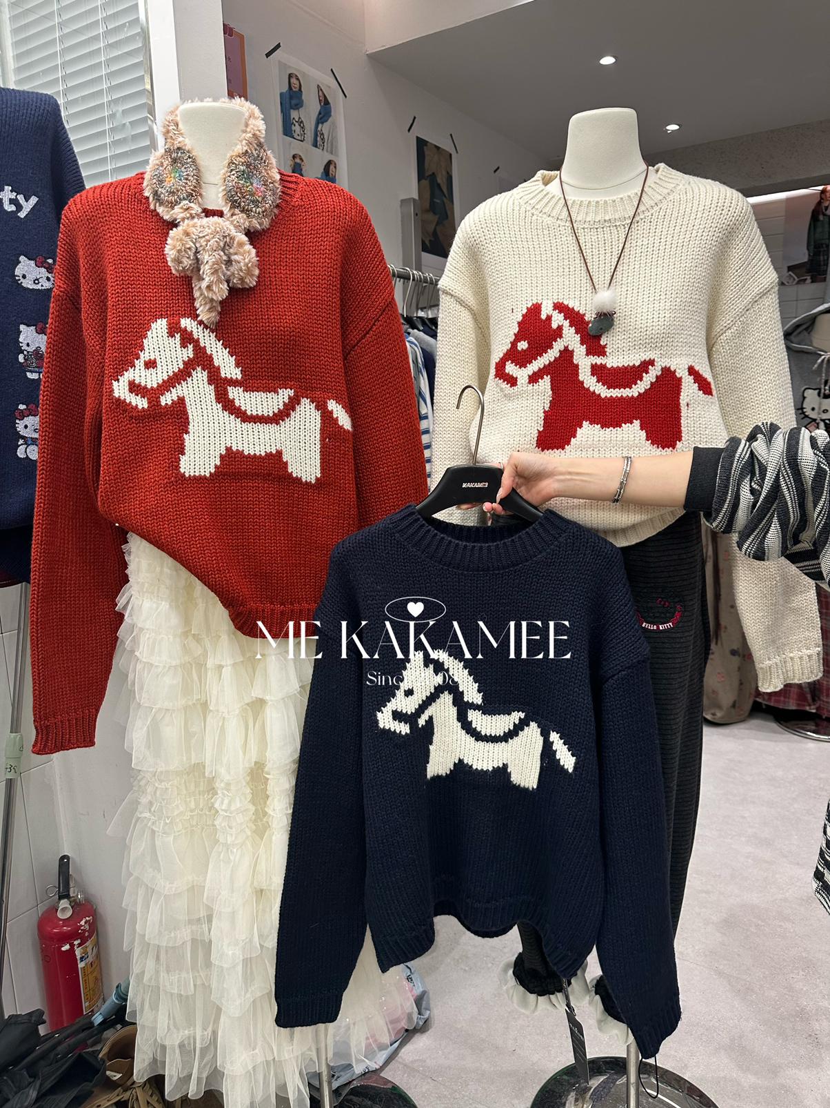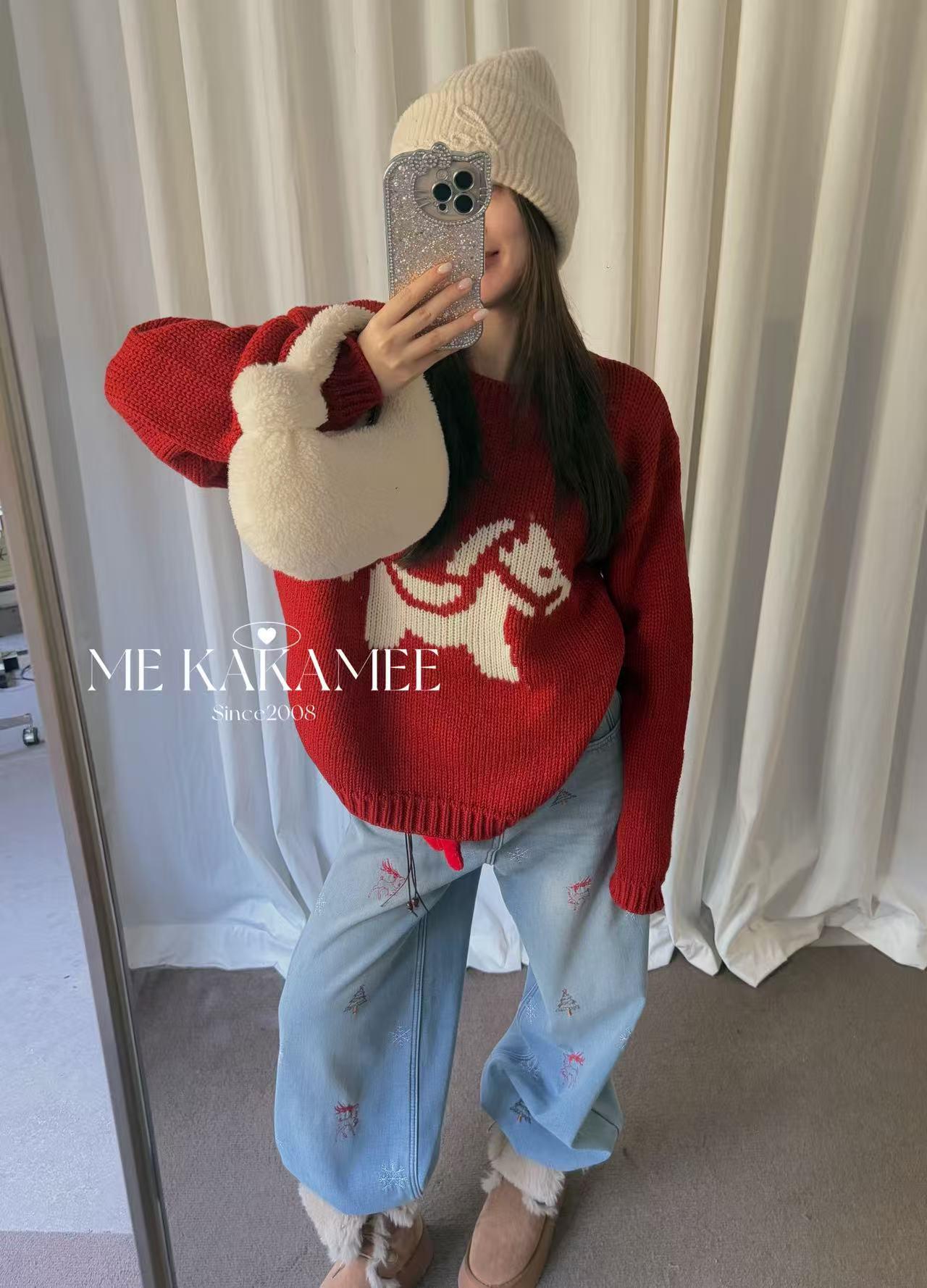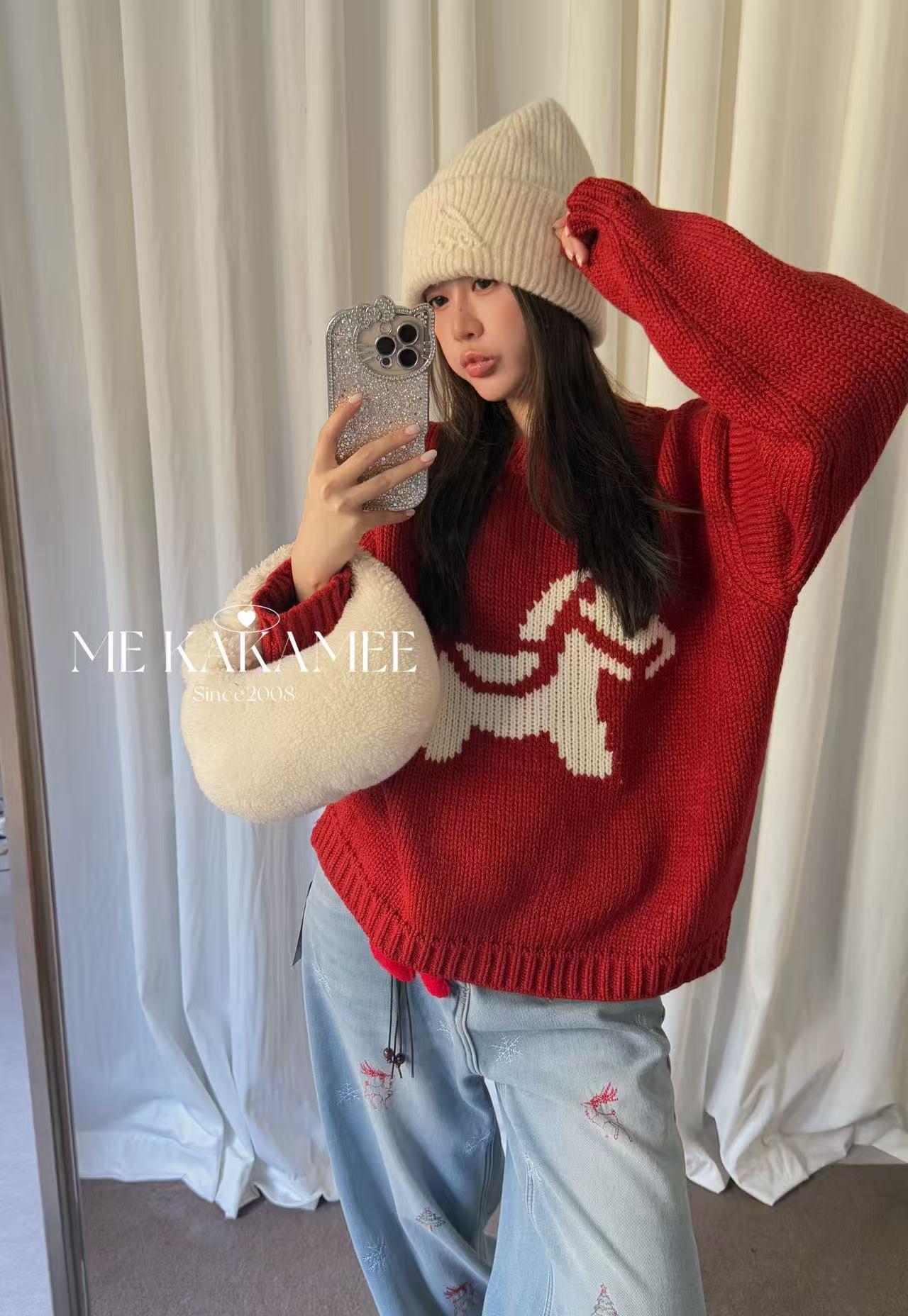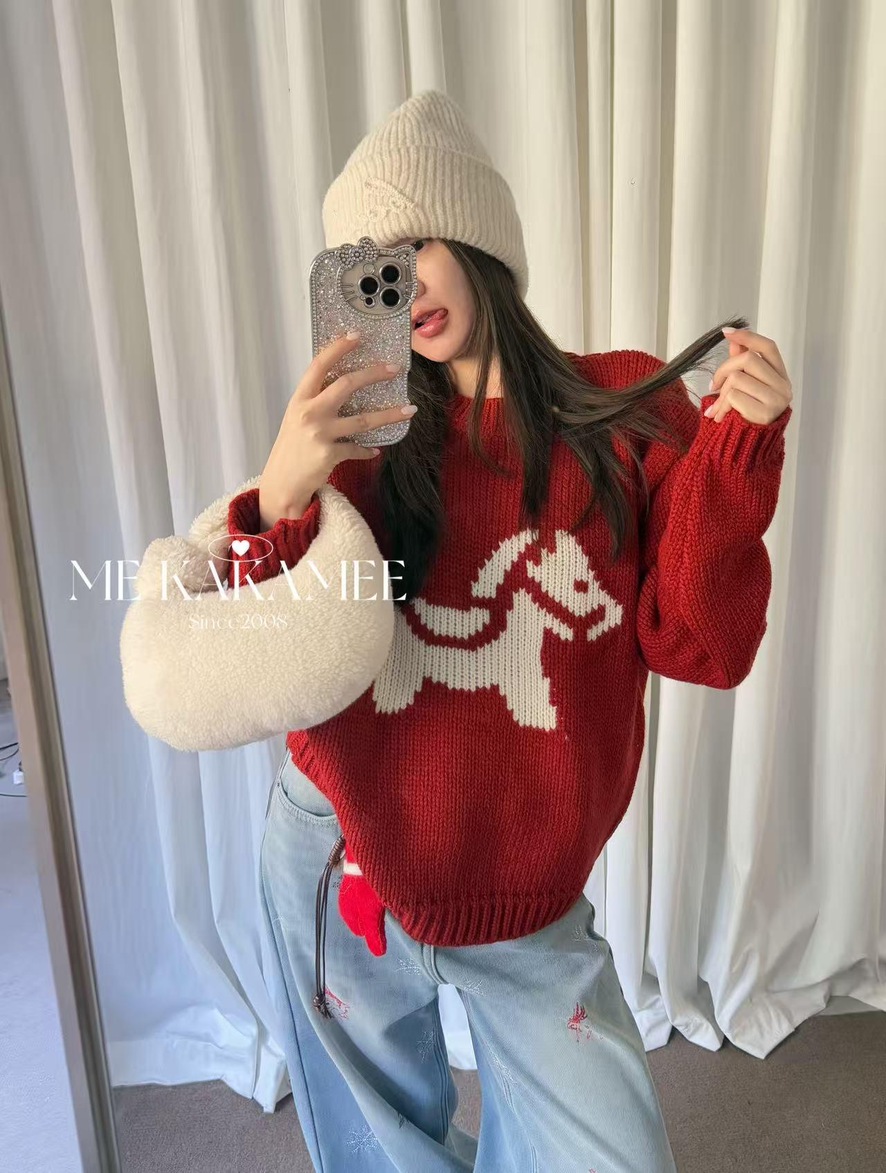 【C8279】冬新品馬年提花氛圍感北極絨保暖毛衣(含6%羊毛)