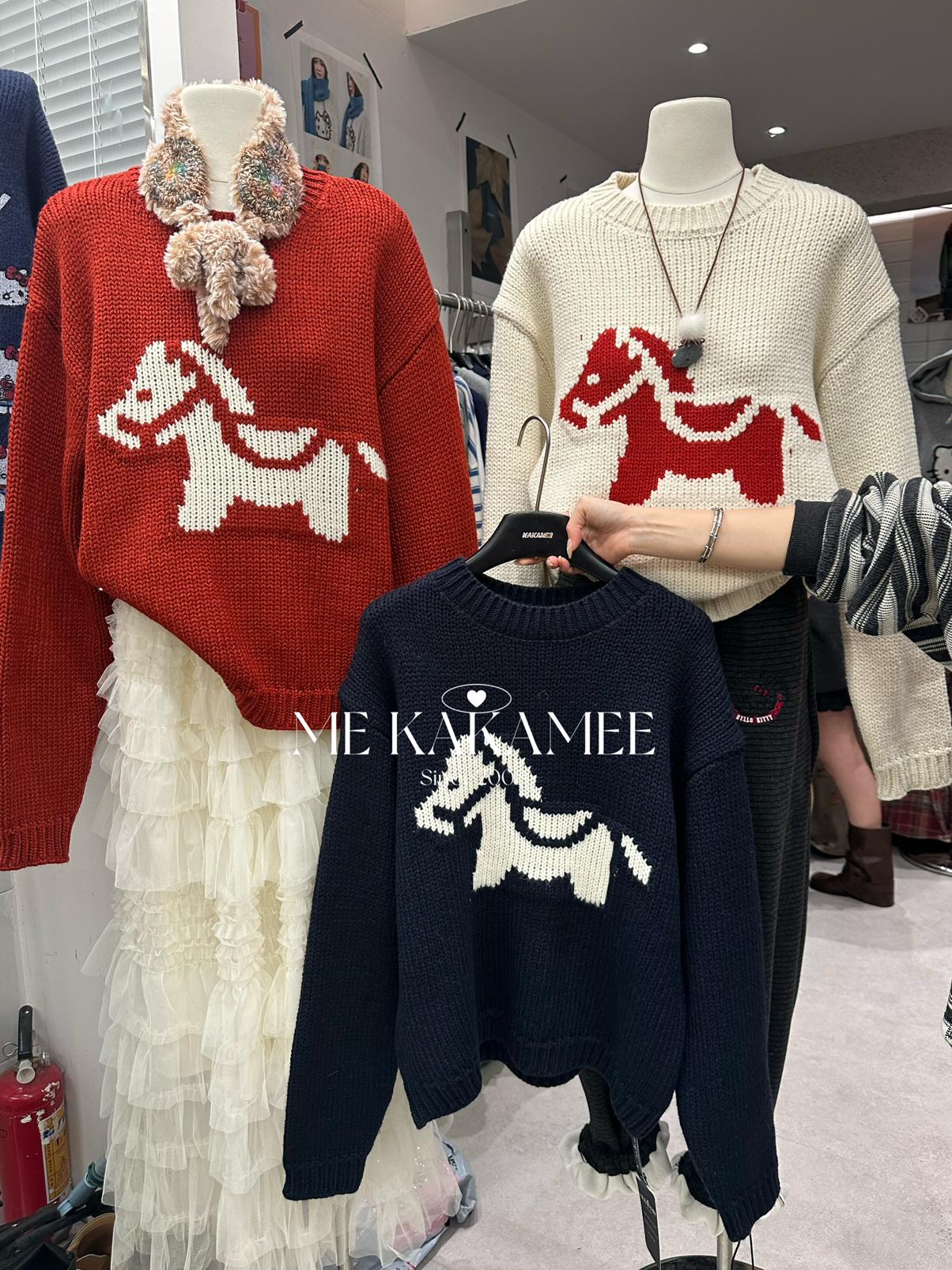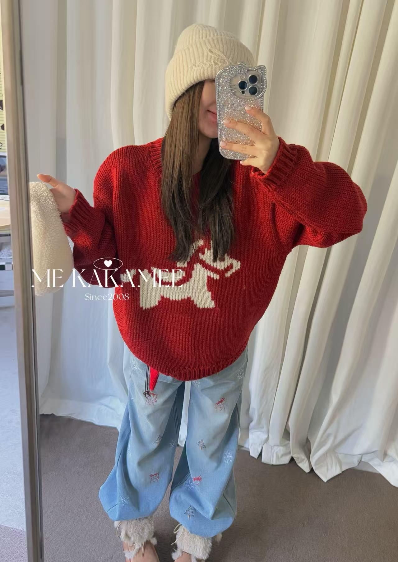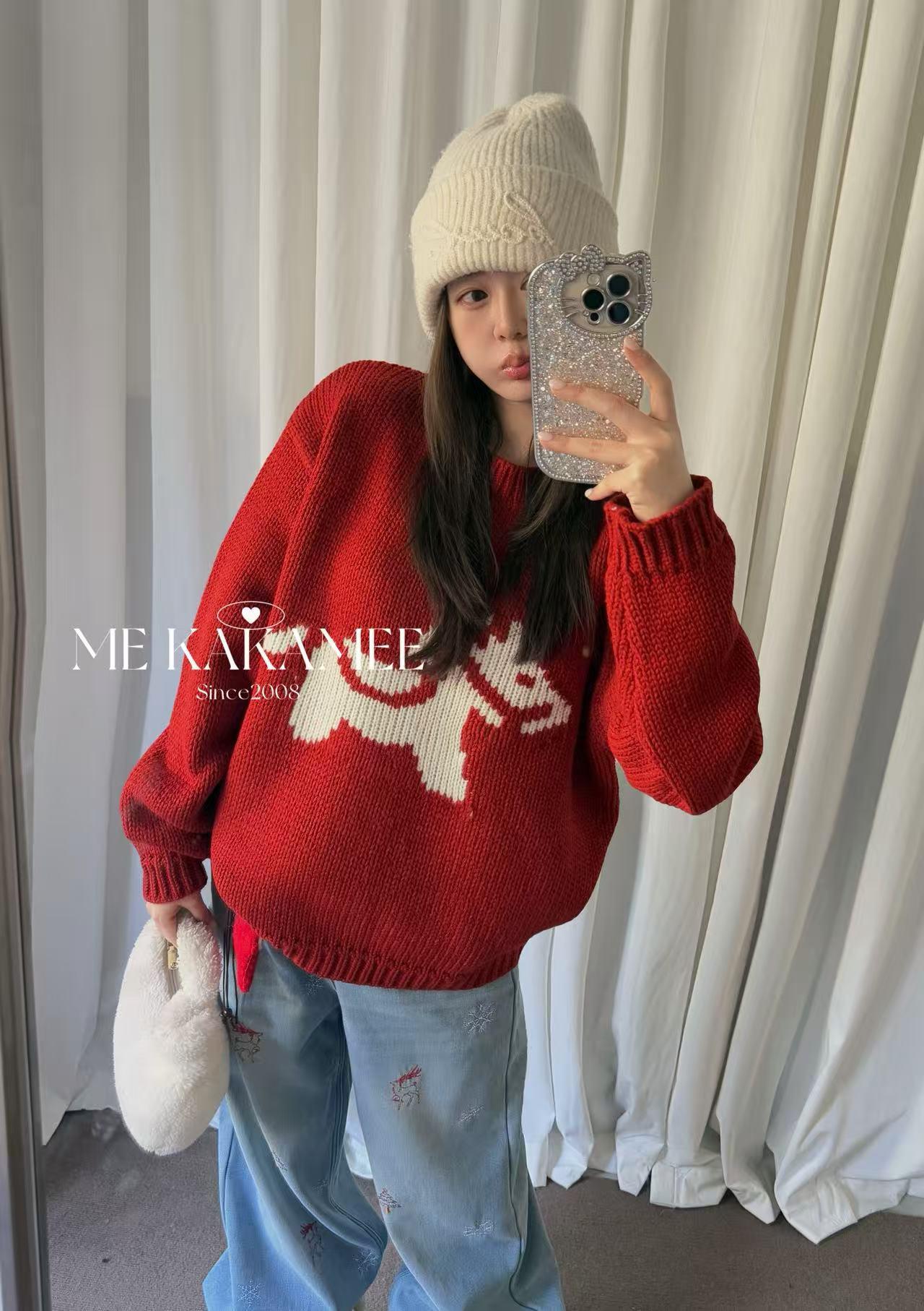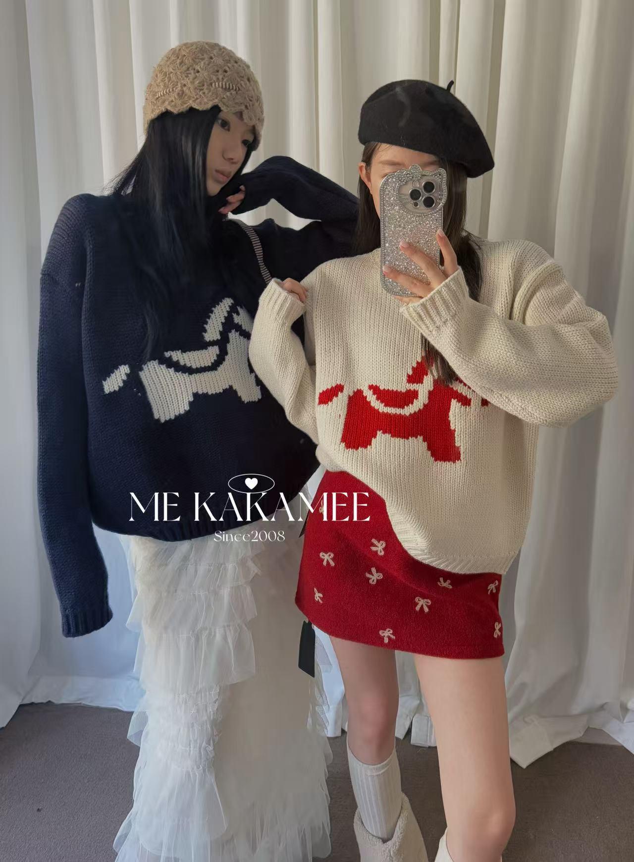【C8279】冬新品馬年提花氛圍感北極絨保暖毛衣(含6%羊毛)
