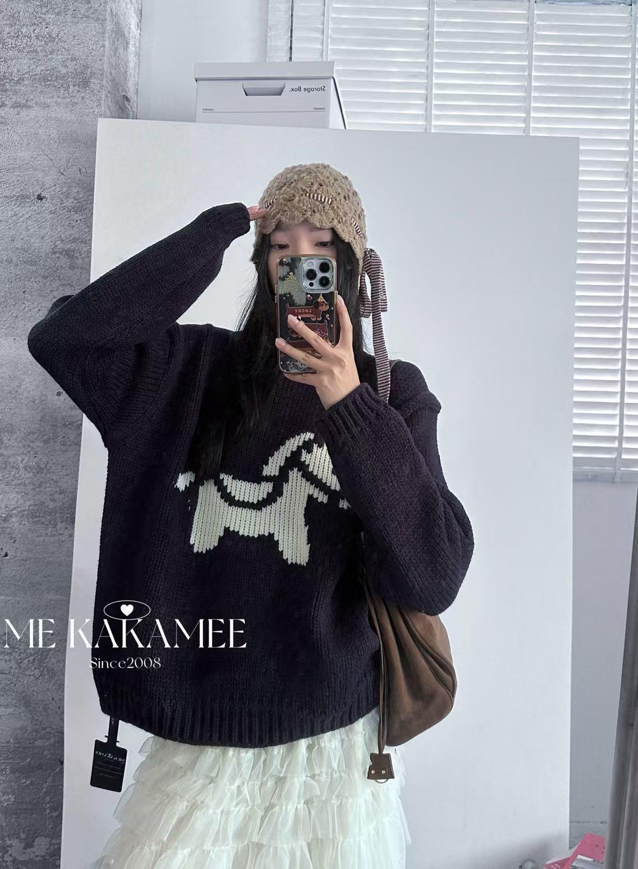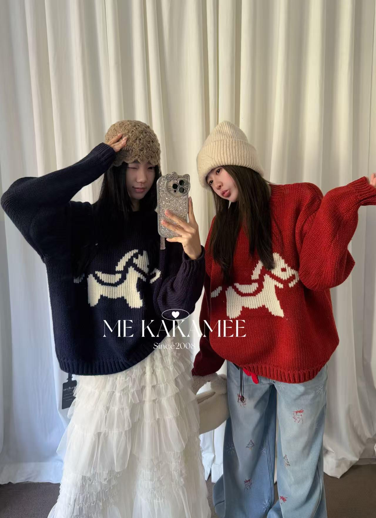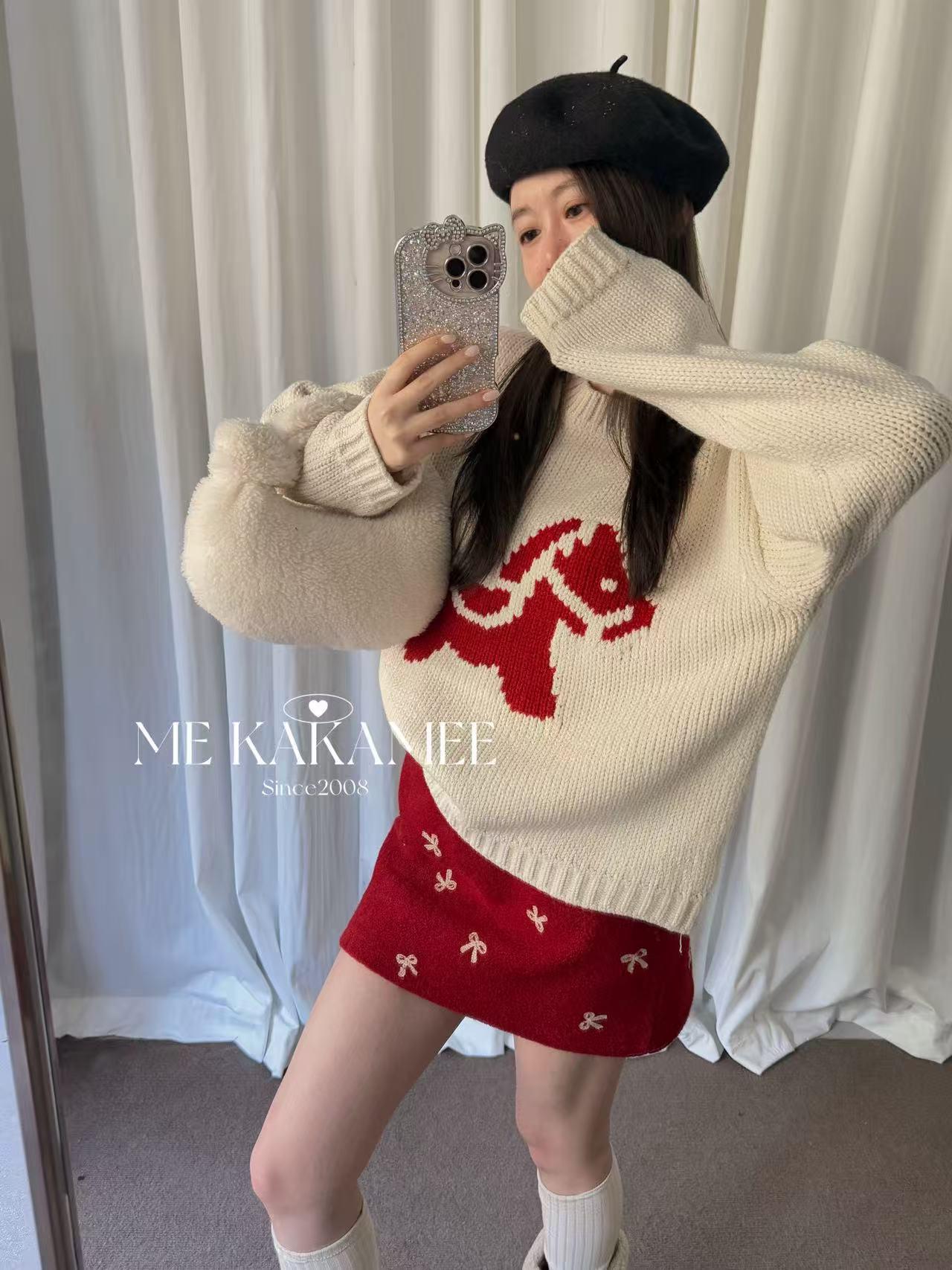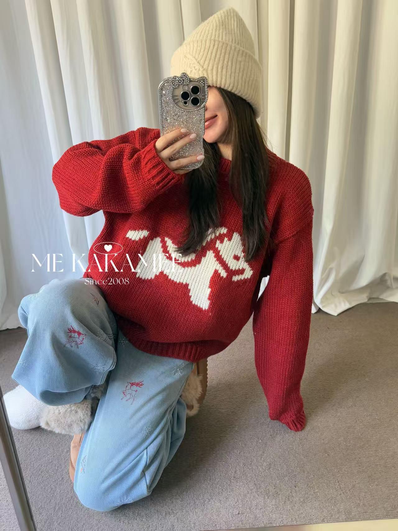 【C8279】冬新品馬年提花氛圍感北極絨保暖毛衣(含6%羊毛)