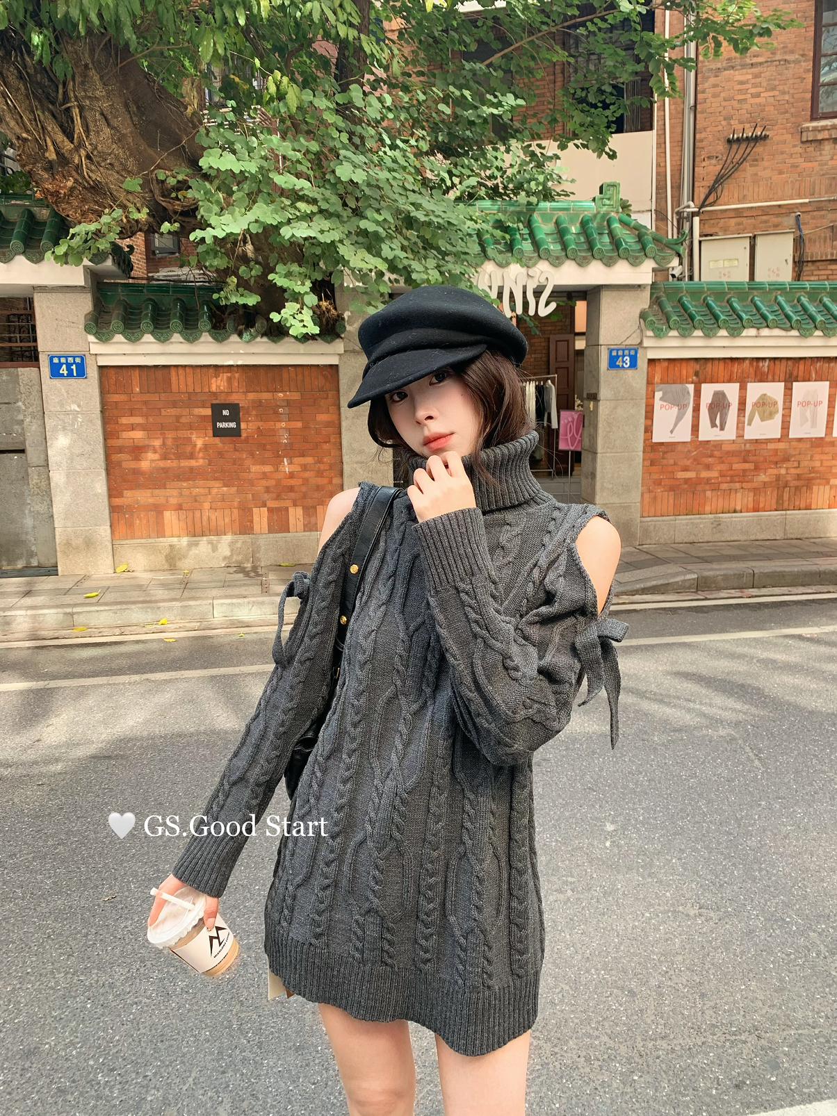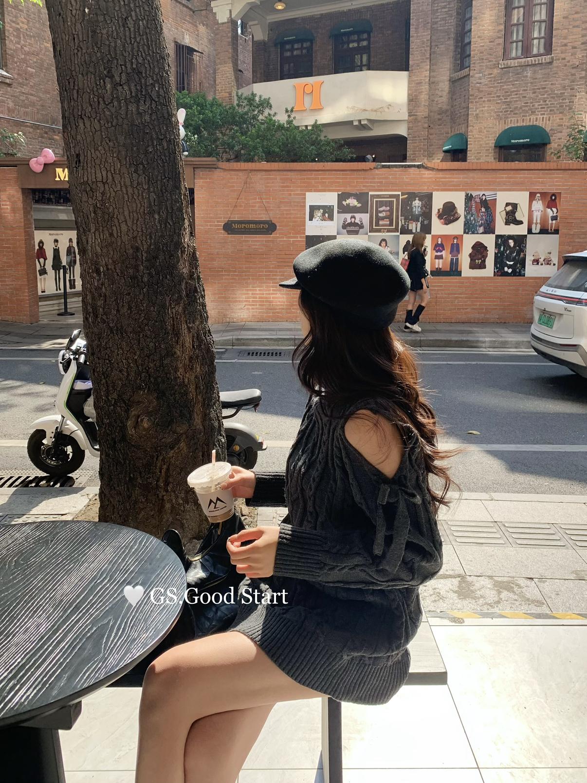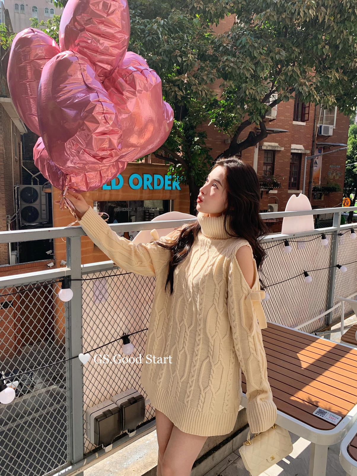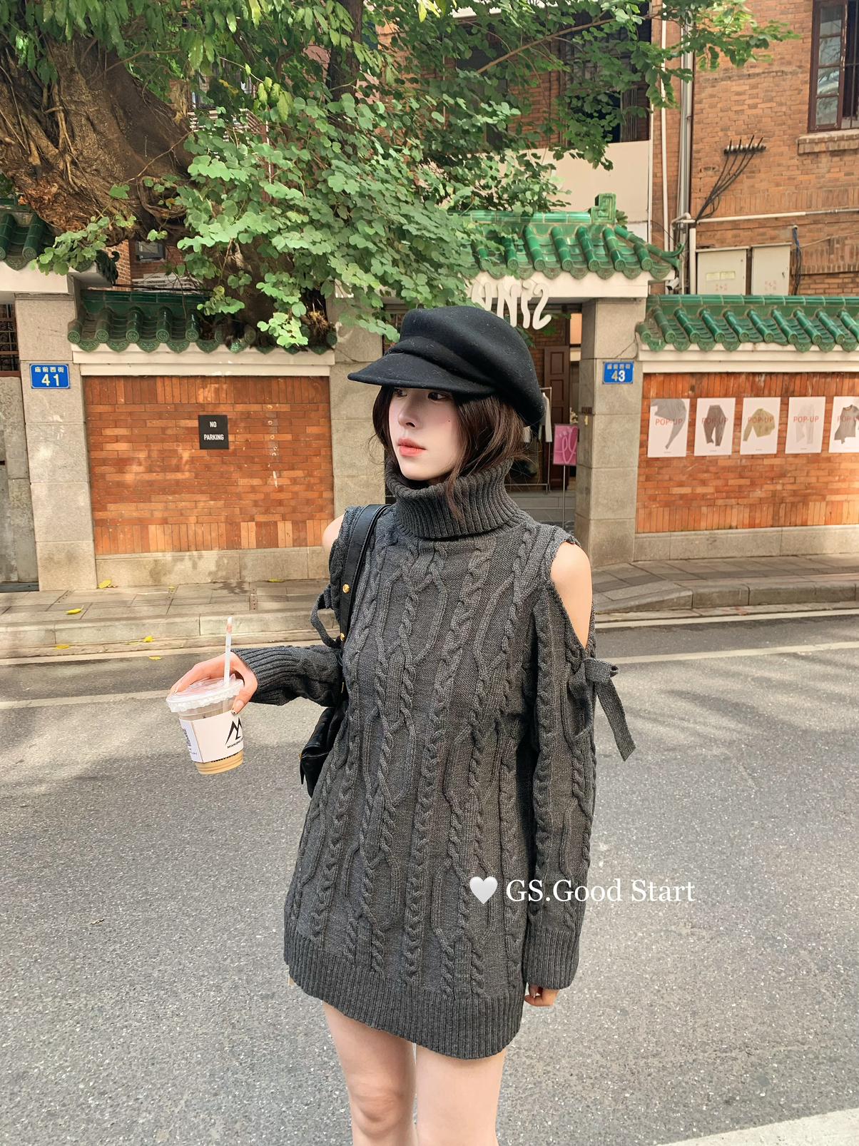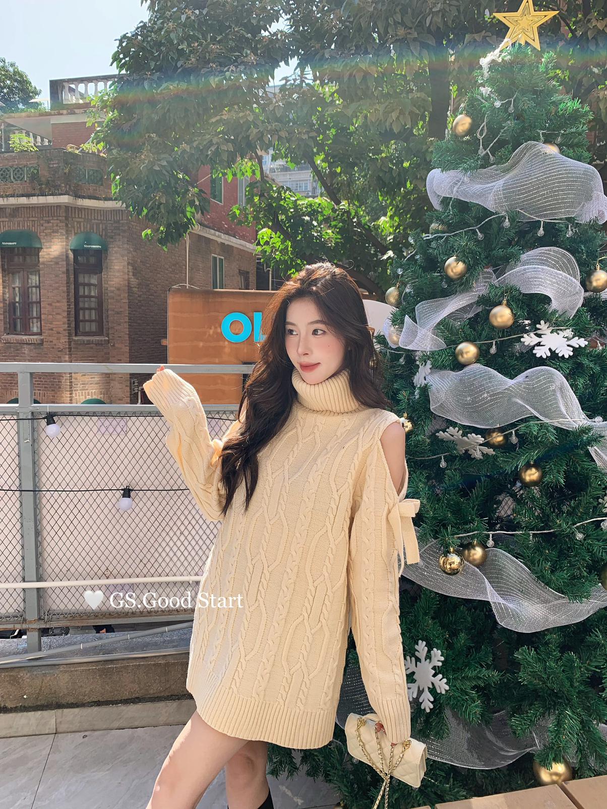 【C8291】節日戰裙*重磅主推!檔口開單不停!冬氣質純欲蝴蝶結露肩設計感保暖毛衣