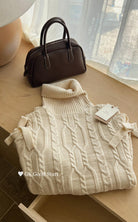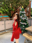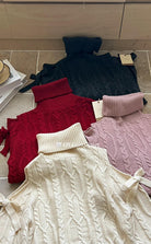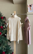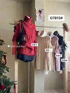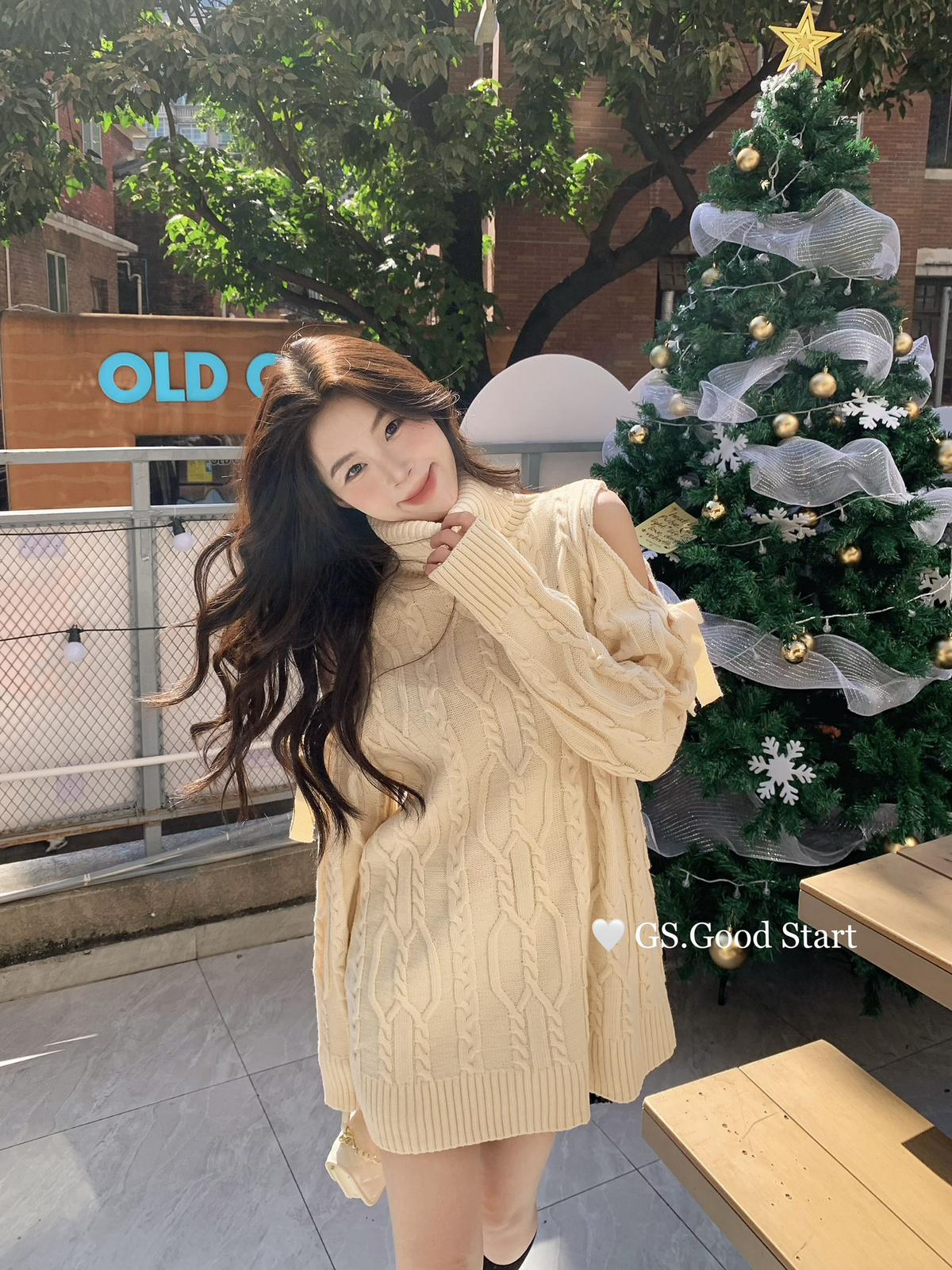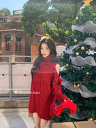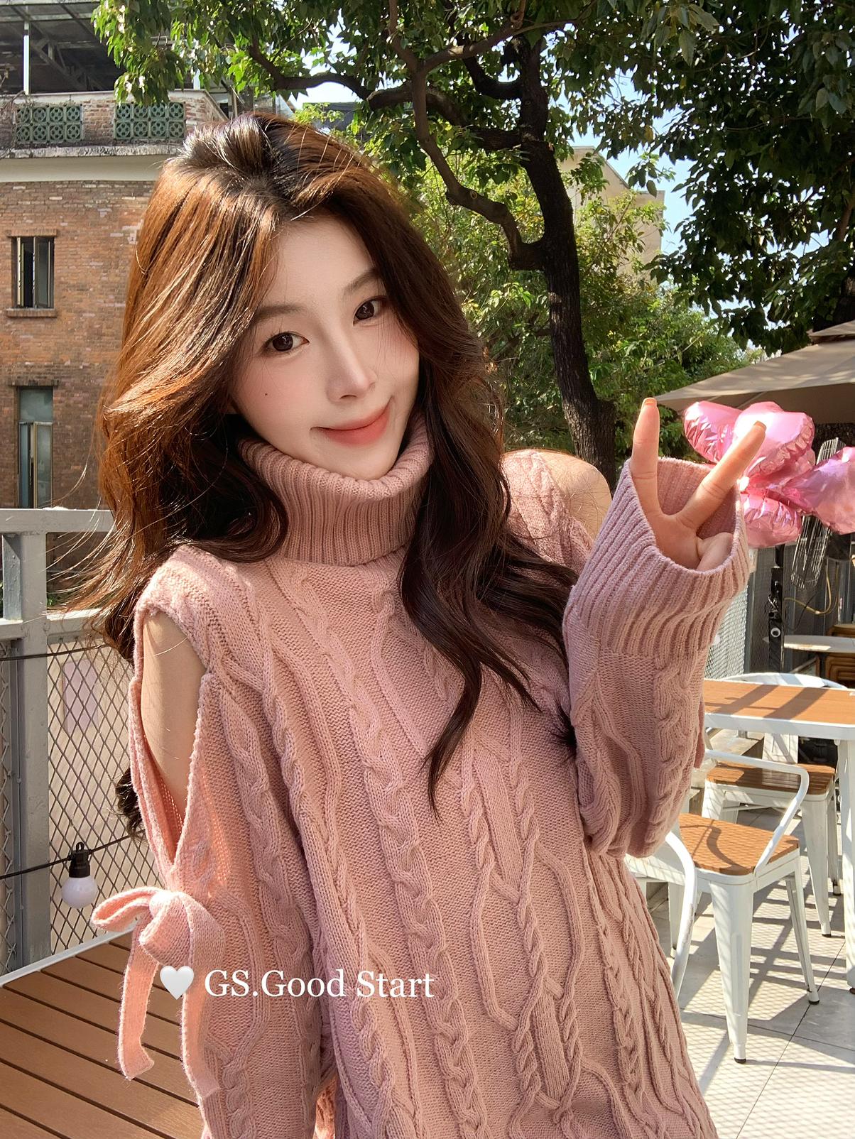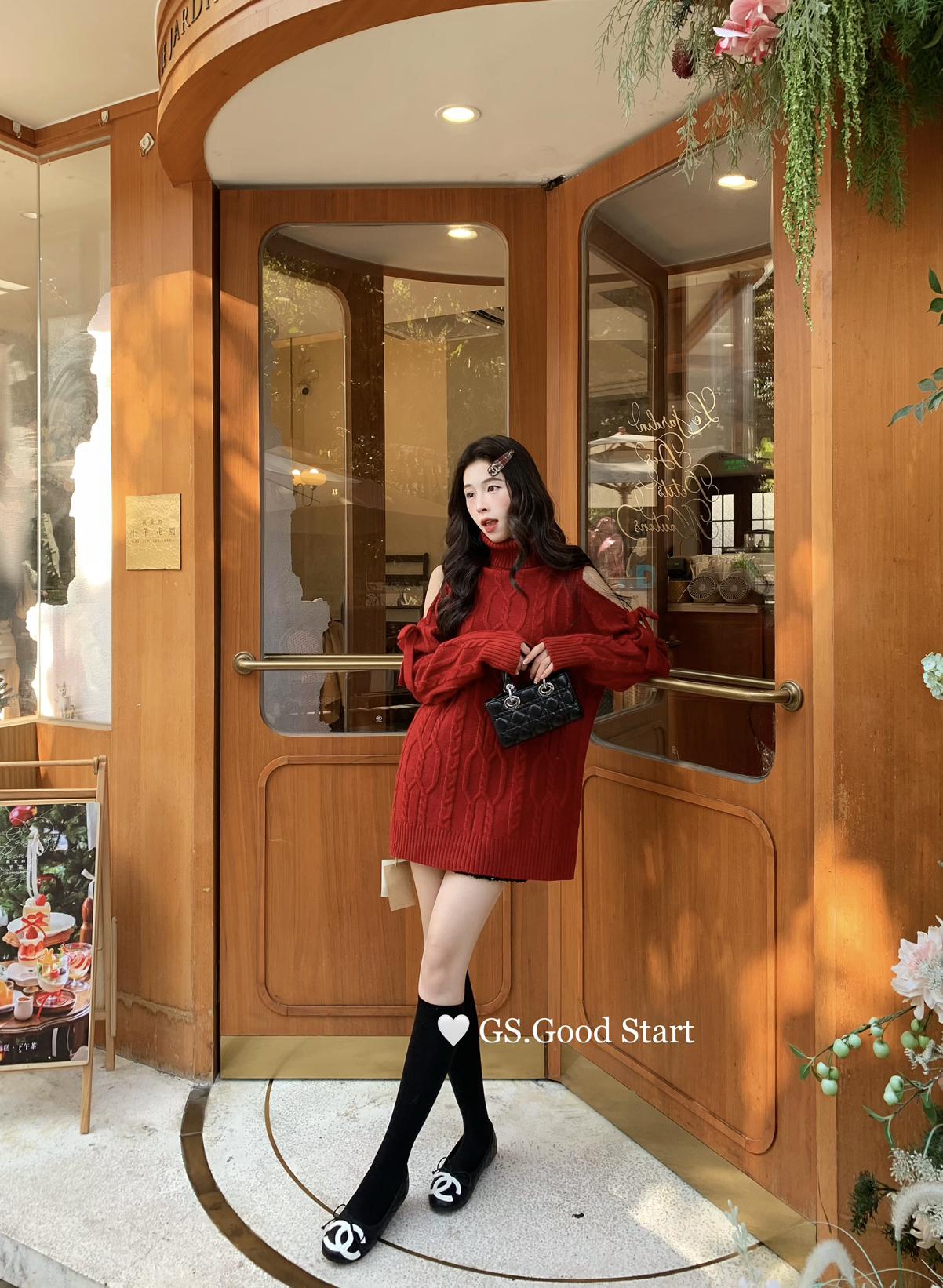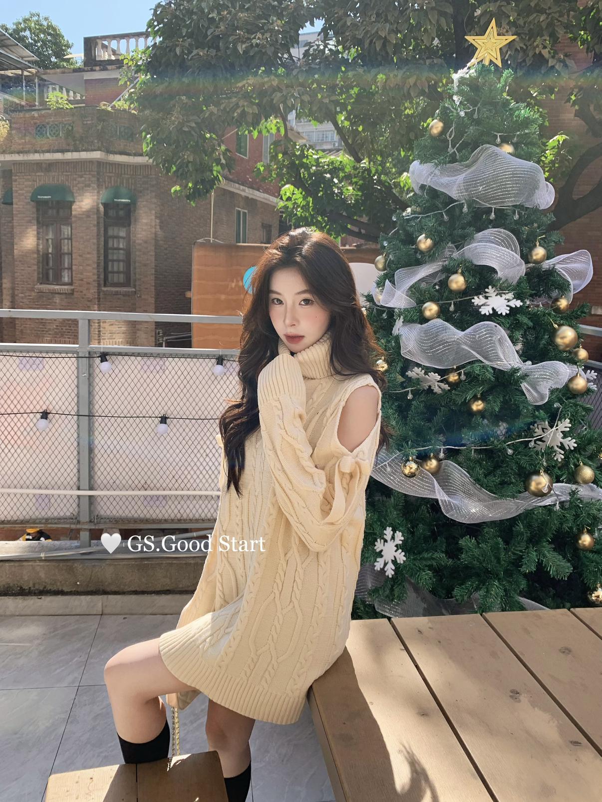 【C8291】節日戰裙*重磅主推!檔口開單不停!冬氣質純欲蝴蝶結露肩設計感保暖毛衣