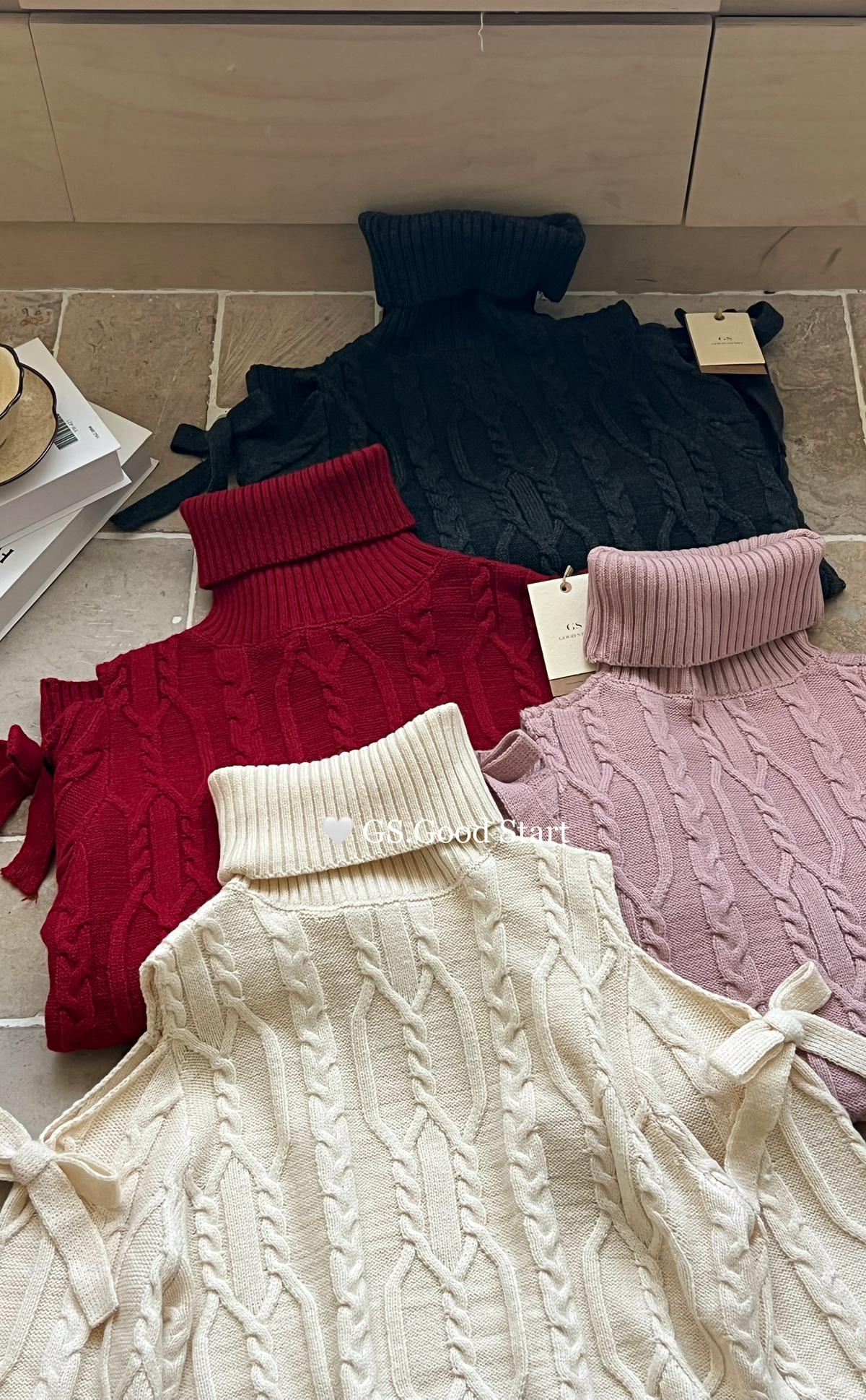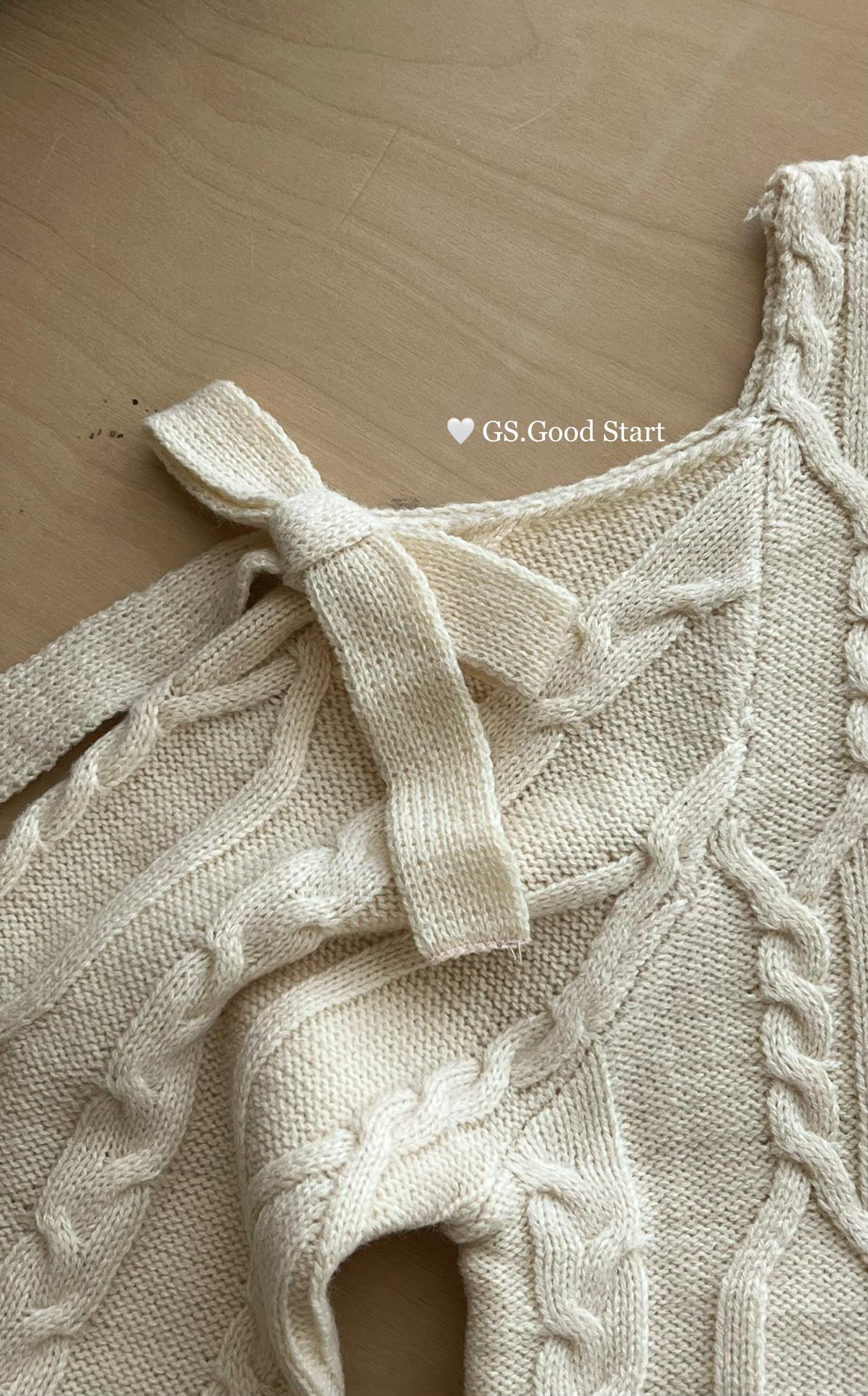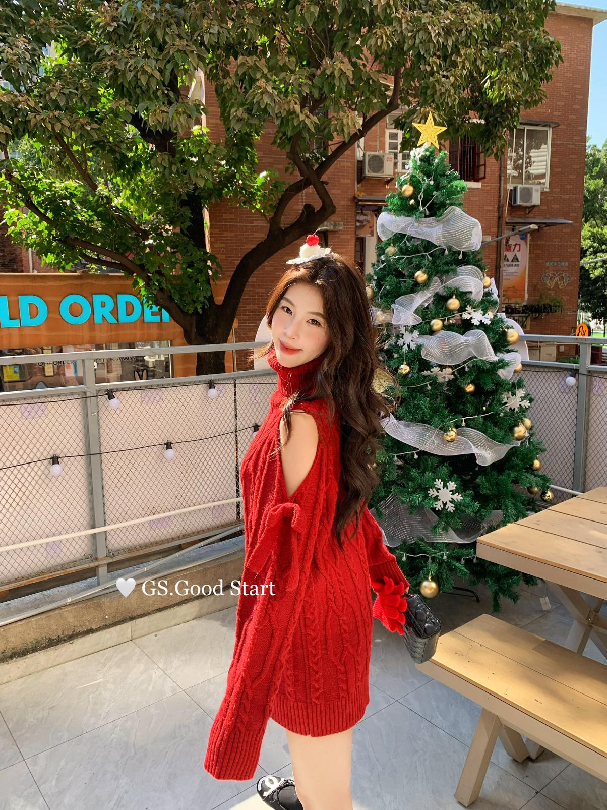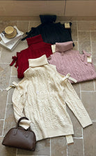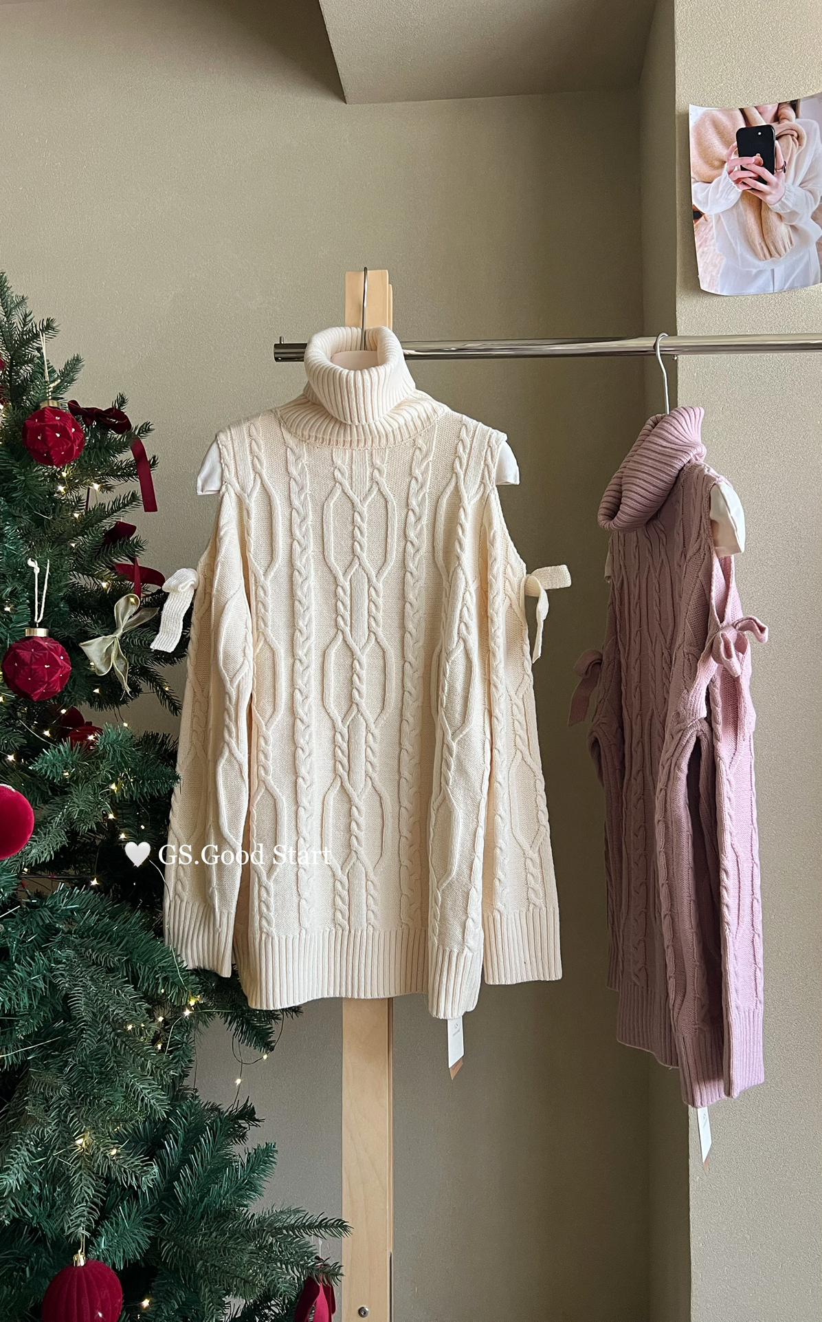 3. 【C8291】節日戰裙*重磅主推!檔口開單不停!冬氣質純欲蝴蝶結露肩設計感保暖毛衣