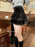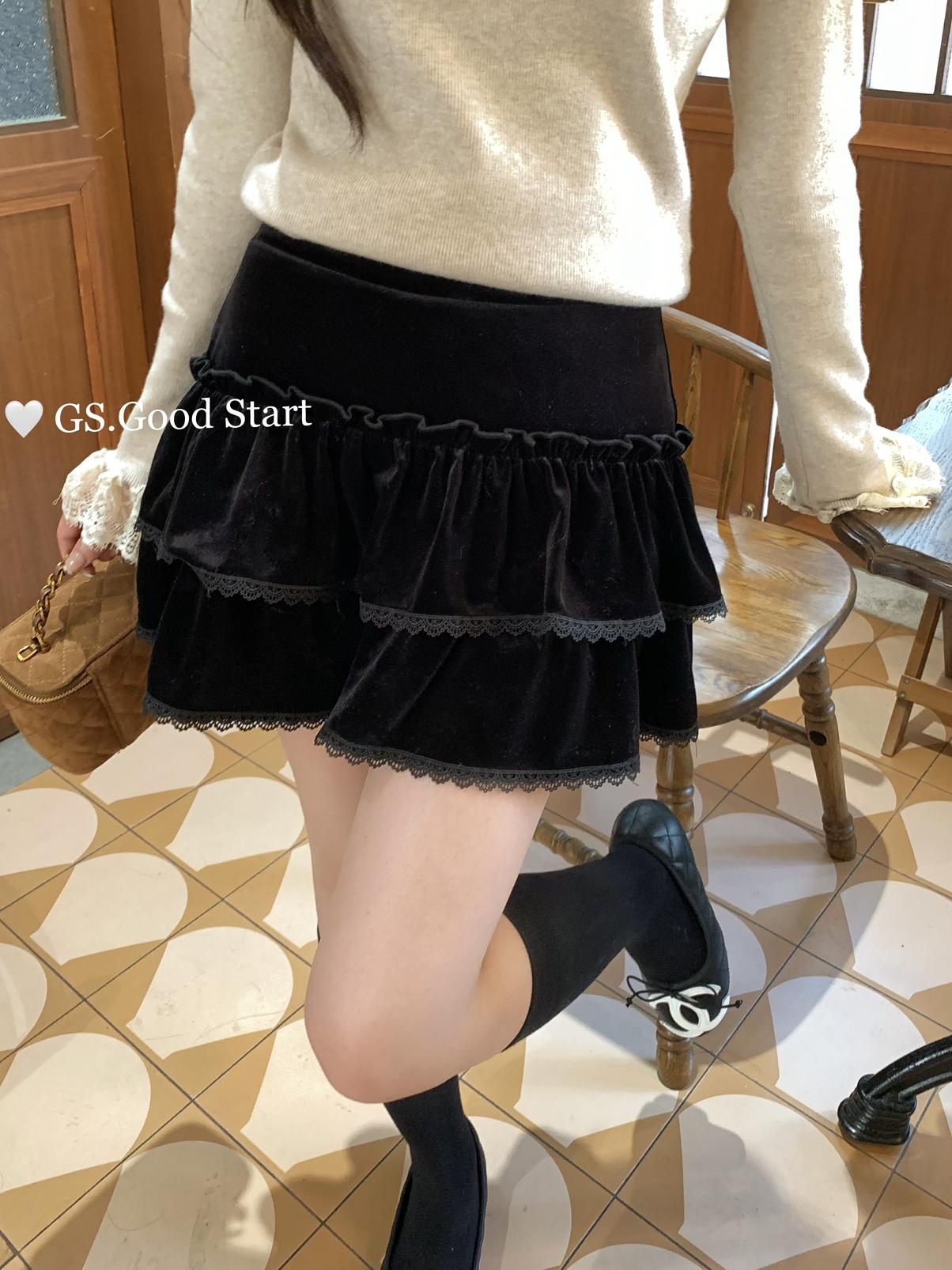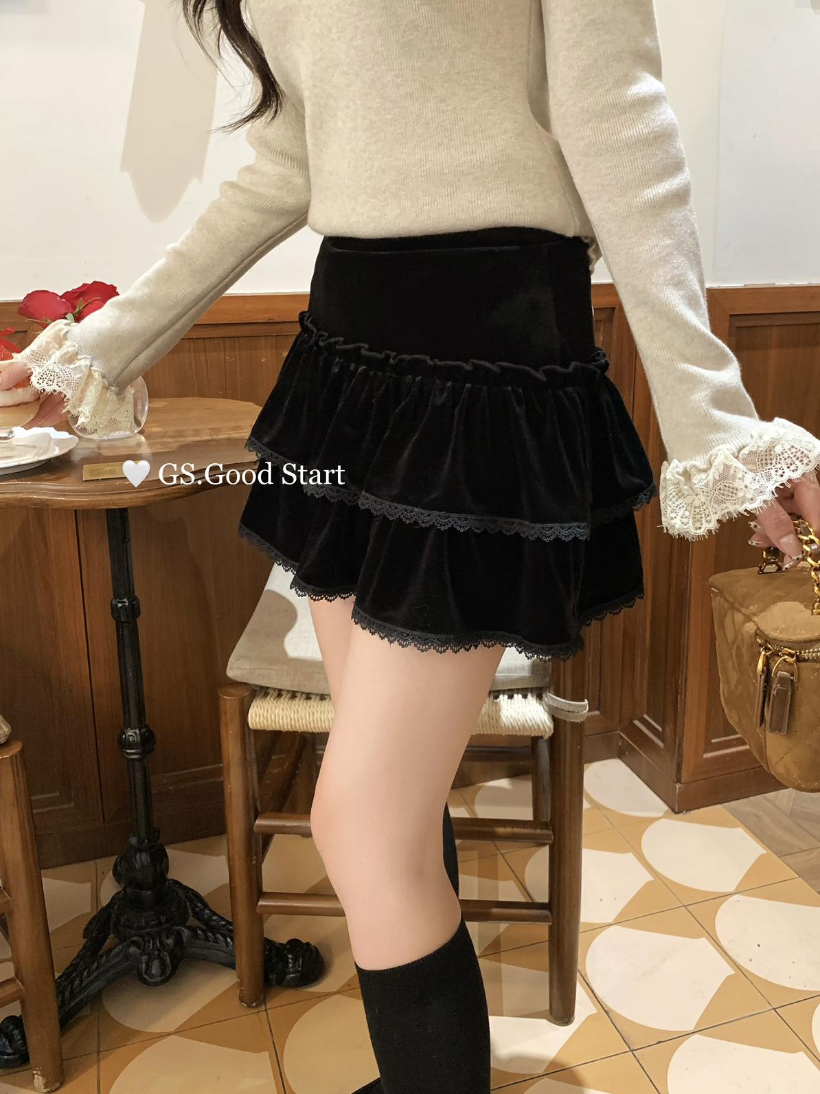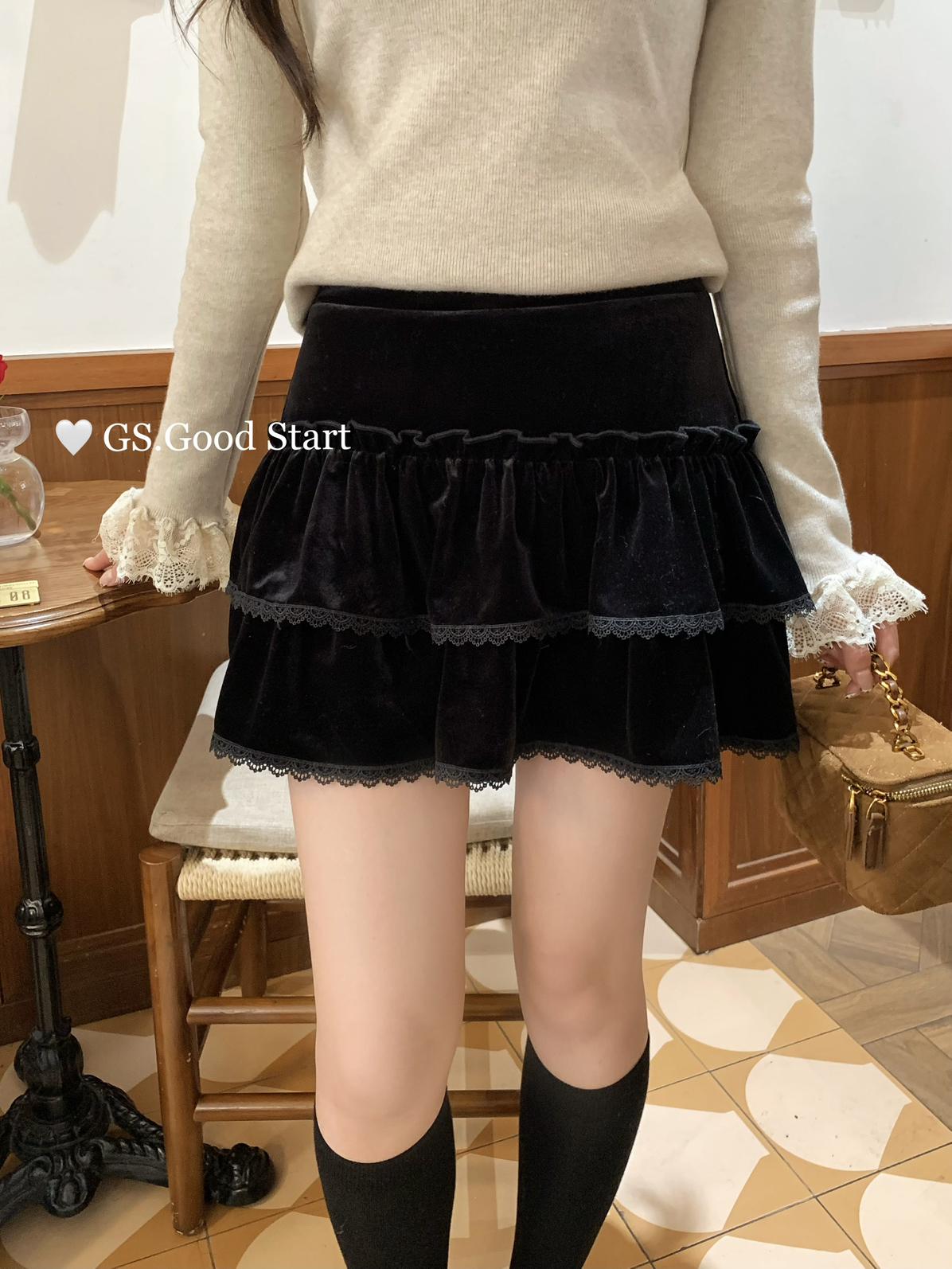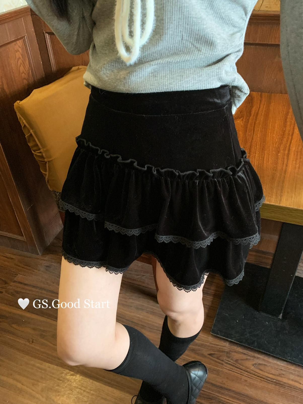 3. 【C8293】銷冠來了!爆好賣!搭配天菜~甜美減齡百搭絲絨顯瘦半身裙