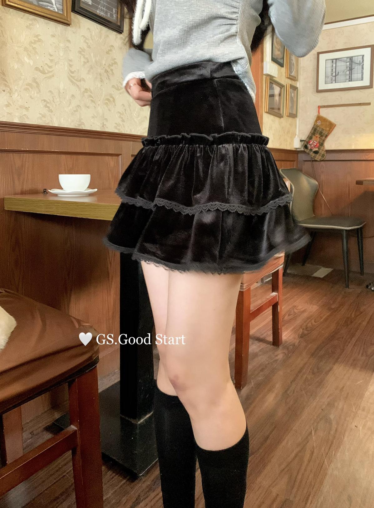 【C8293】銷冠來了!爆好賣!搭配天菜~甜美減齡百搭絲絨顯瘦半身裙