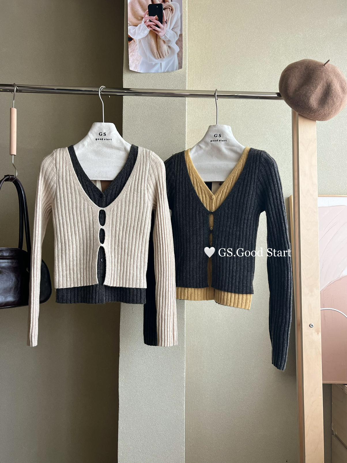 【C8294】實力好賣*撞色系列!無限補單回購!時髦百搭假兩件疊穿小衫