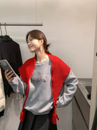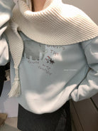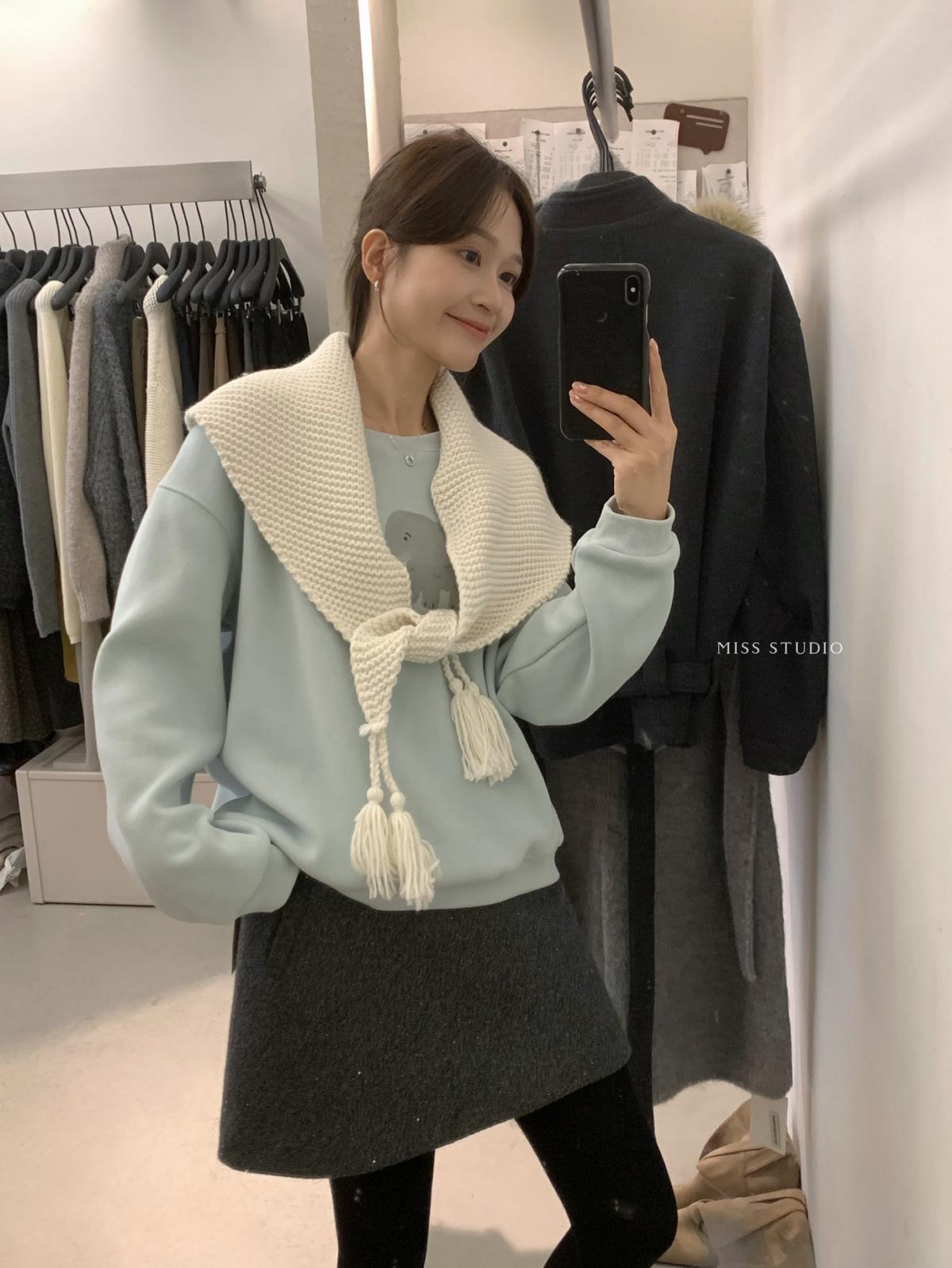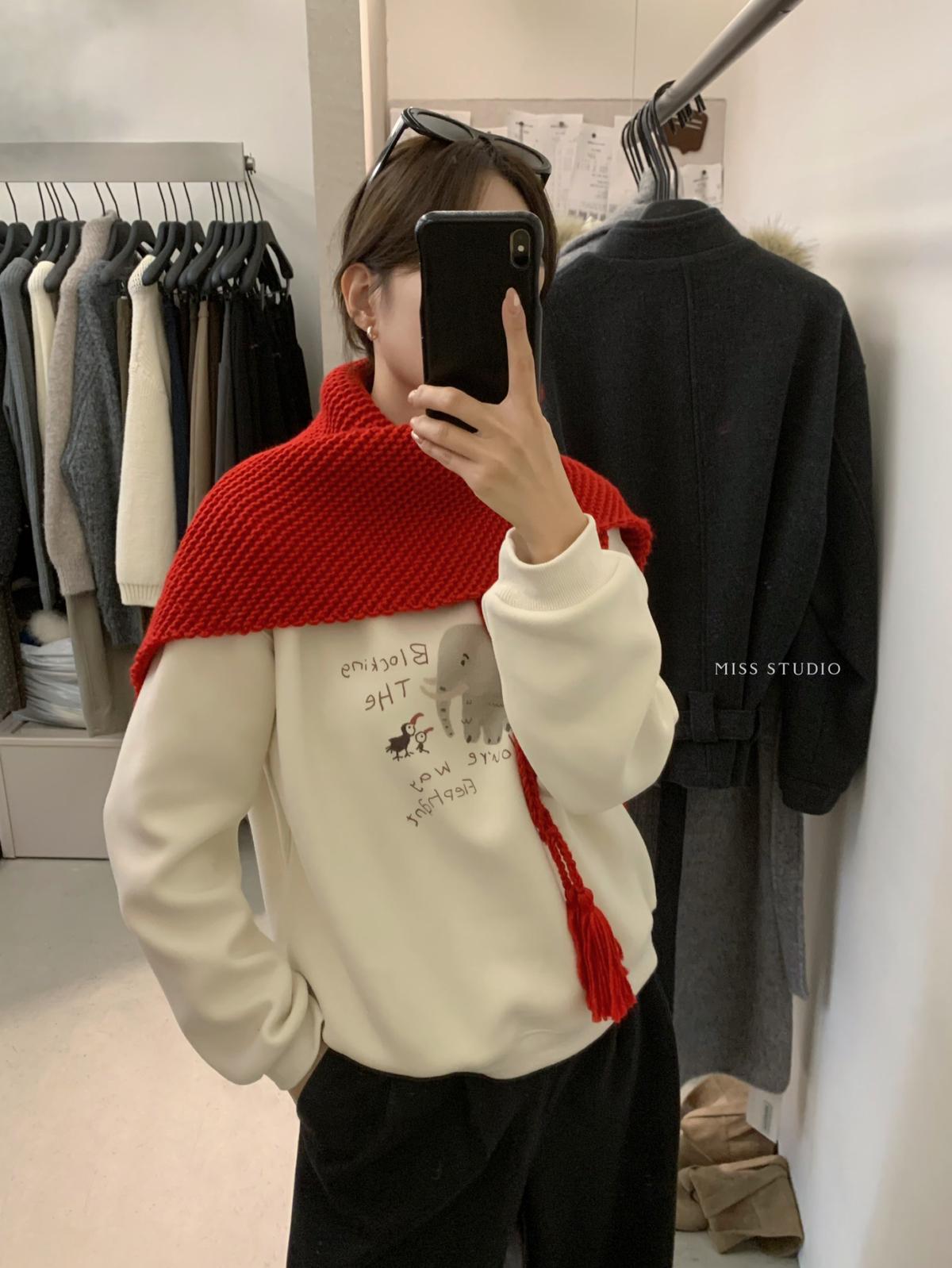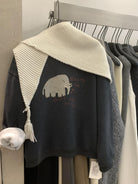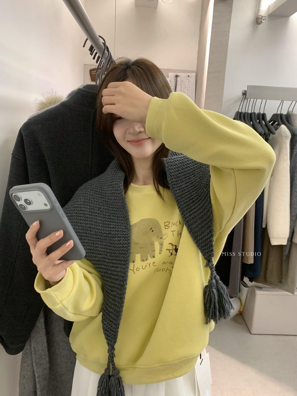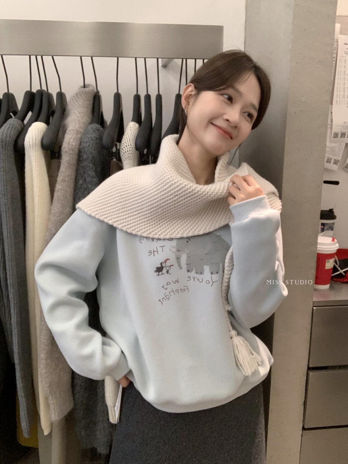 【C8295】韓系休閒大象圖案考拉加絨衛衣(配編織披肩)