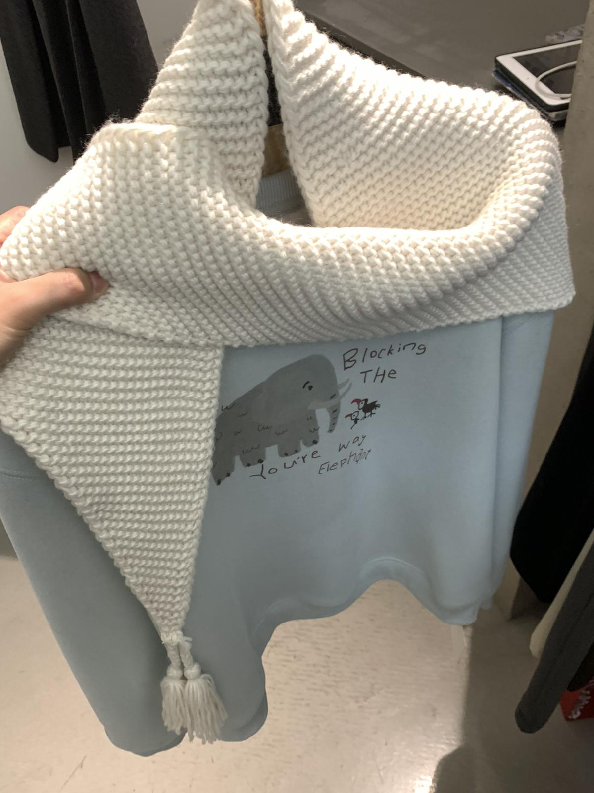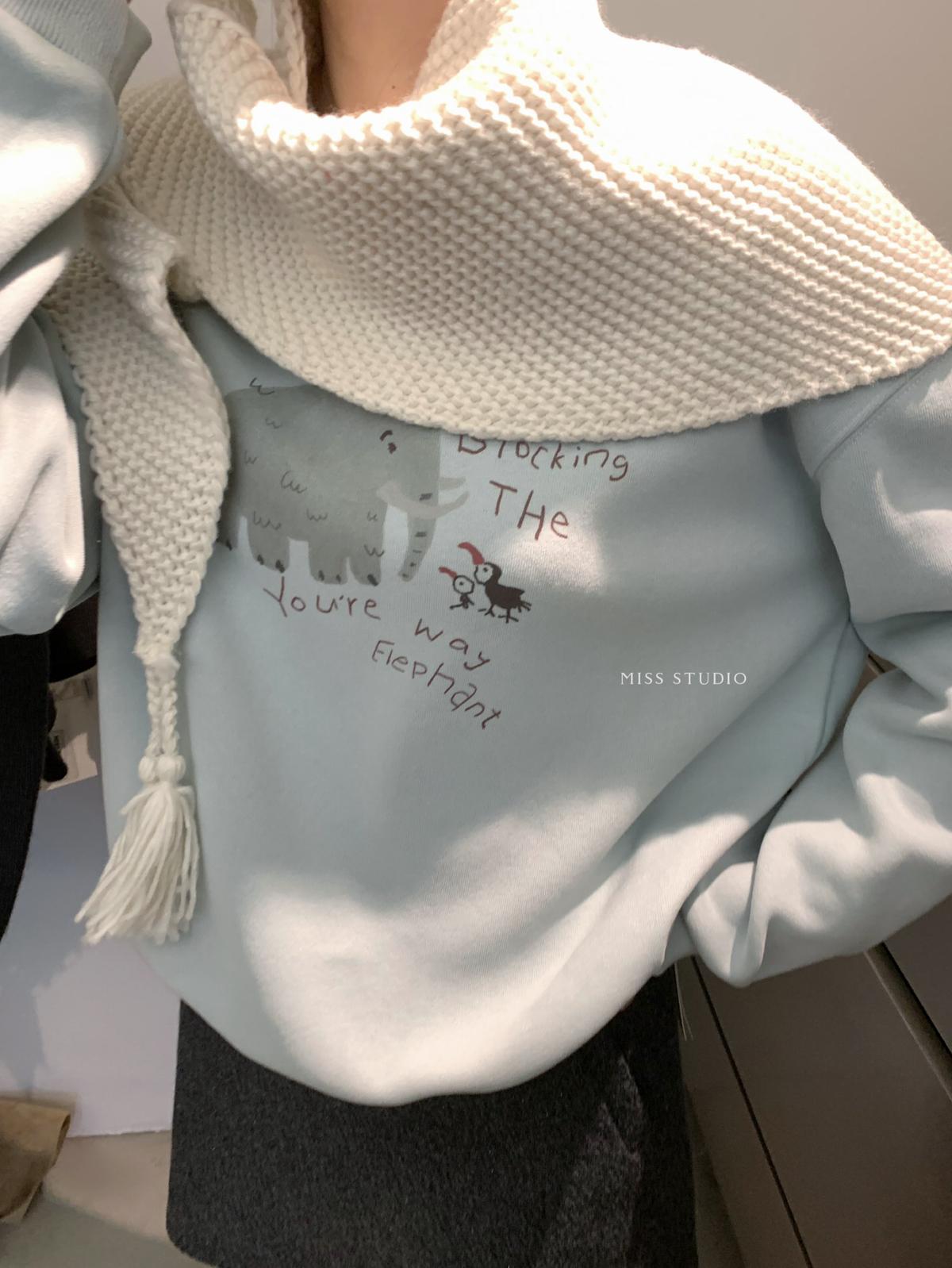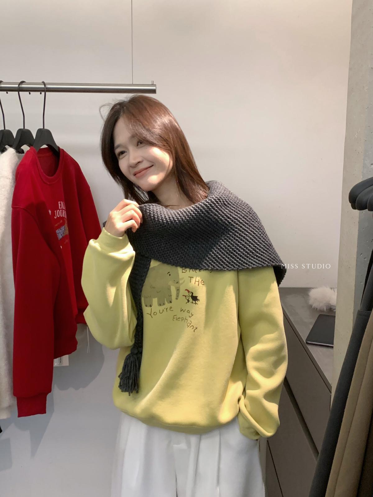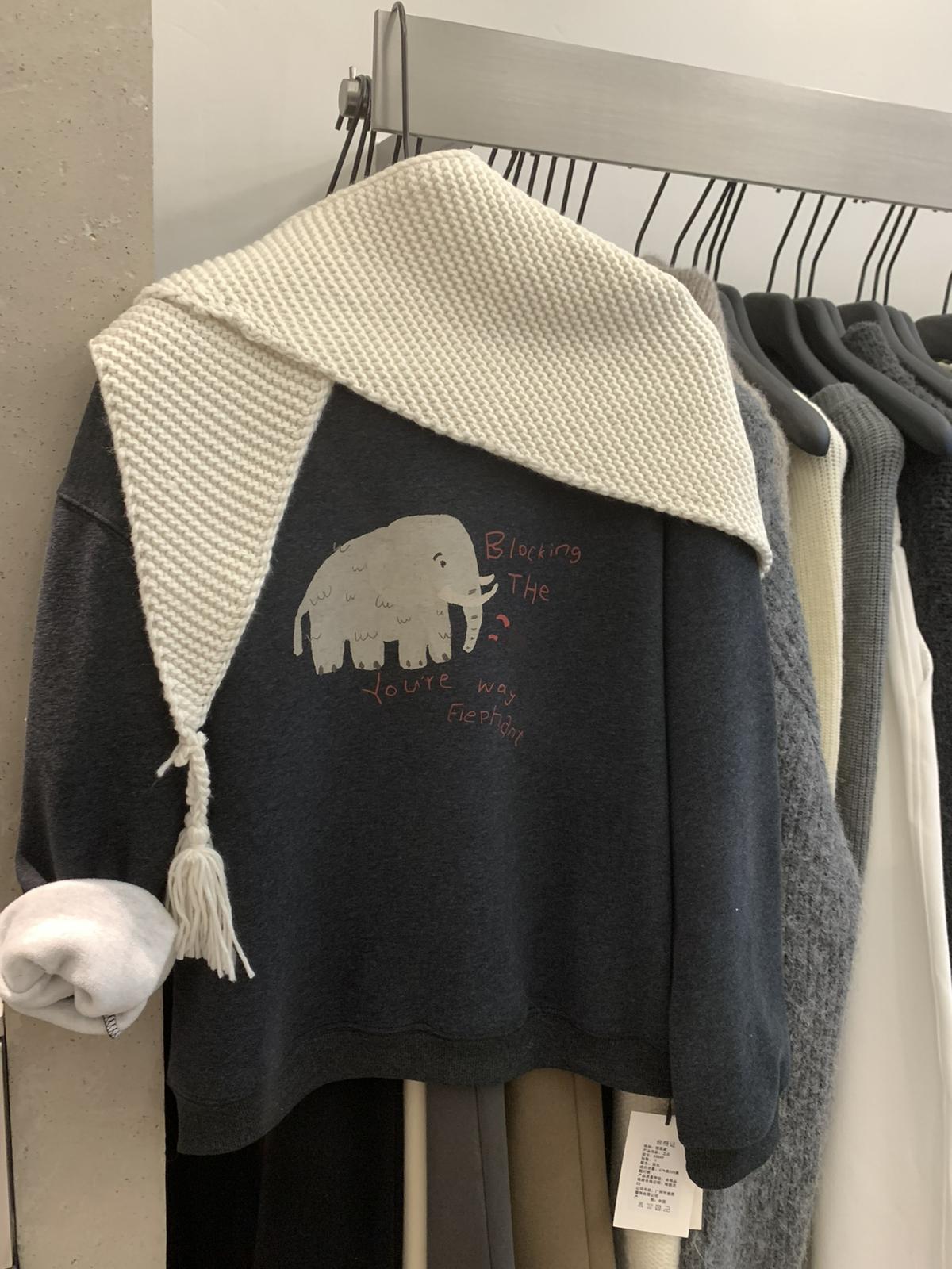 3. 【C8295】韓系休閒大象圖案考拉加絨衛衣(配編織披肩)