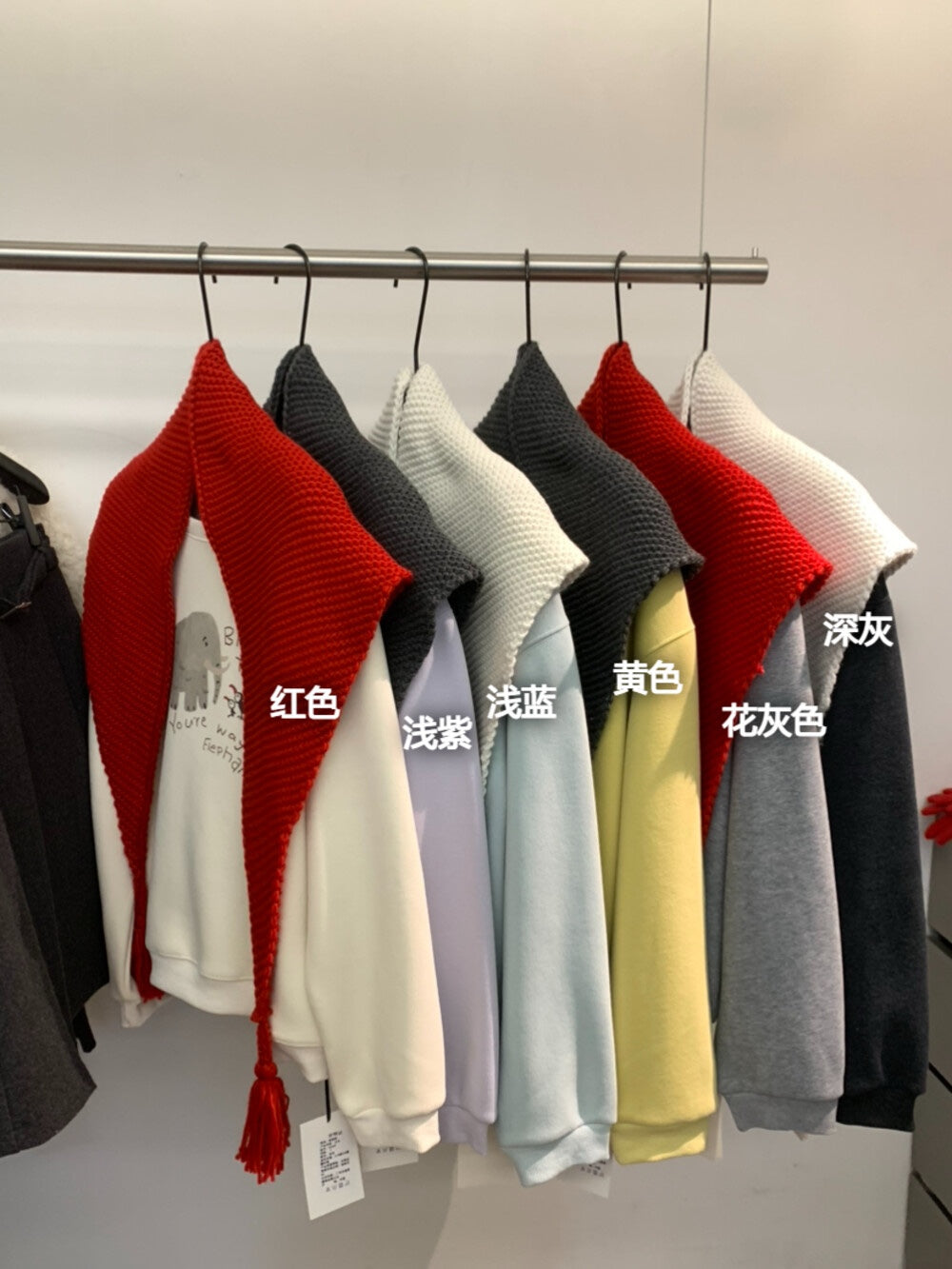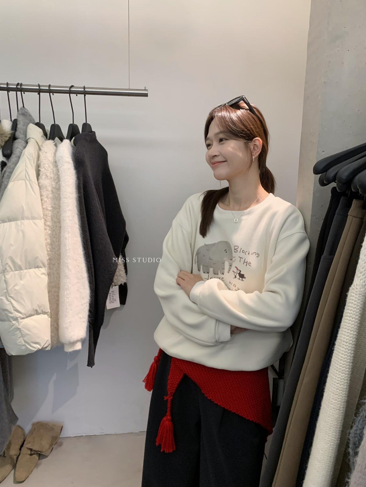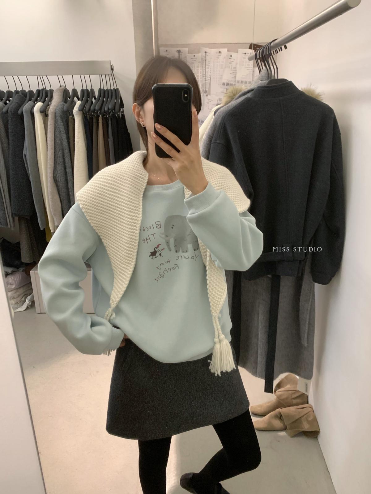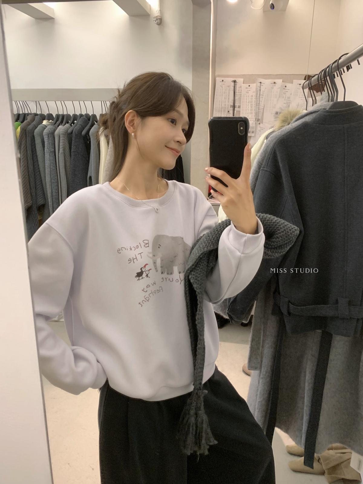 3. 【C8295】韓系休閒大象圖案考拉加絨衛衣(配編織披肩)
