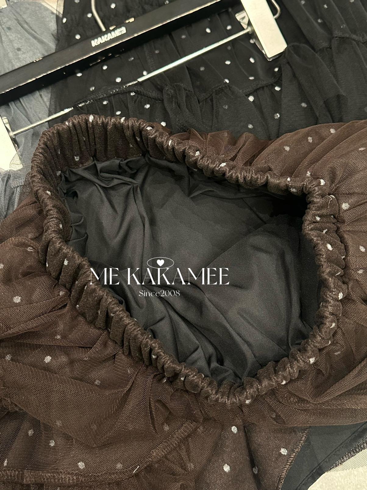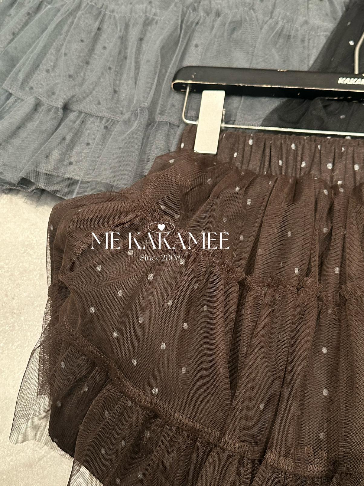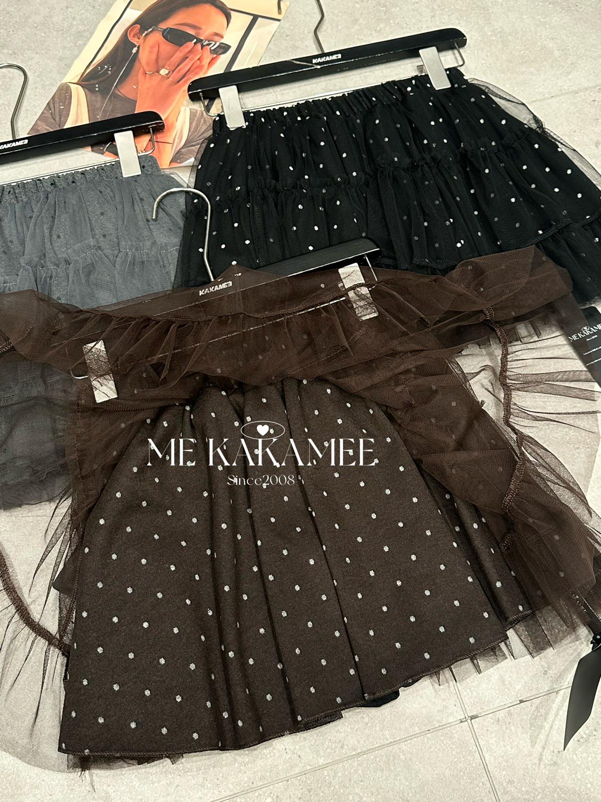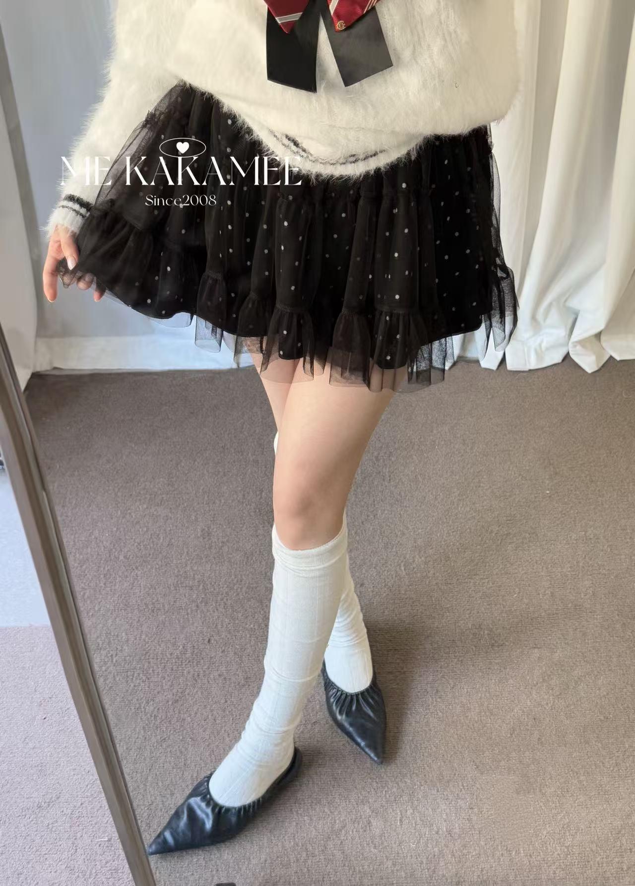 3. 【C8296】冬新品層次感拼接蕾絲設計波點短裙半身裙