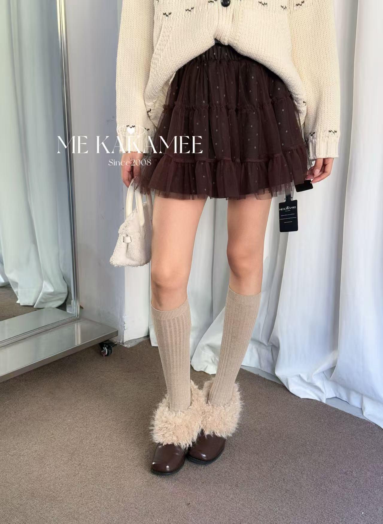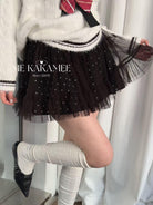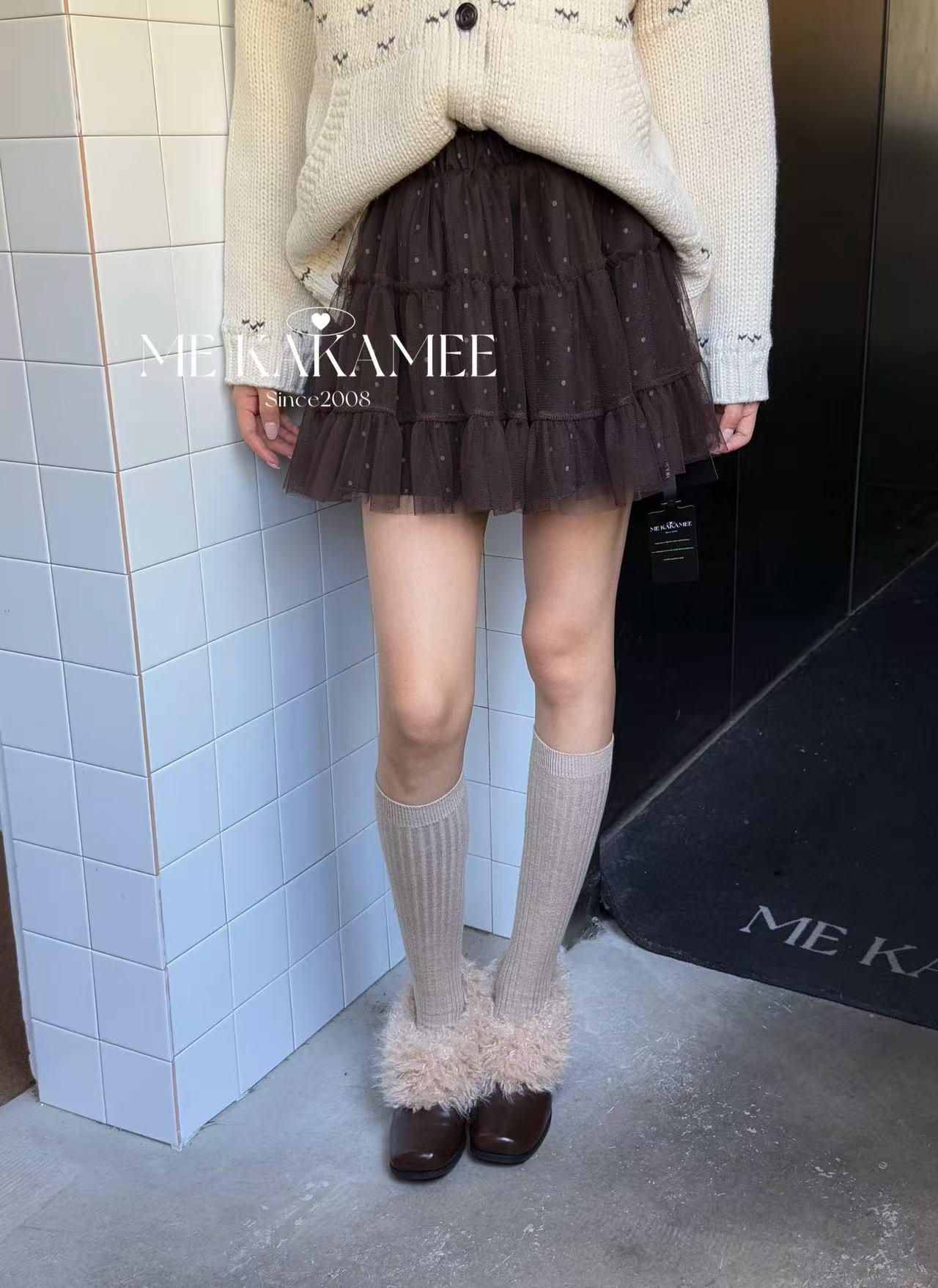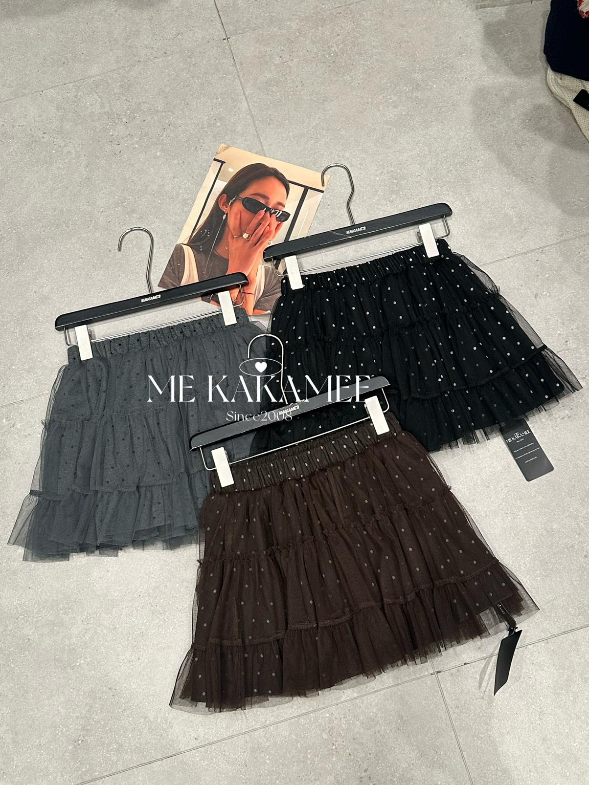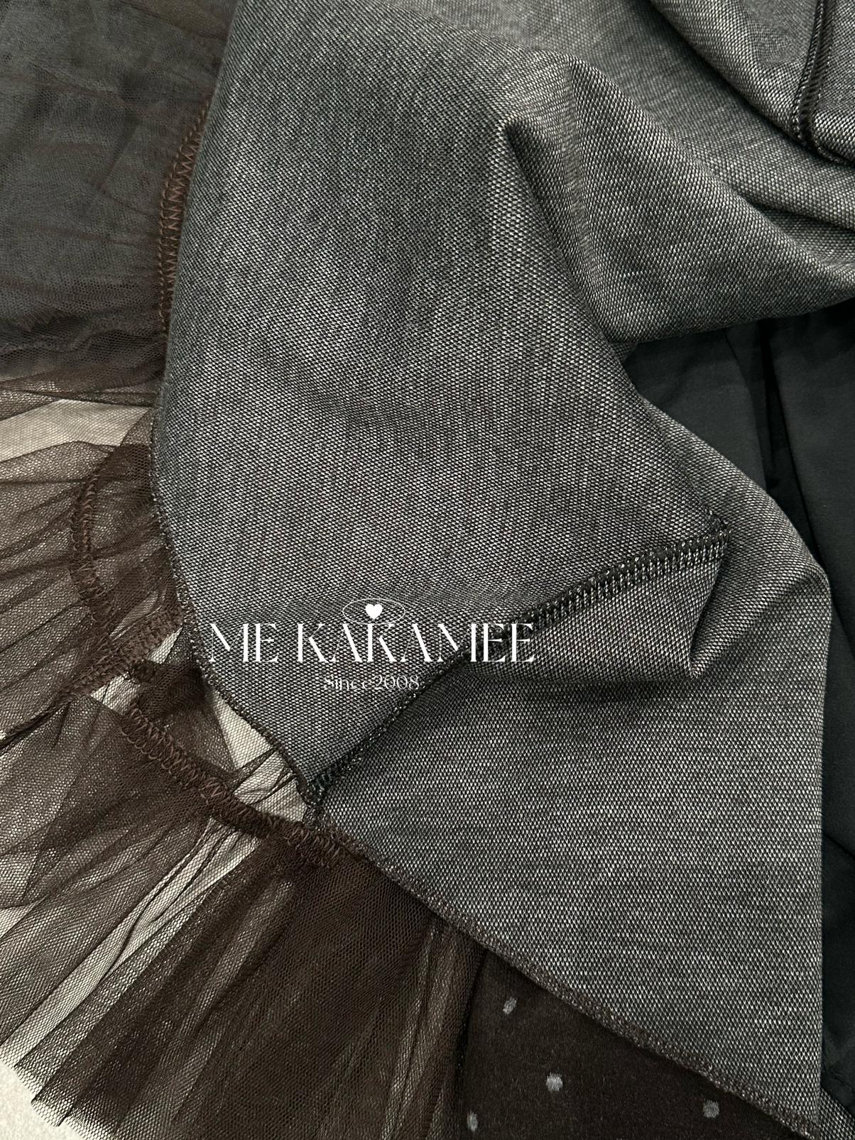 3. 【C8296】冬新品層次感拼接蕾絲設計波點短裙半身裙