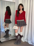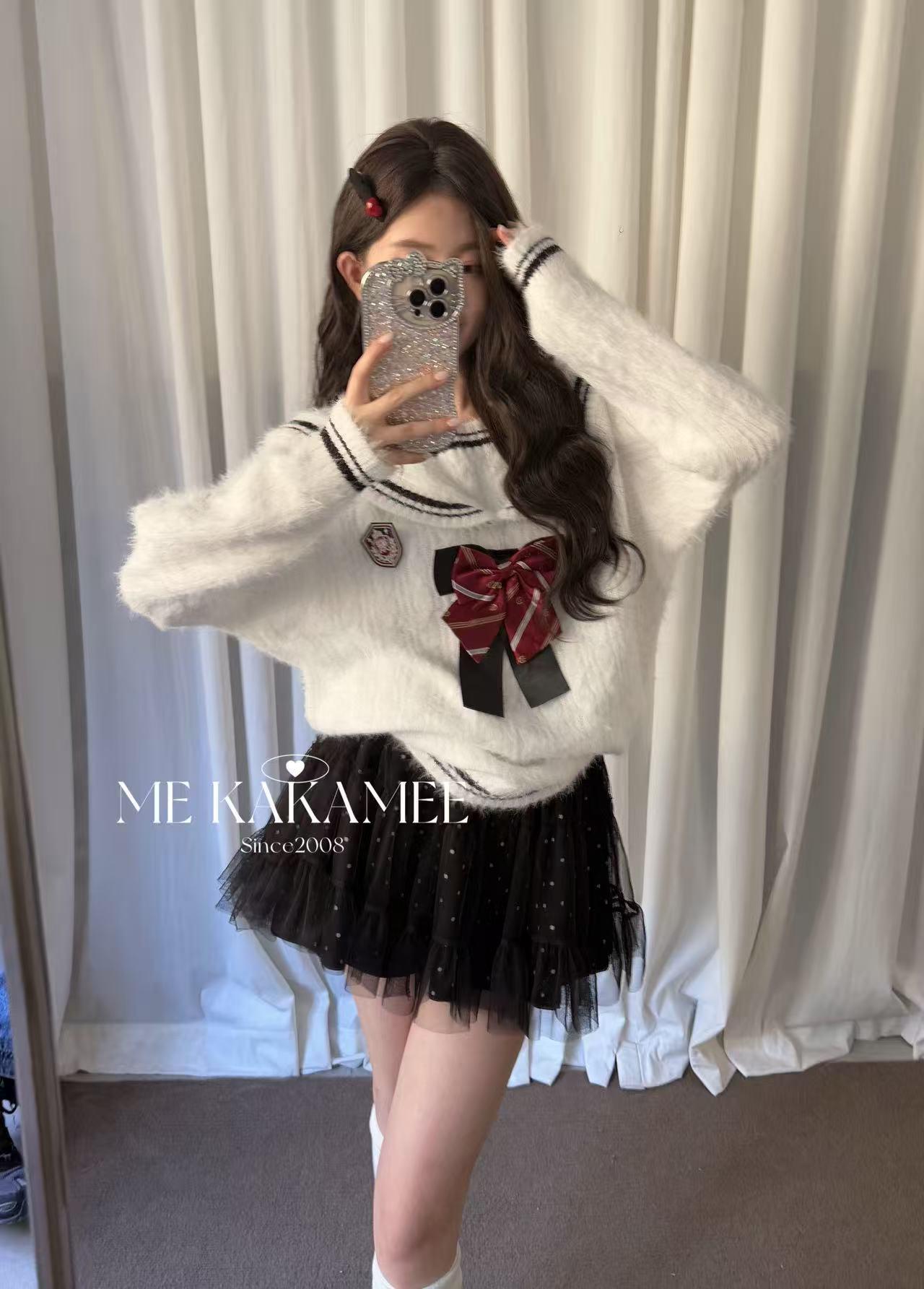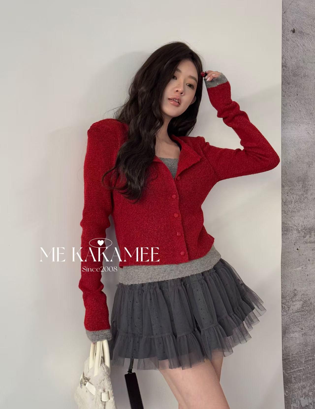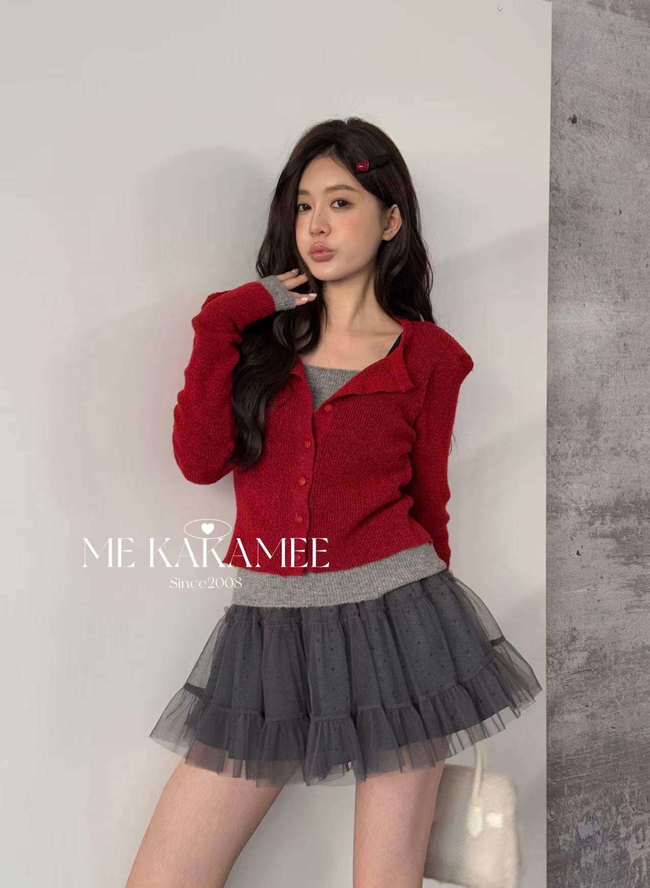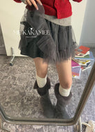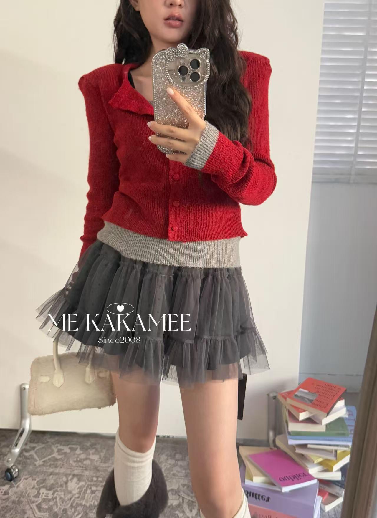 3. 【C8296】冬新品層次感拼接蕾絲設計波點短裙半身裙