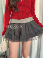 【C8296】冬新品層次感拼接蕾絲設計波點短裙半身裙