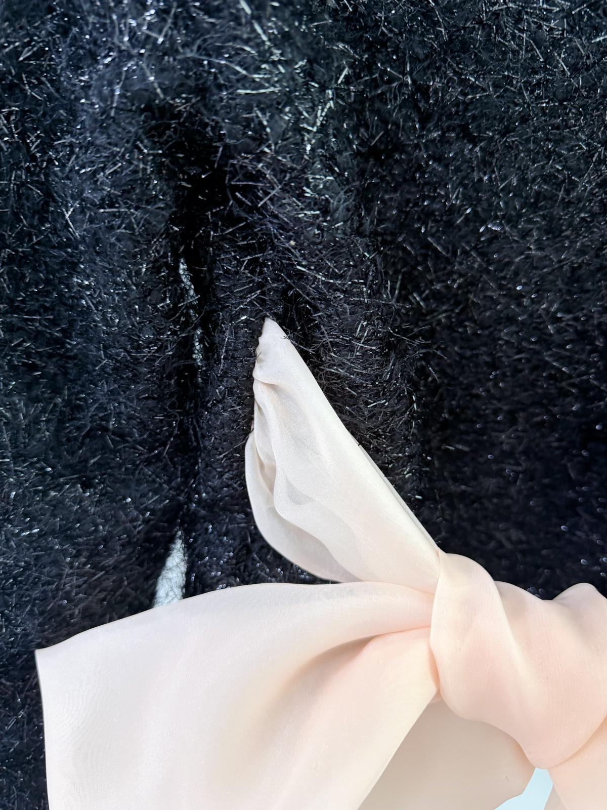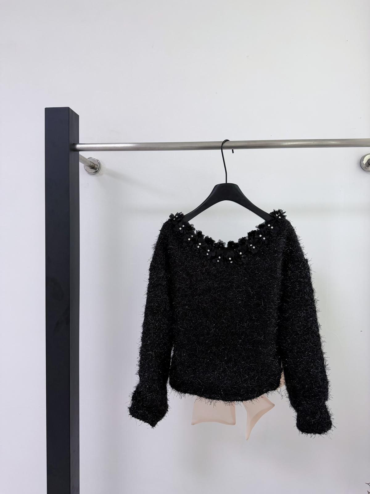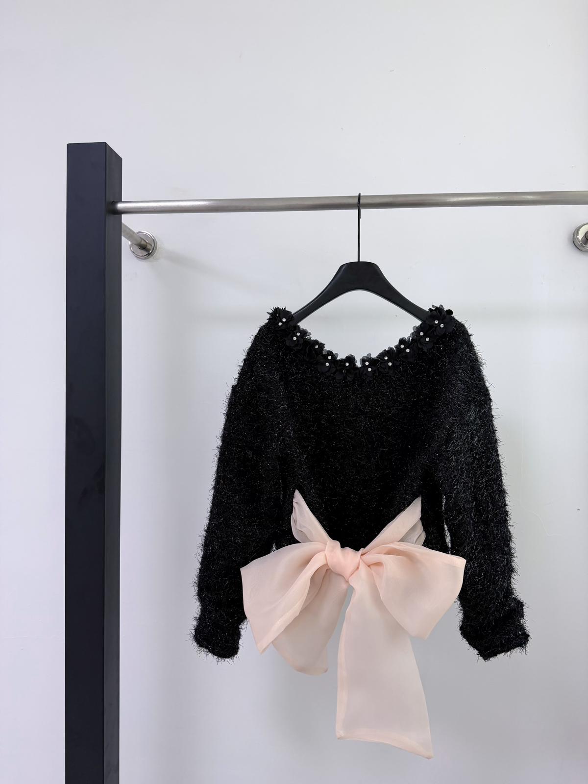 3. 【C8303】洋氣百搭小衆設計感重工釘珠花邊大蝴蝶結拼接設計寬鬆加厚針織保暖毛衣