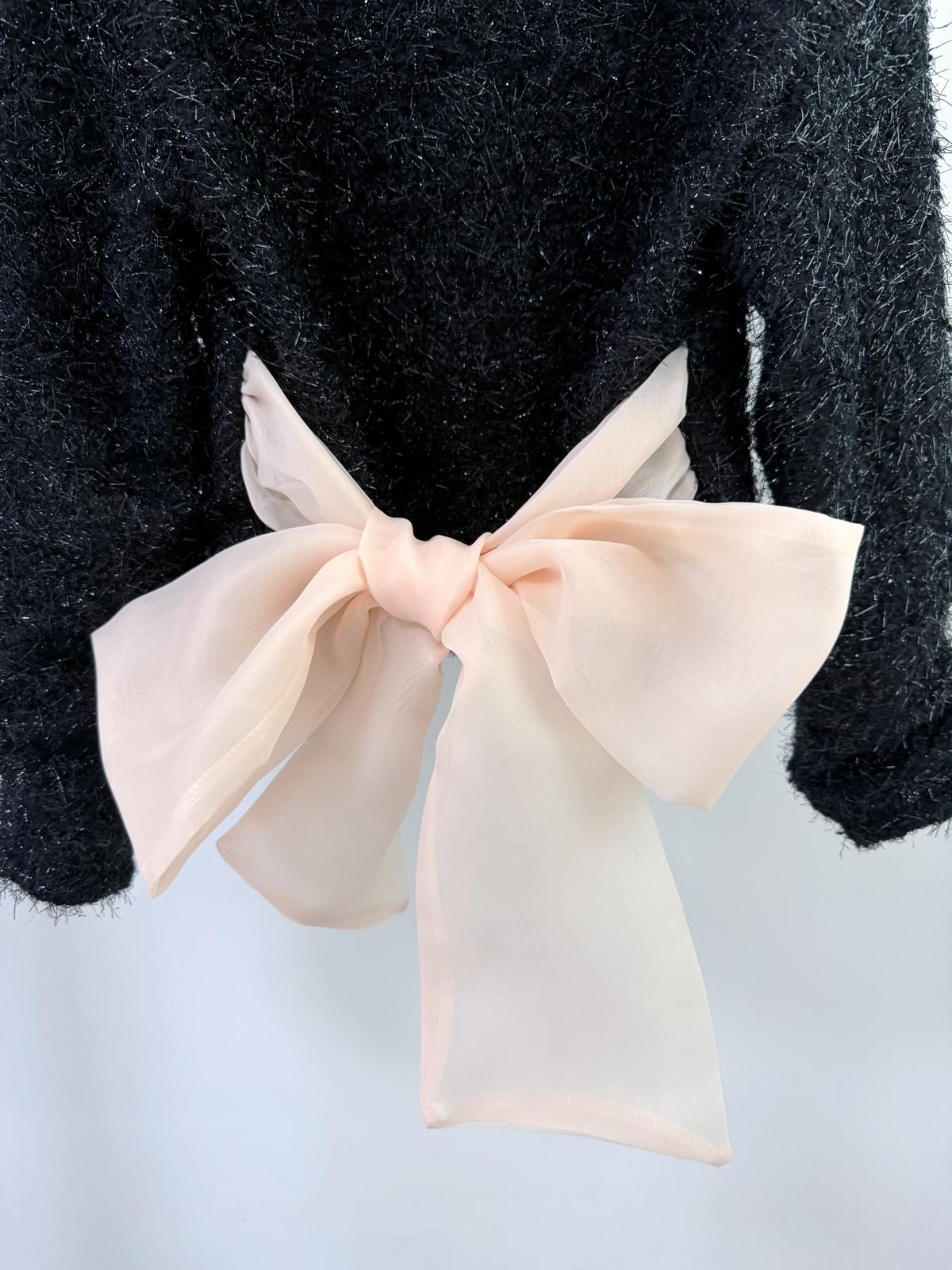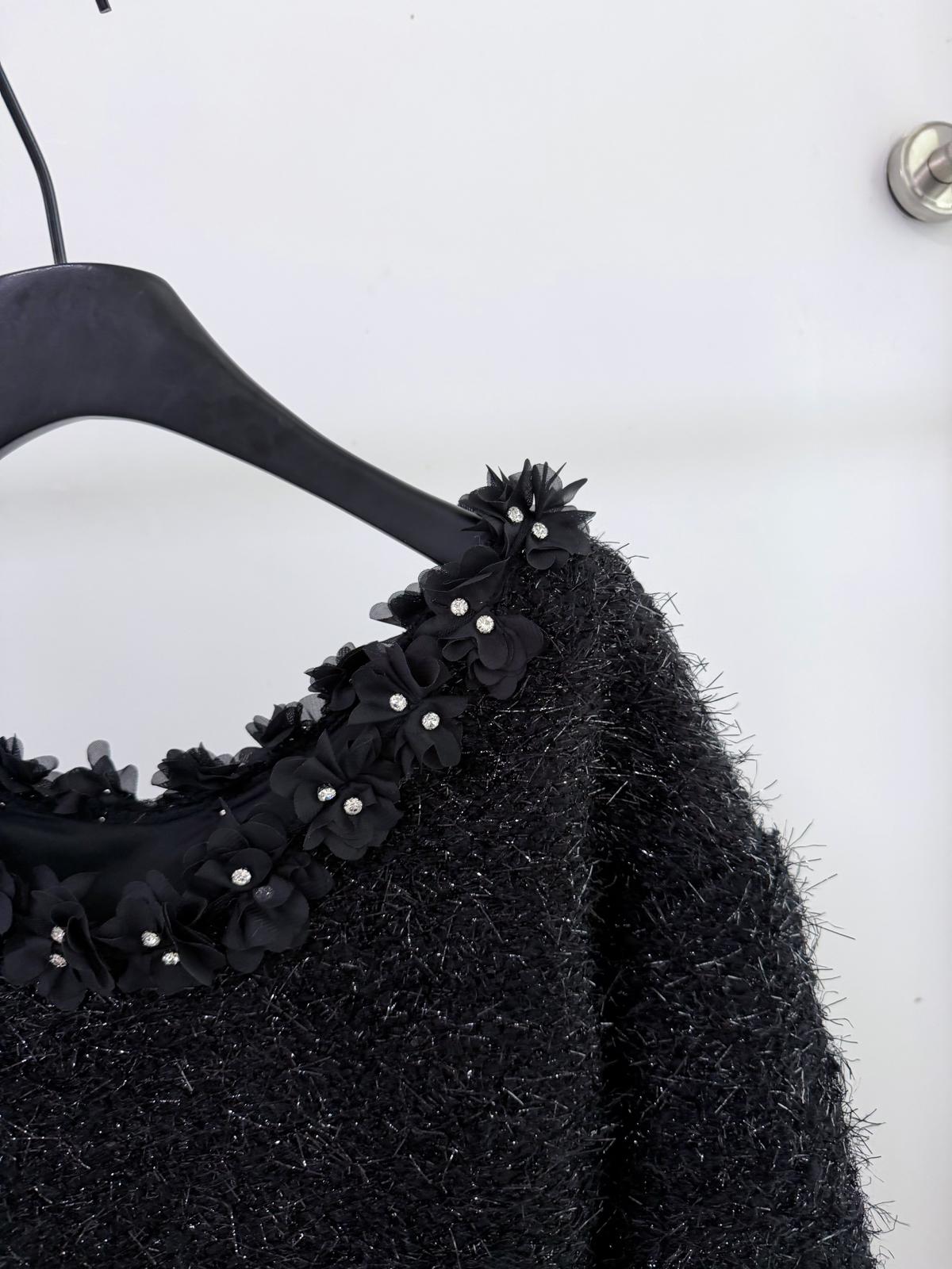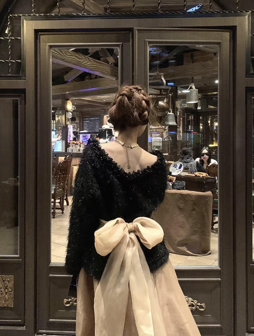3. 【C8303】洋氣百搭小衆設計感重工釘珠花邊大蝴蝶結拼接設計寬鬆加厚針織保暖毛衣