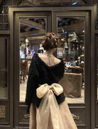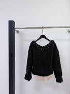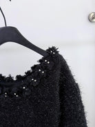【C8303】洋氣百搭小衆設計感重工釘珠花邊大蝴蝶結拼接設計寬鬆加厚針織保暖毛衣
