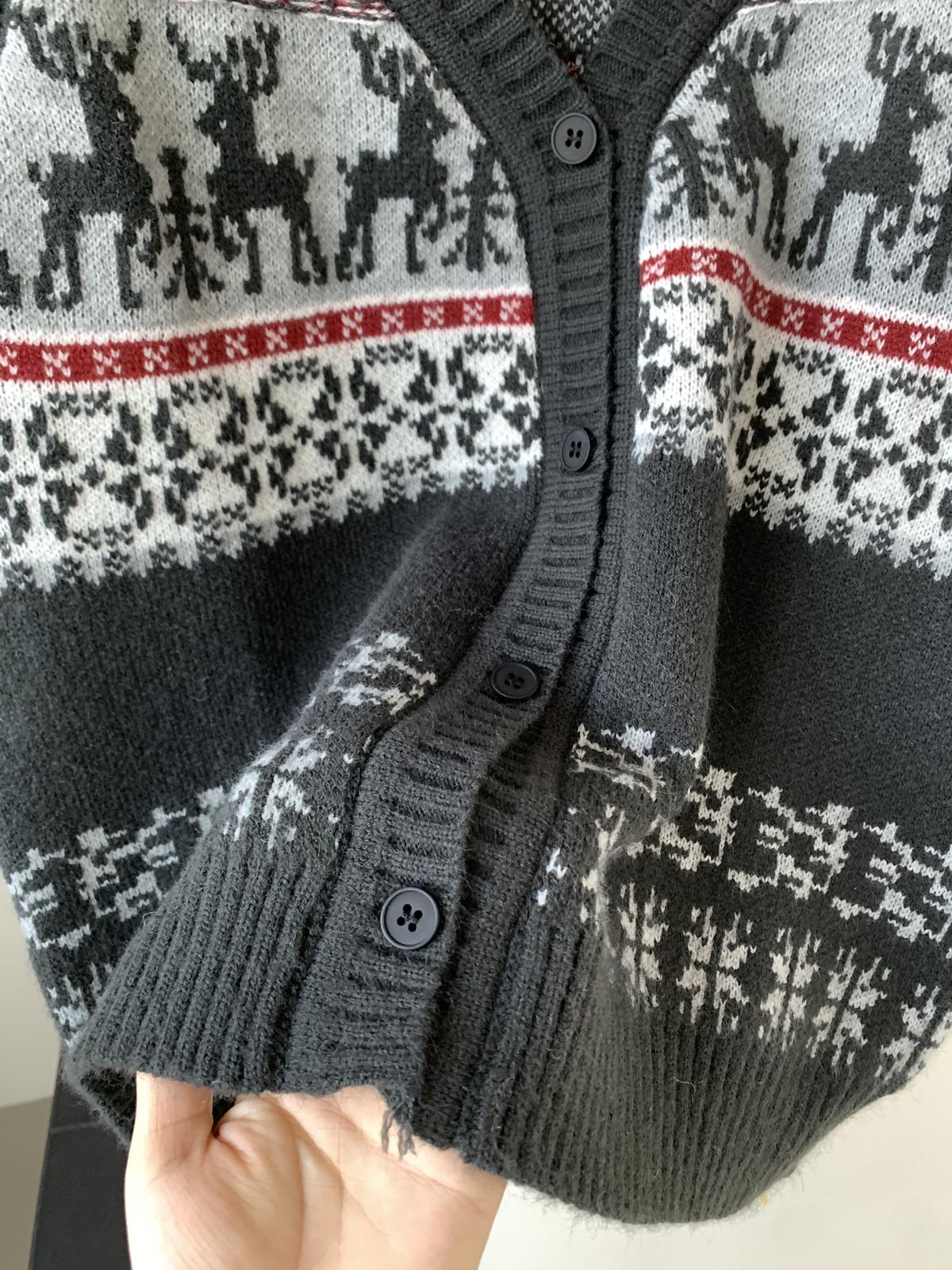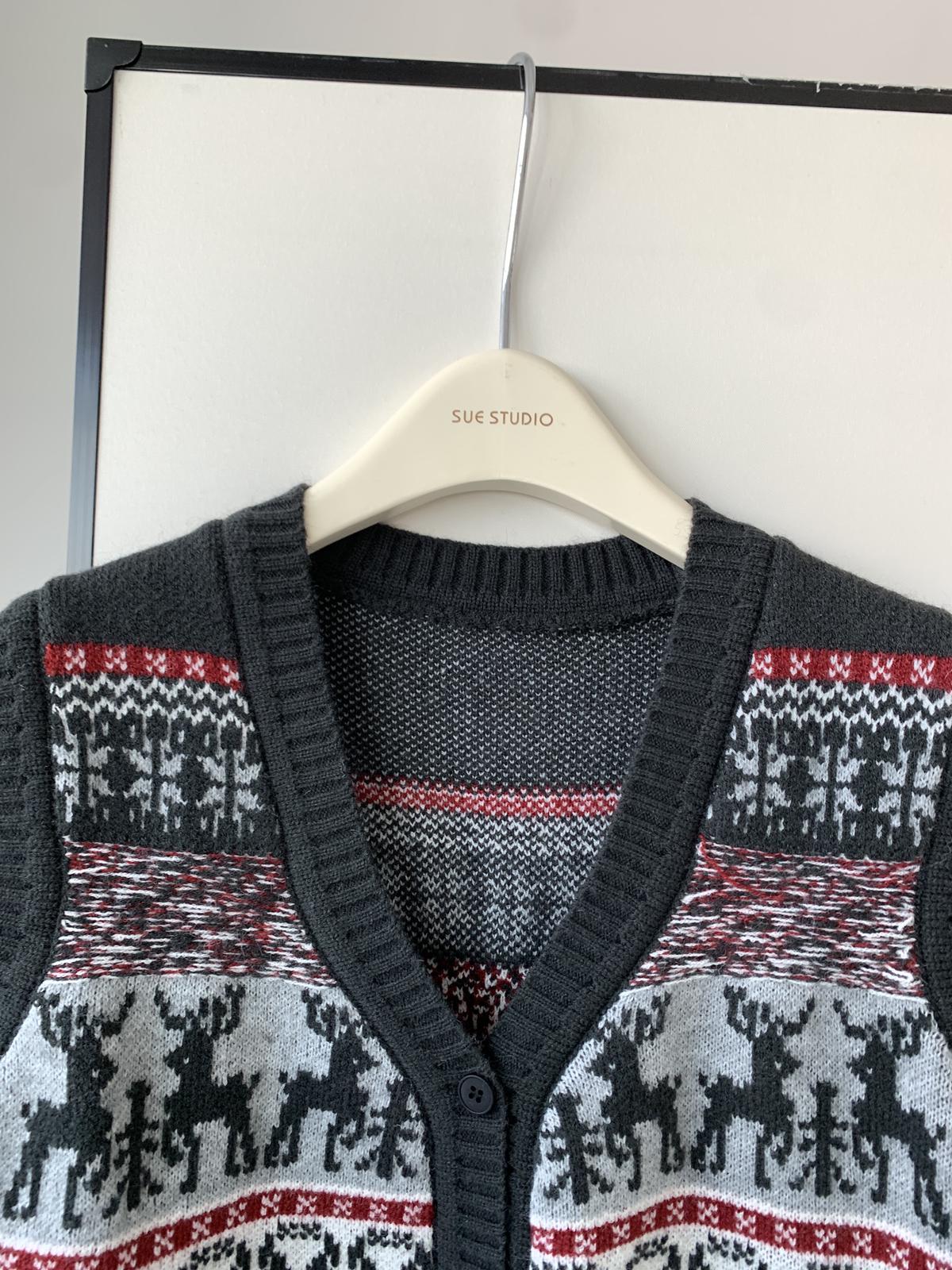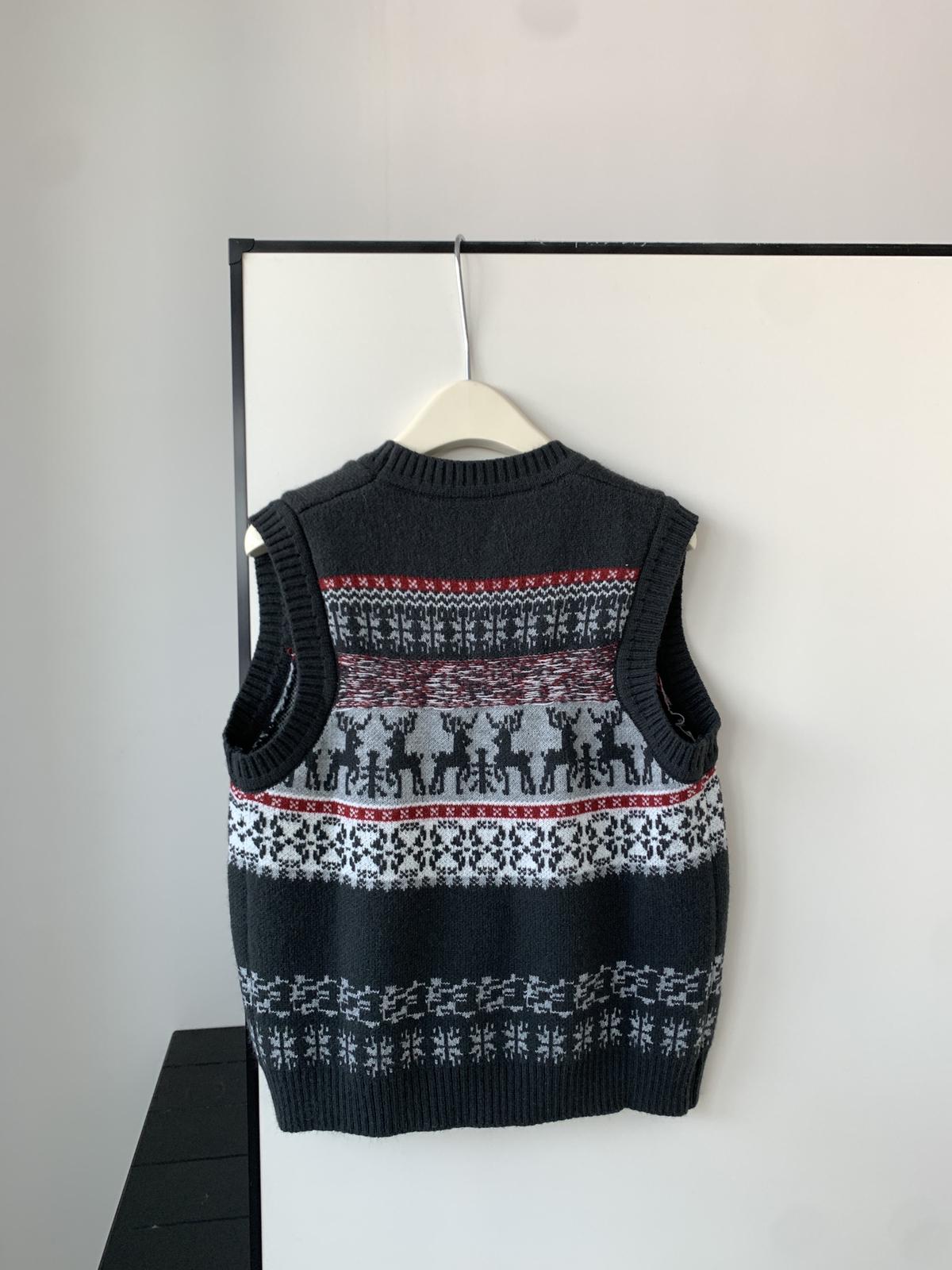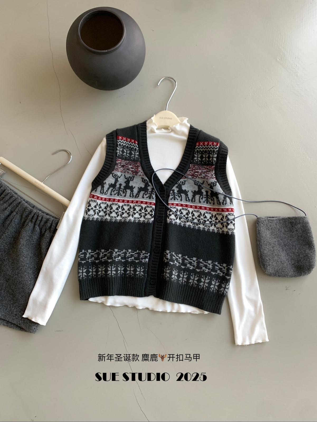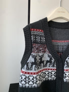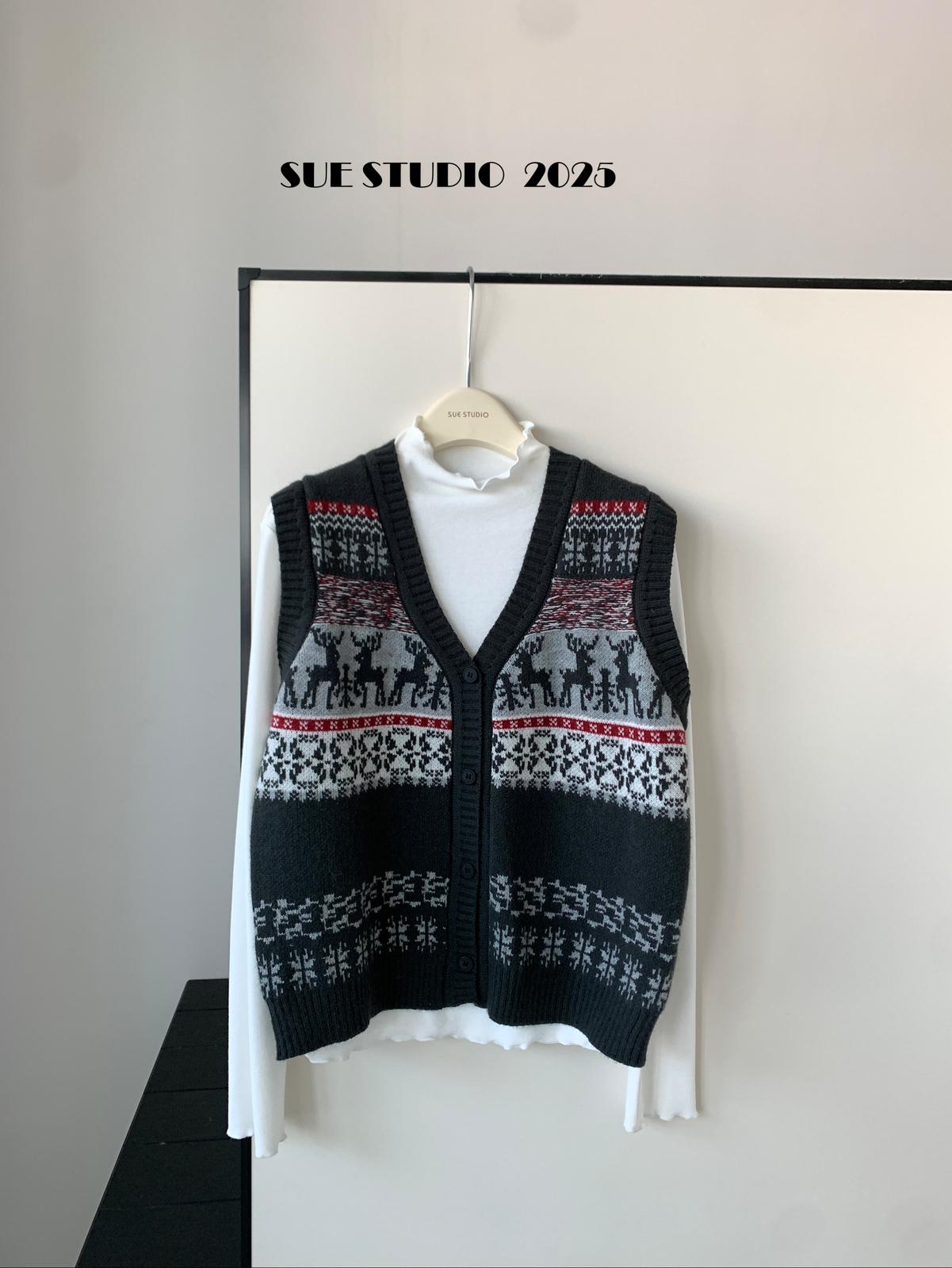 【C8305】麋鹿拼色V領開釦針織馬甲