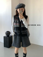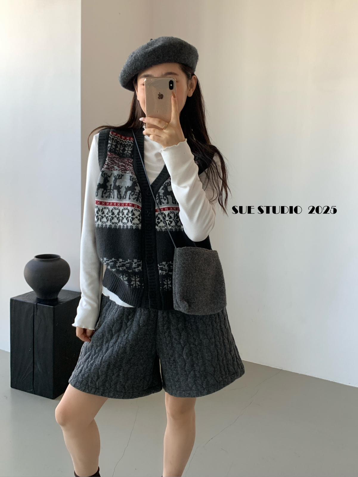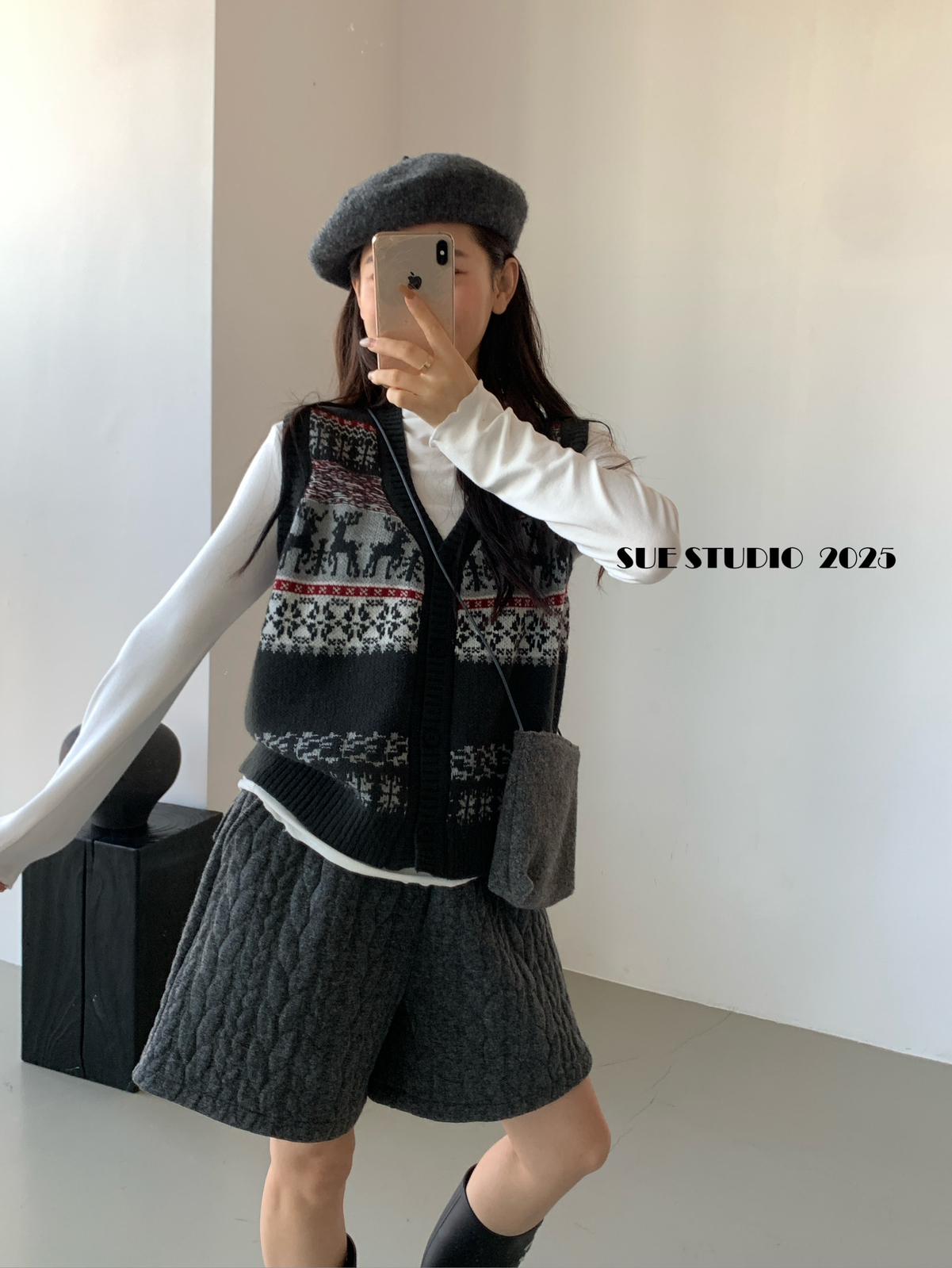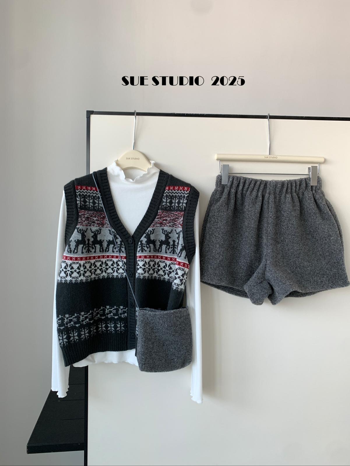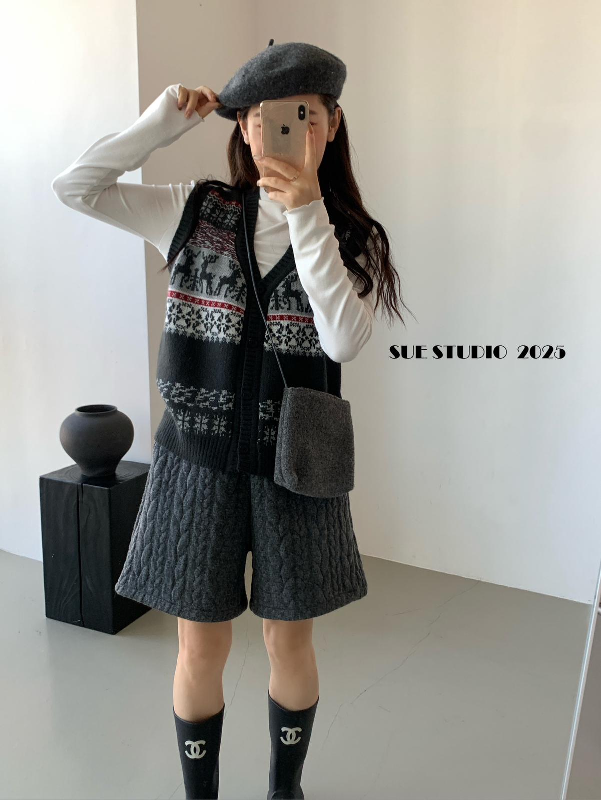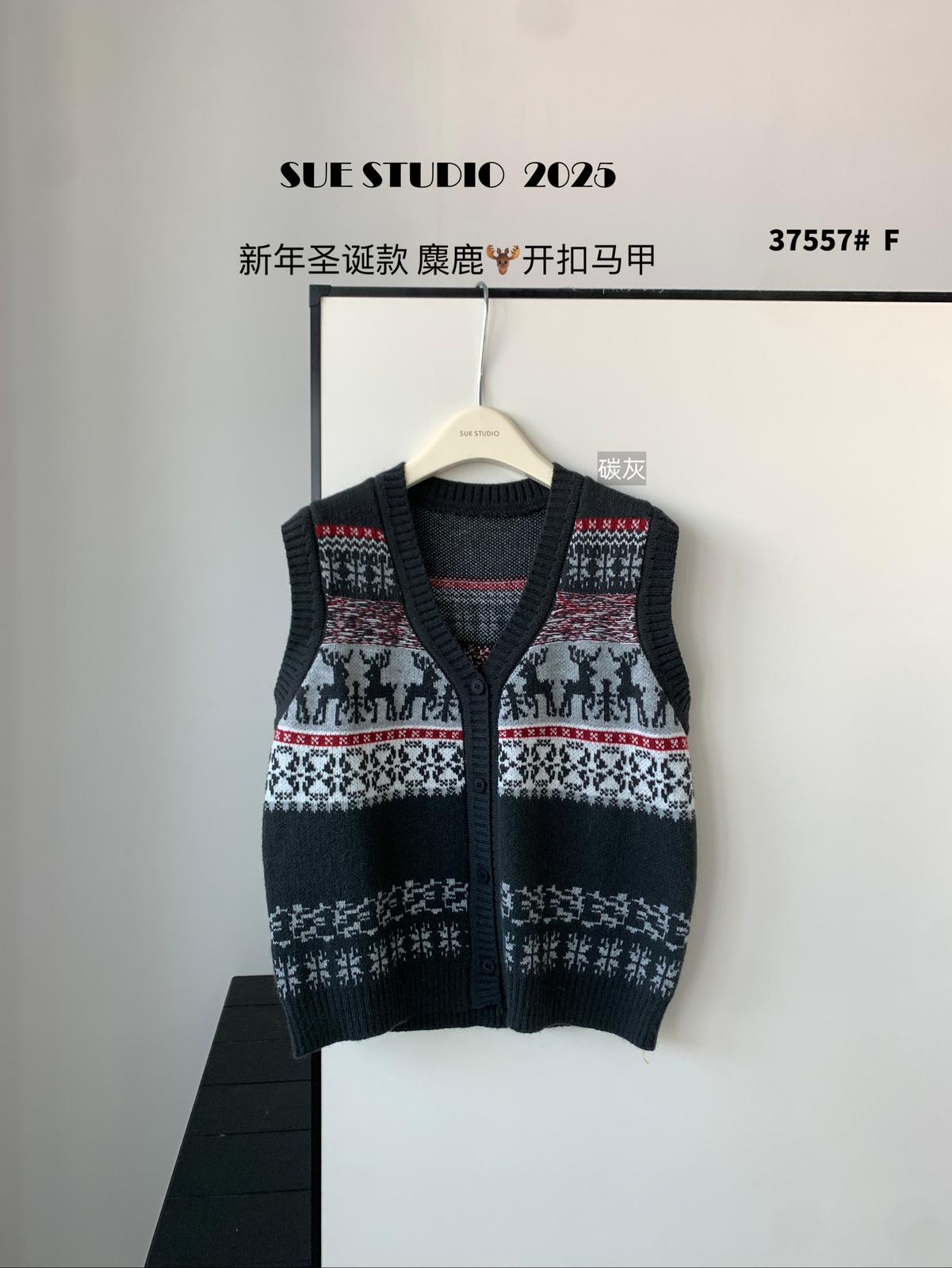 【C8305】麋鹿拼色V領開釦針織馬甲