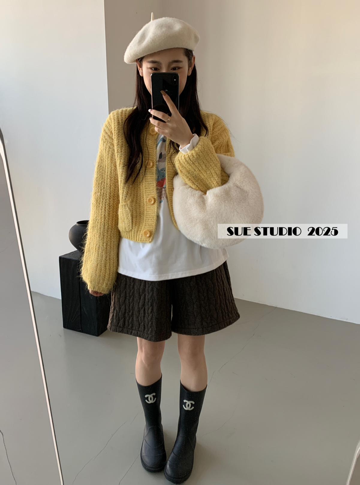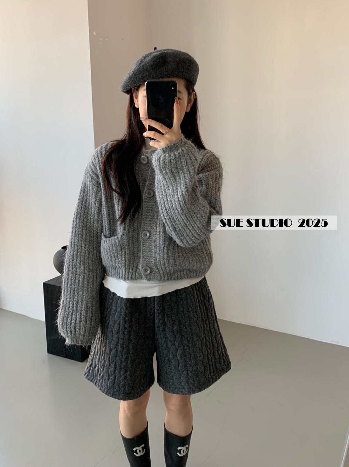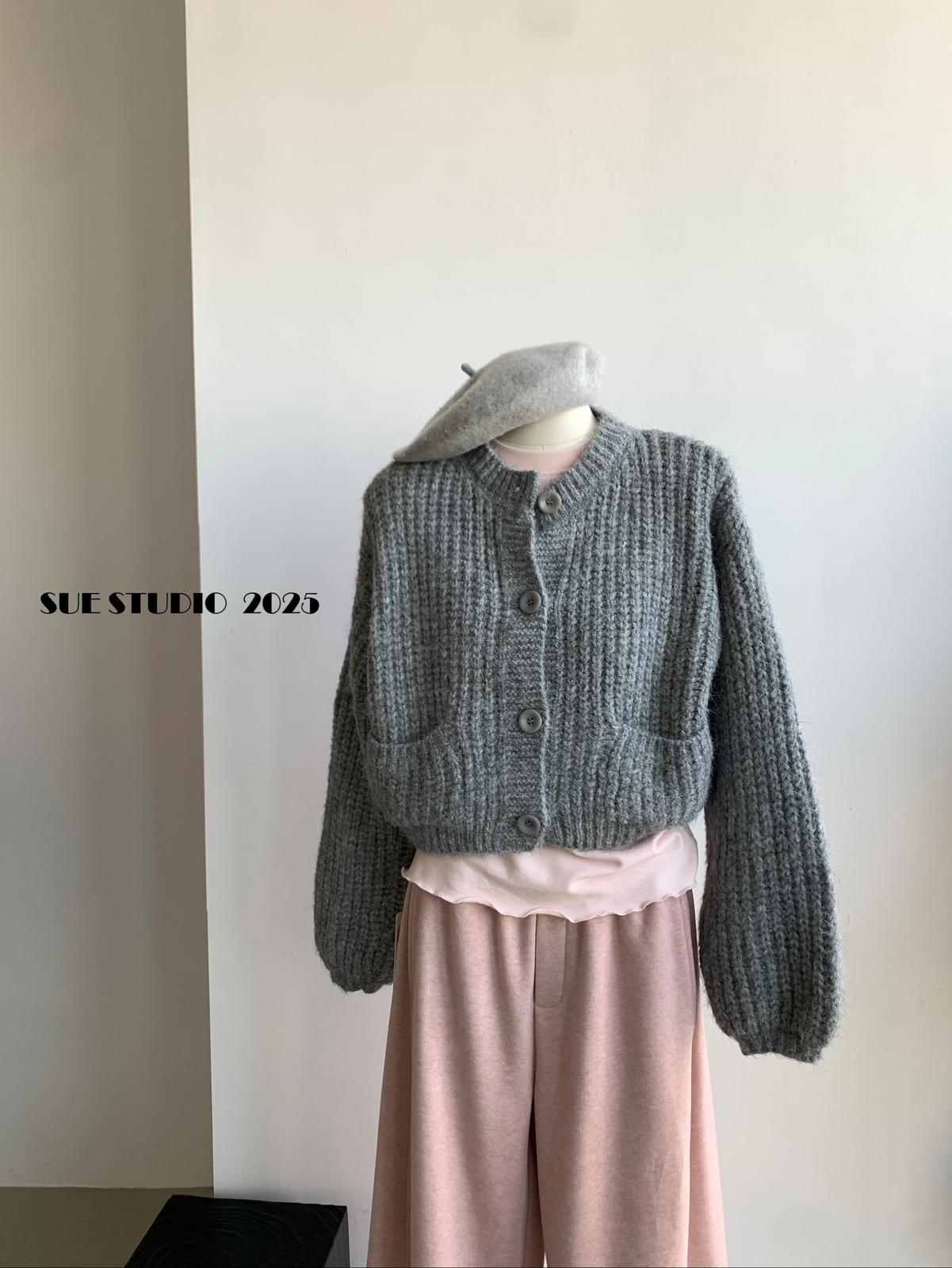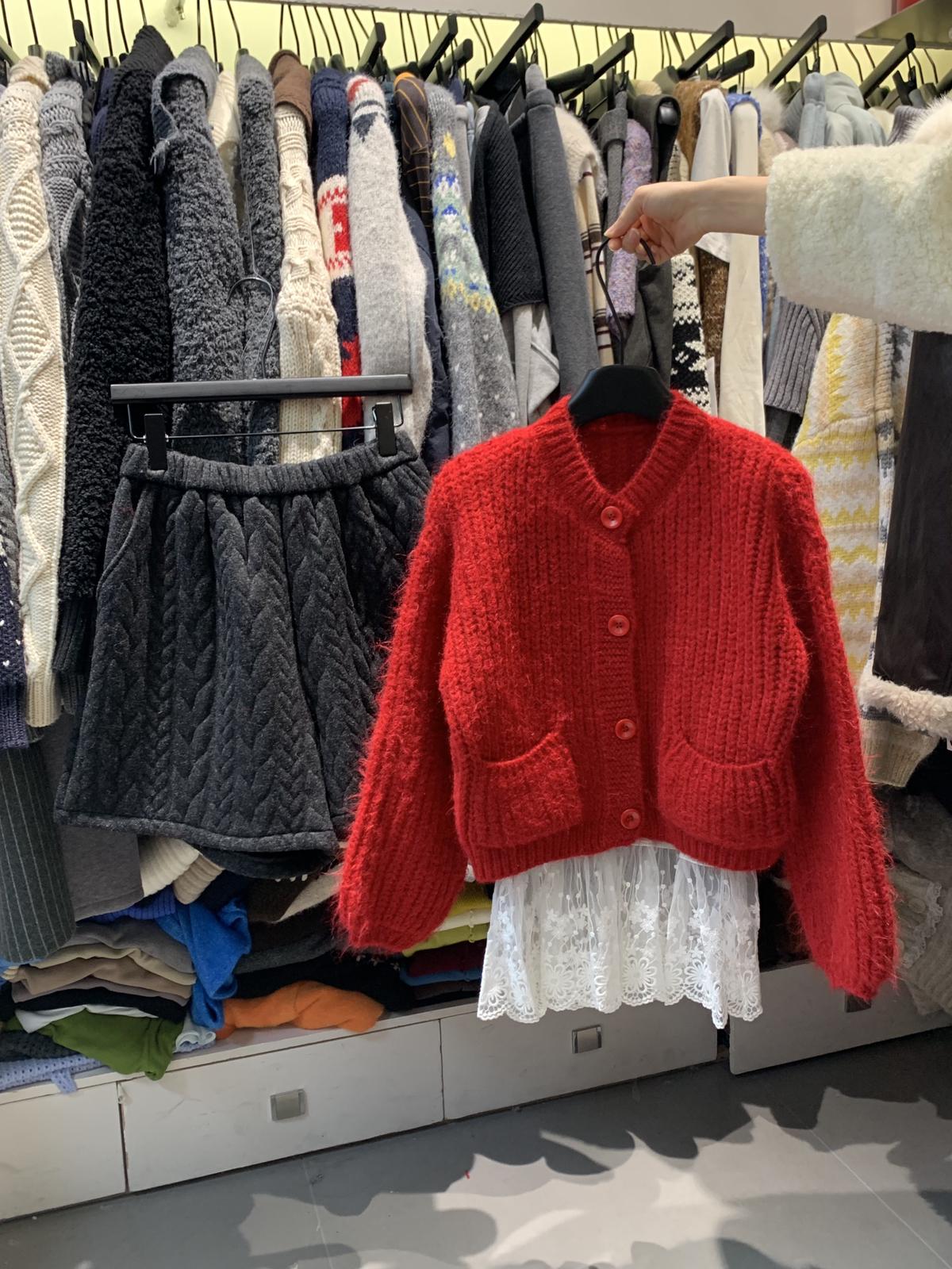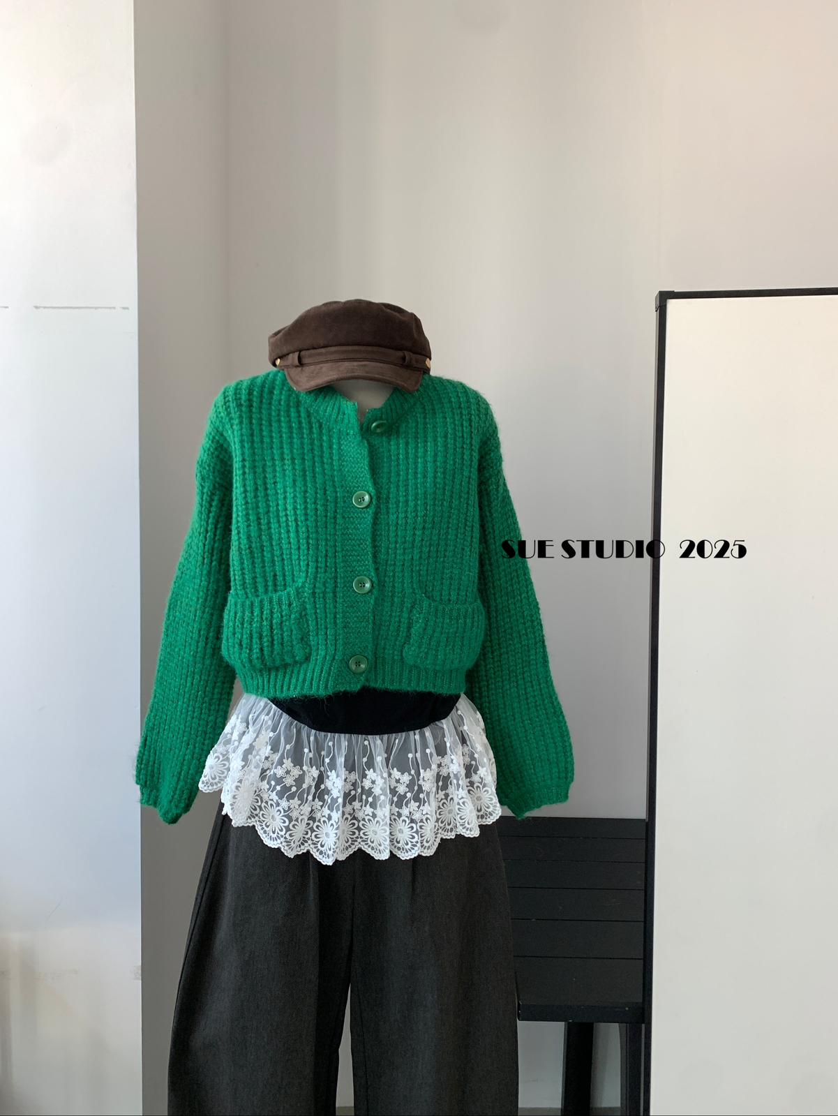【C8306】韓系短款粗線彩色口袋開衫外套保暖毛衣