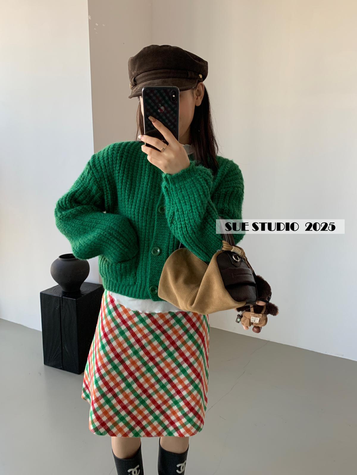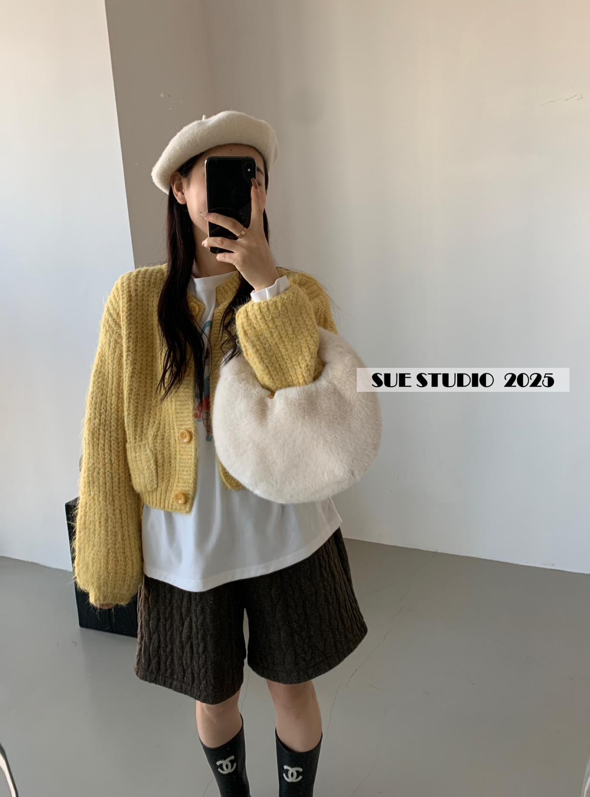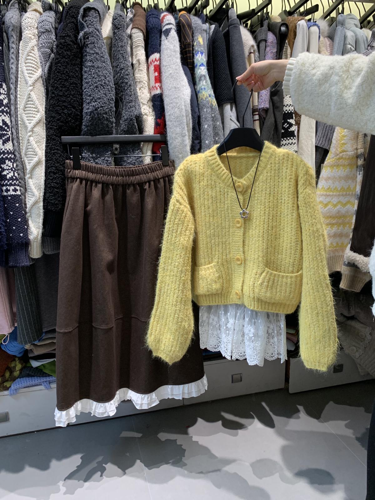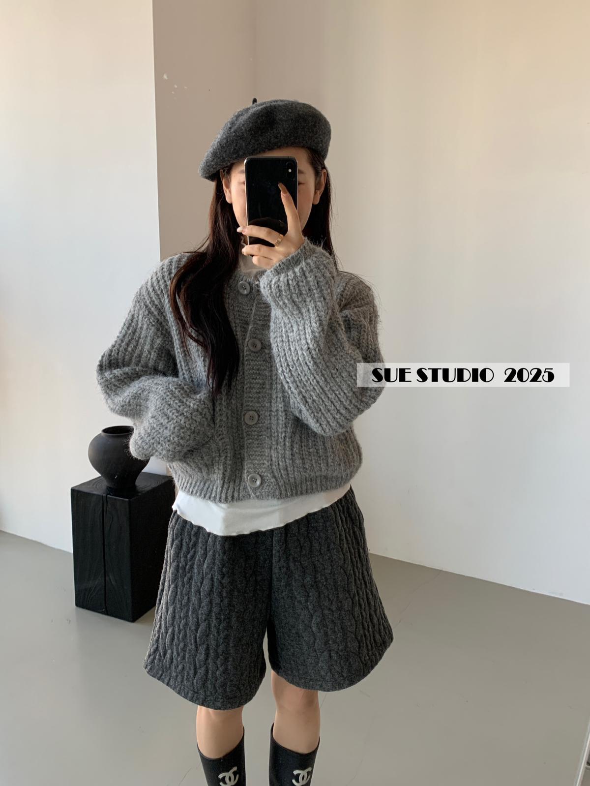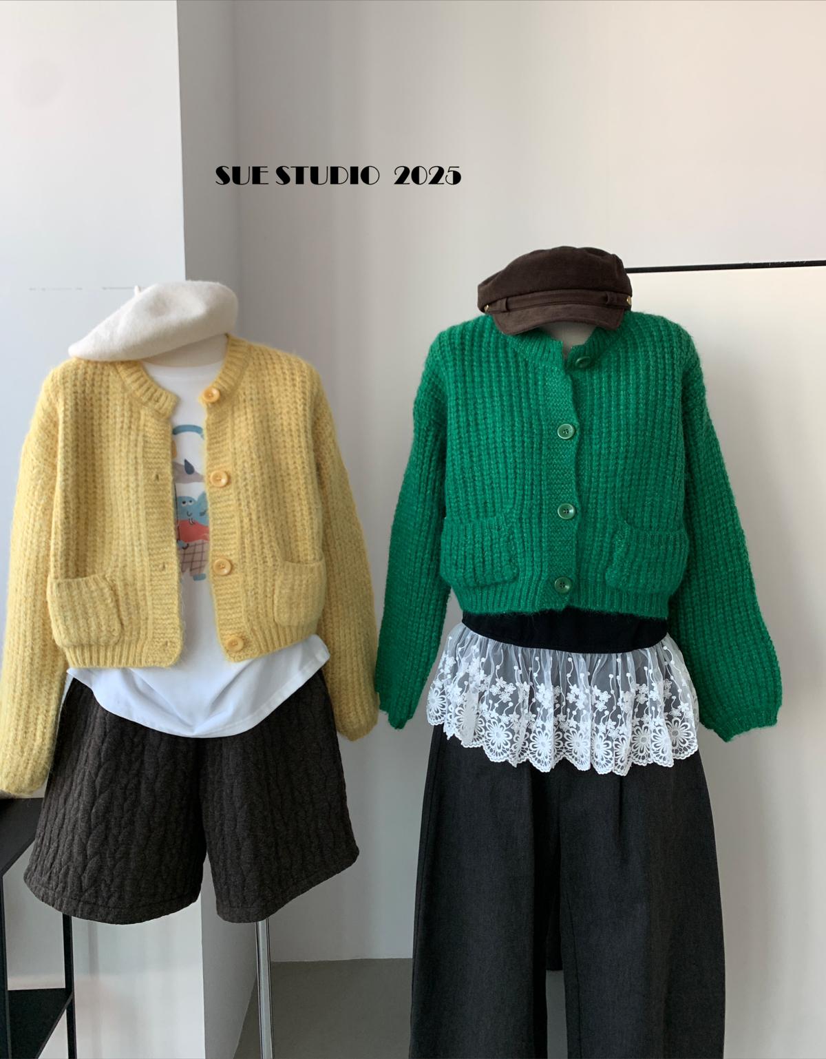 【C8306】韓系短款粗線彩色口袋開衫外套保暖毛衣