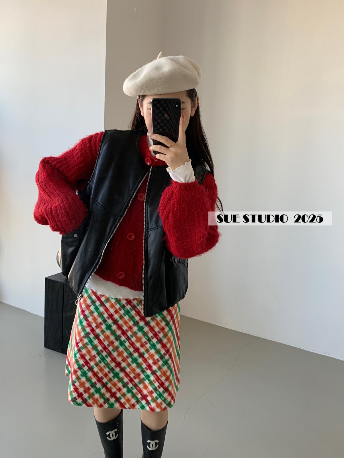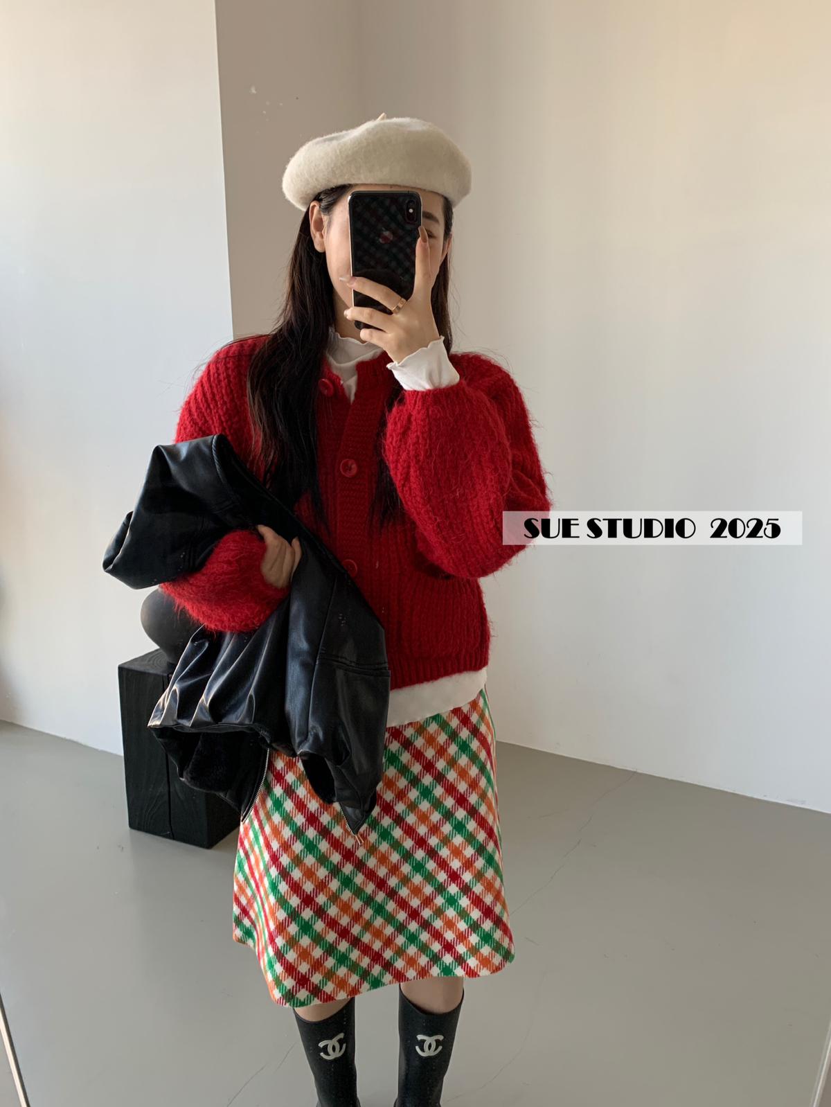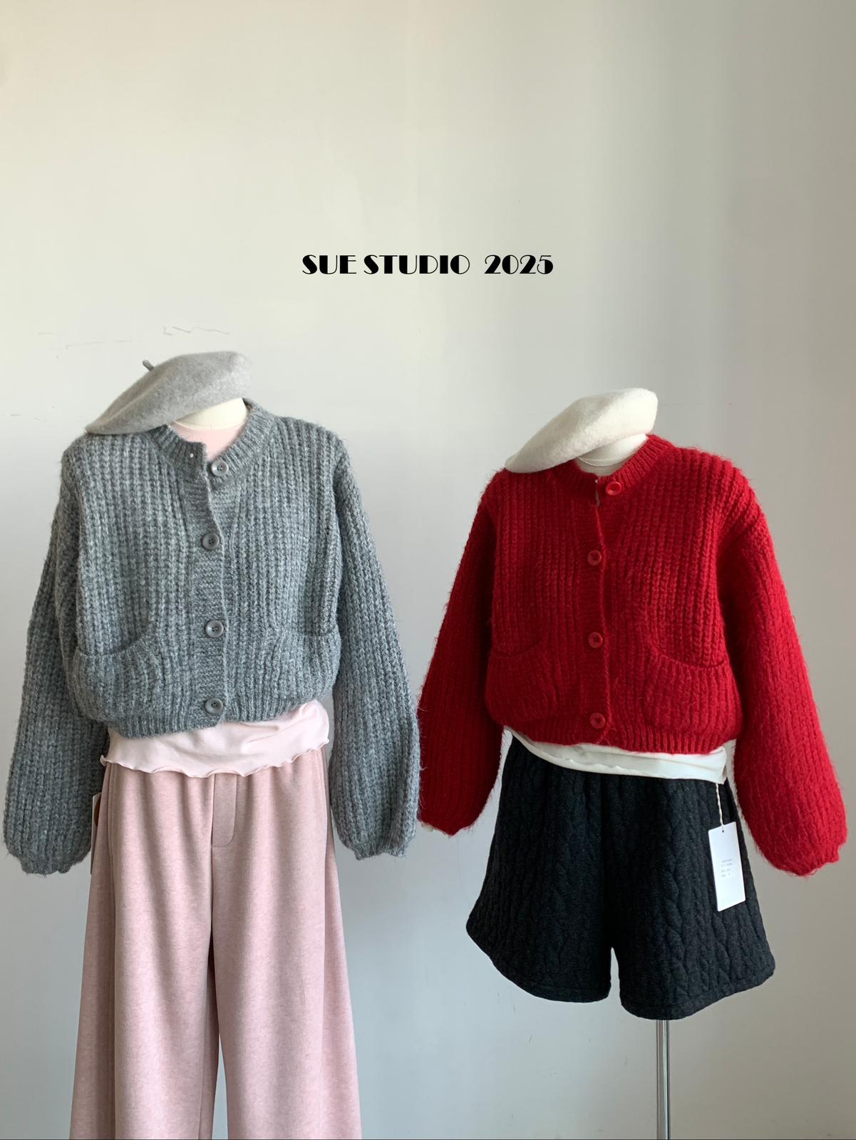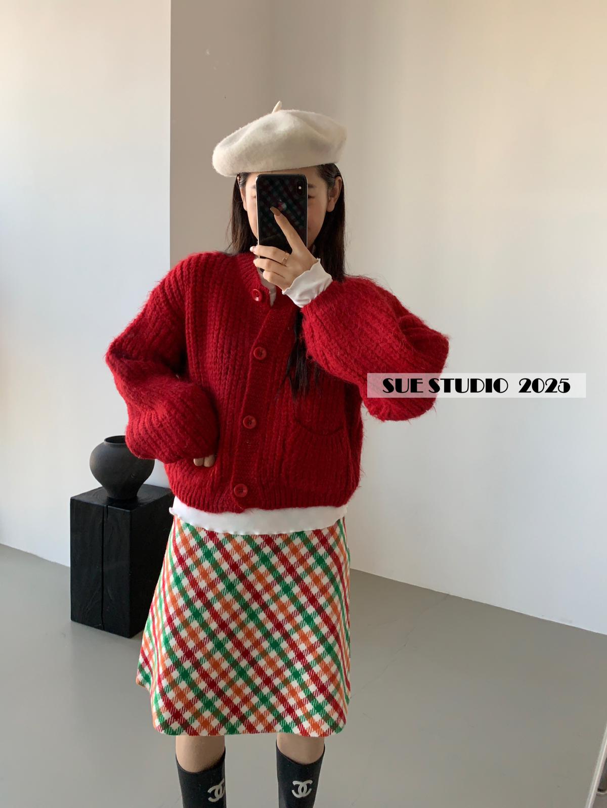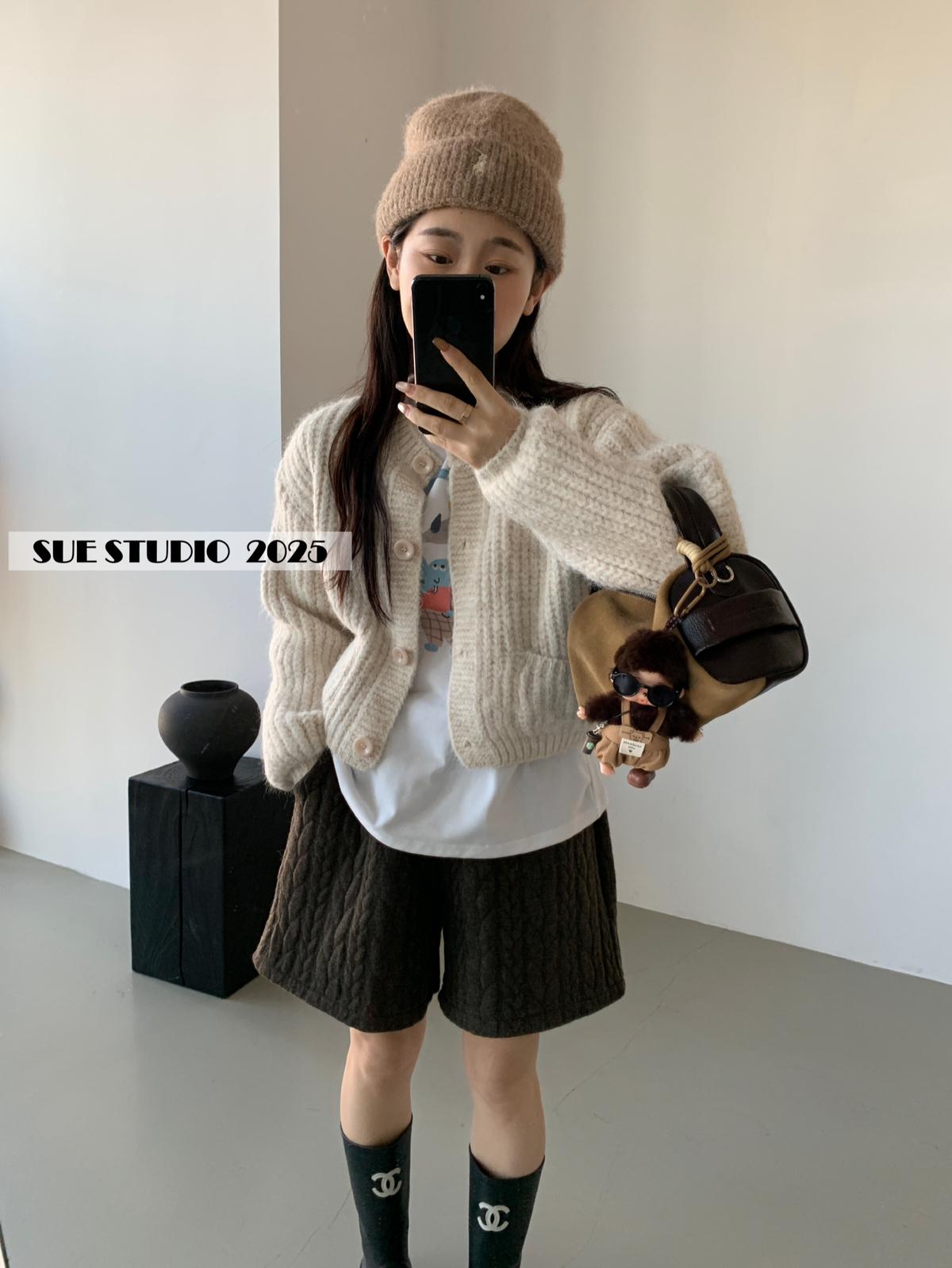 【C8306】韓系短款粗線彩色口袋開衫外套保暖毛衣