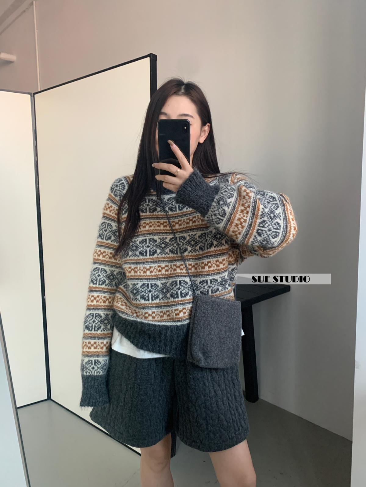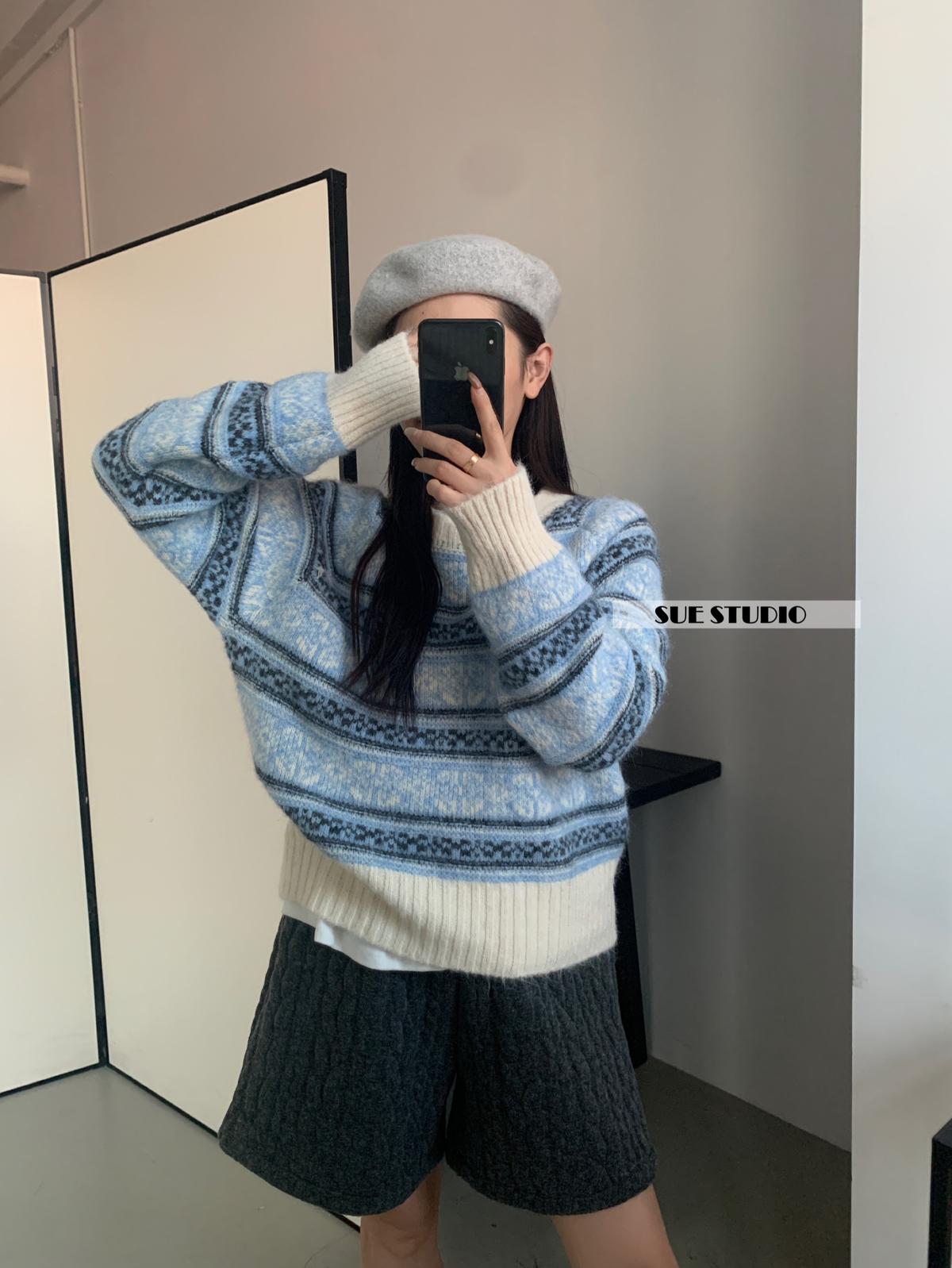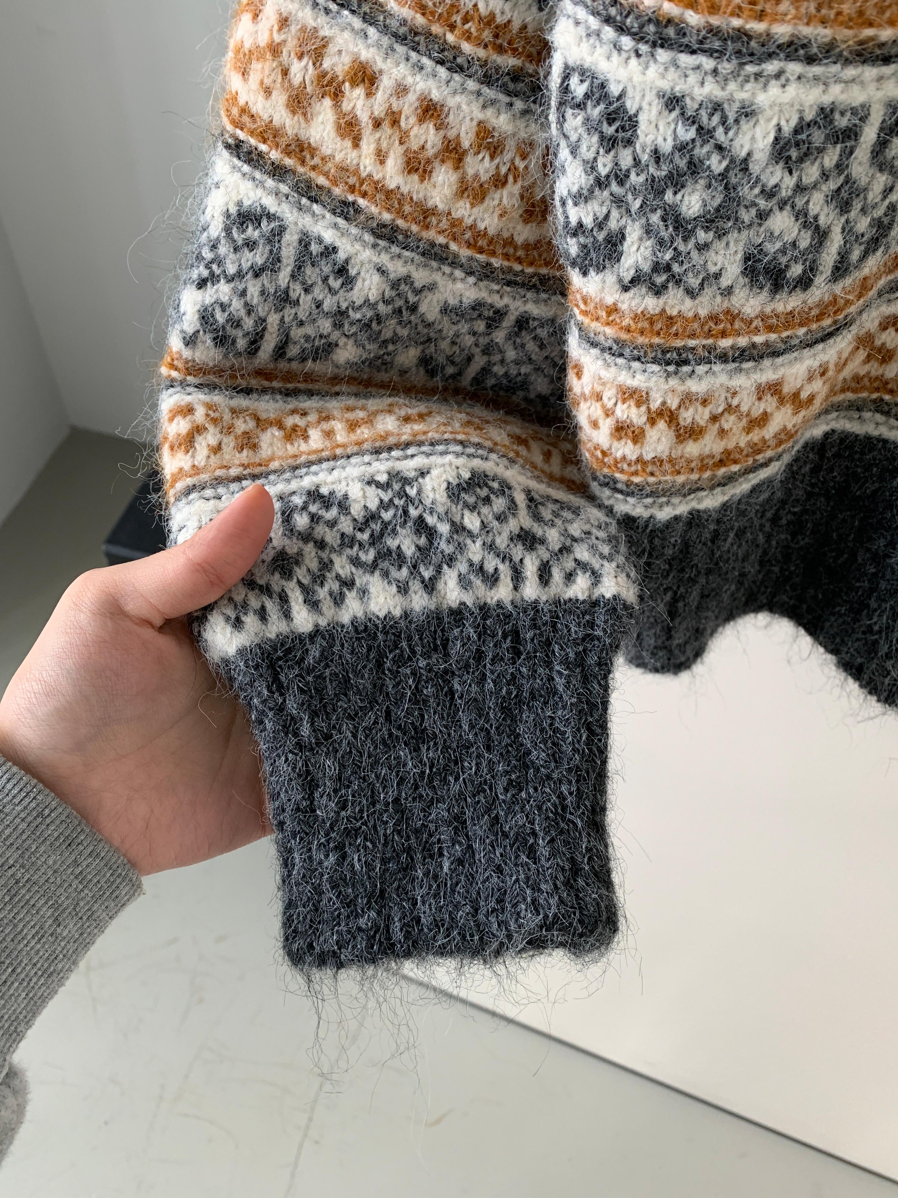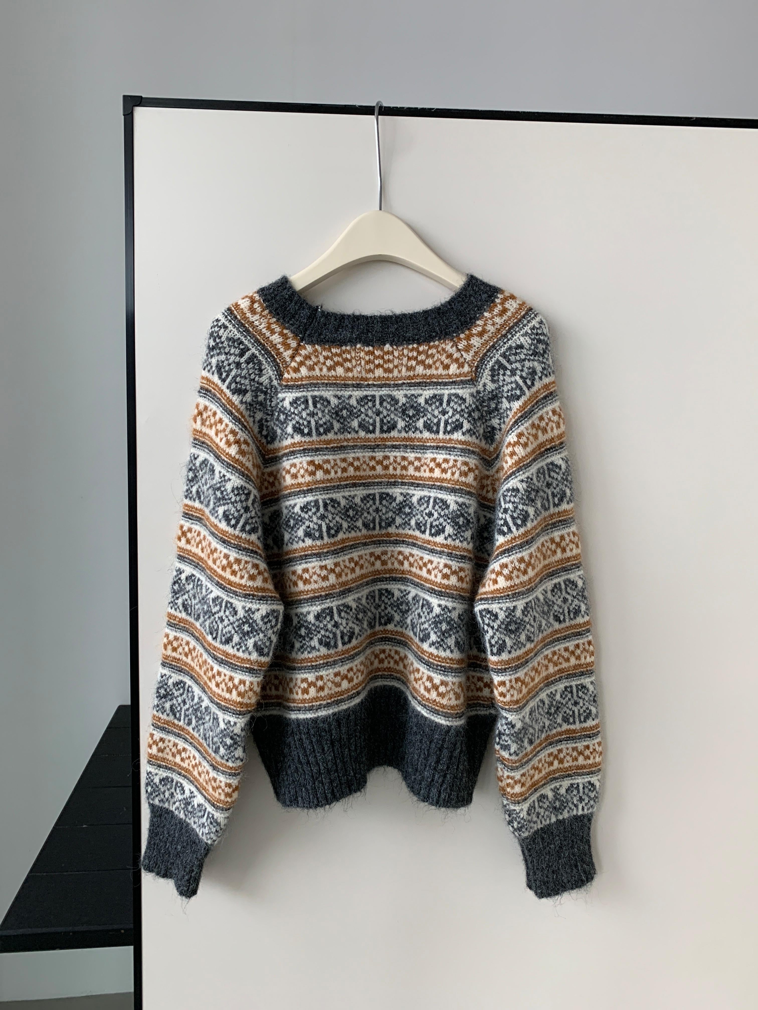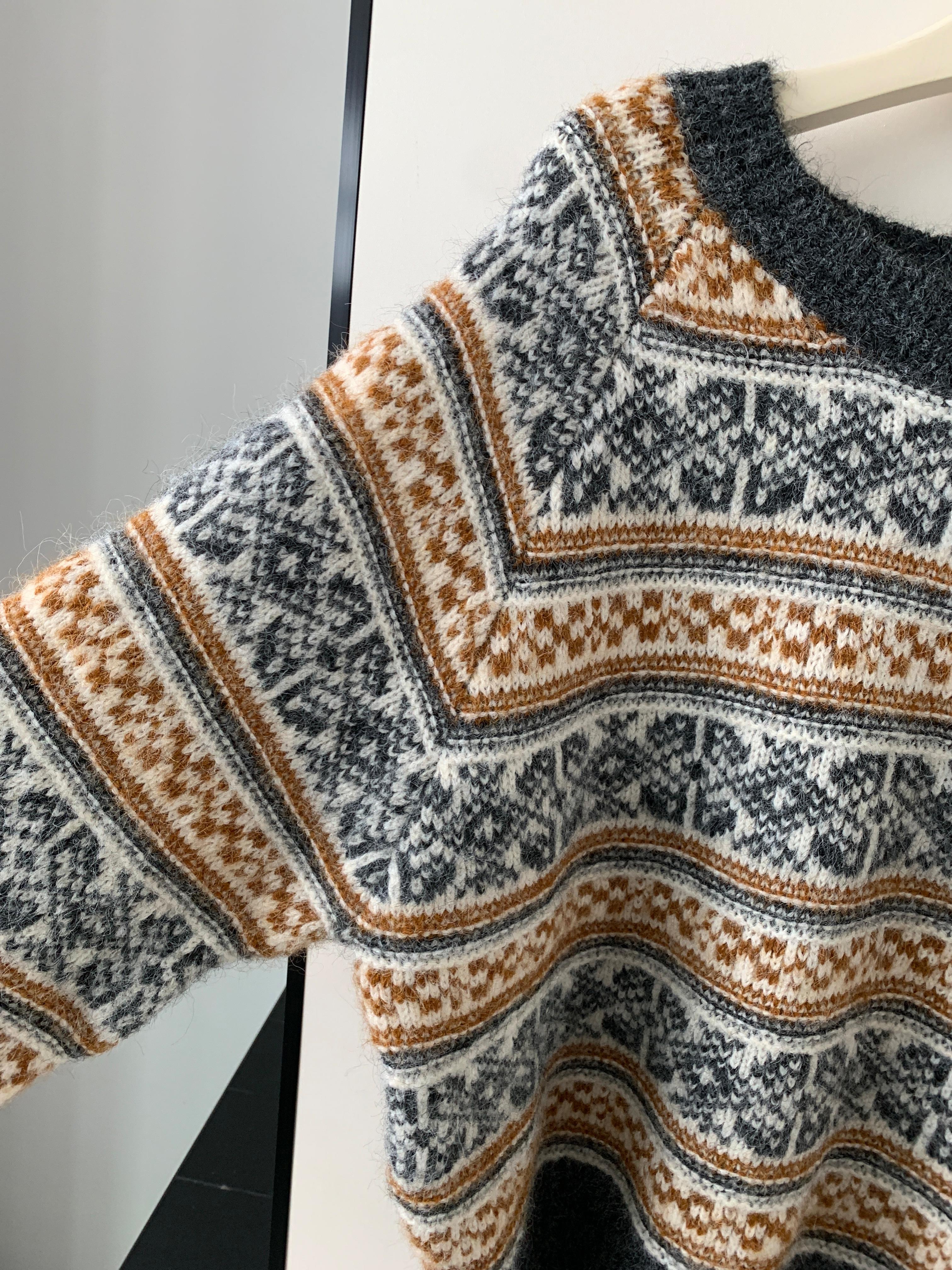 3. 【C8309】韓系休閒復古圖騰費爾島套頭保暖毛衣