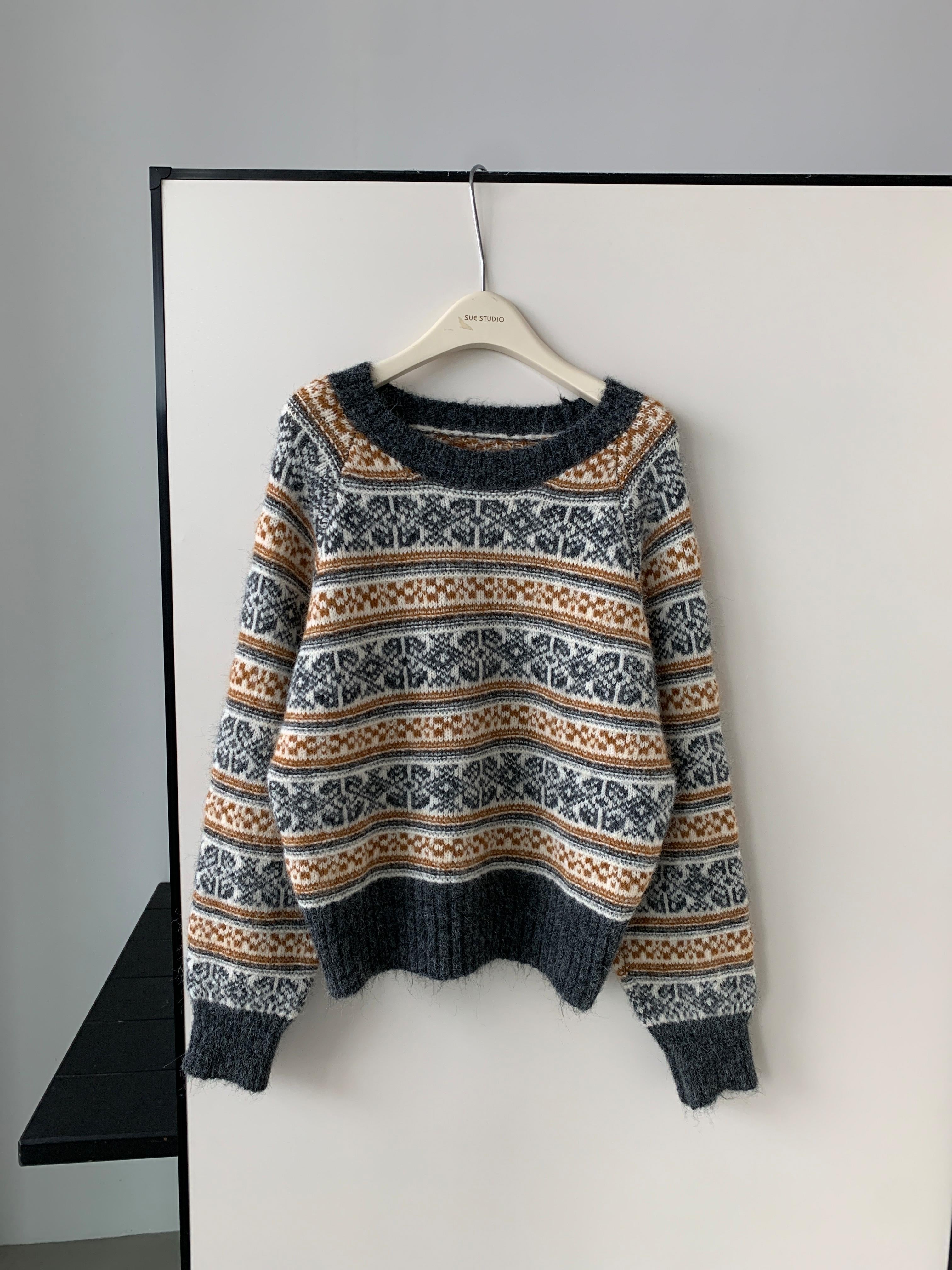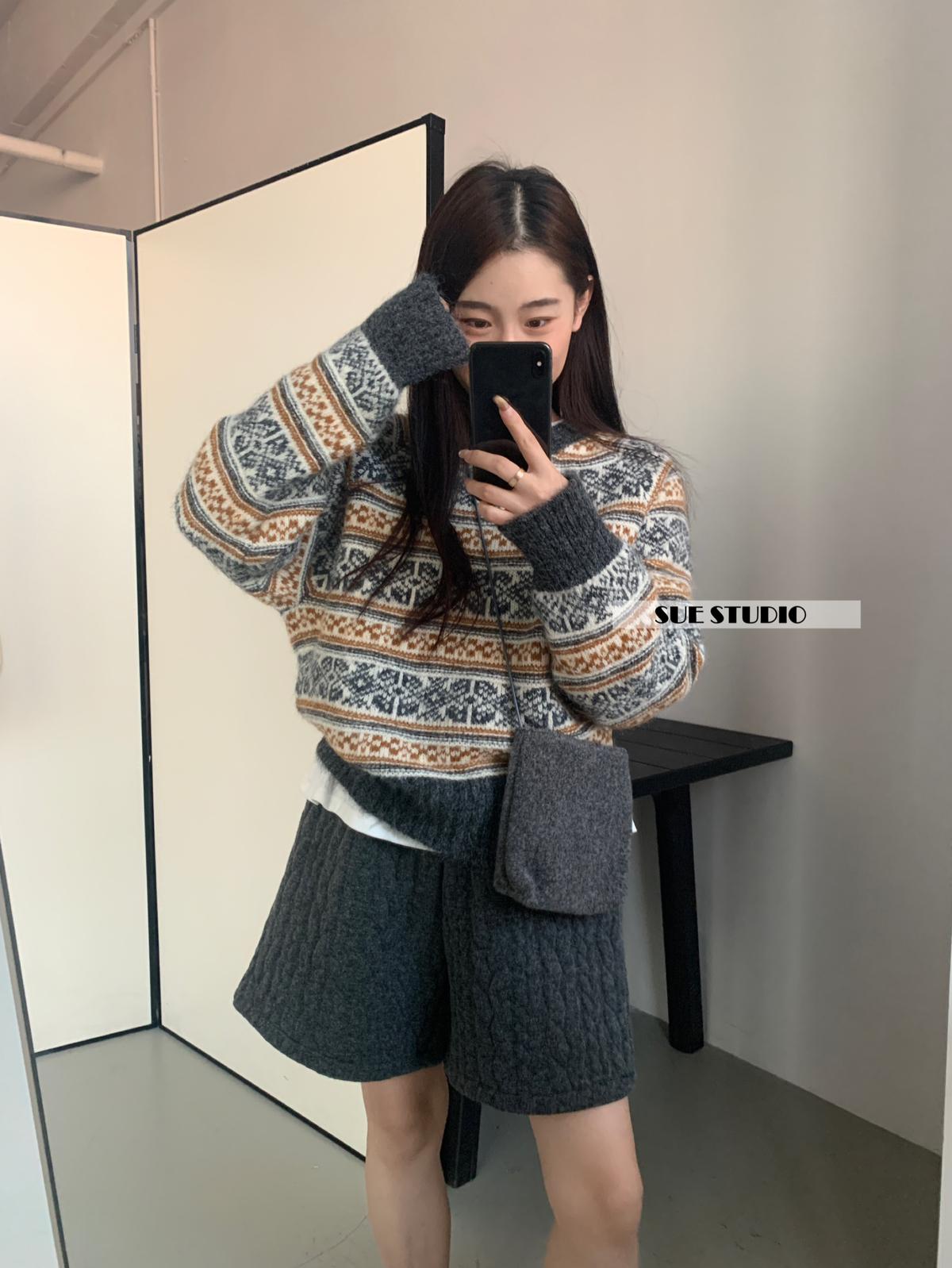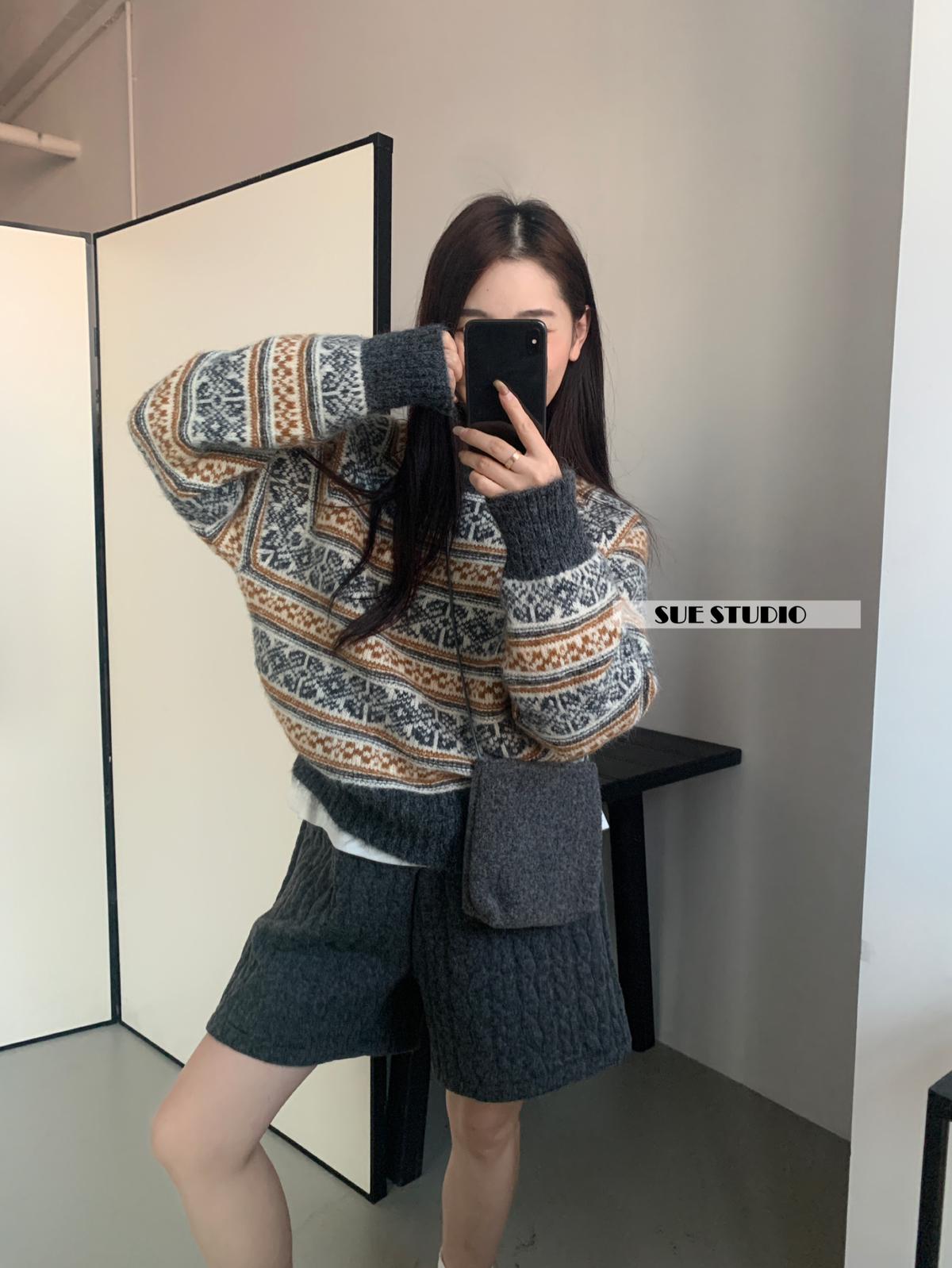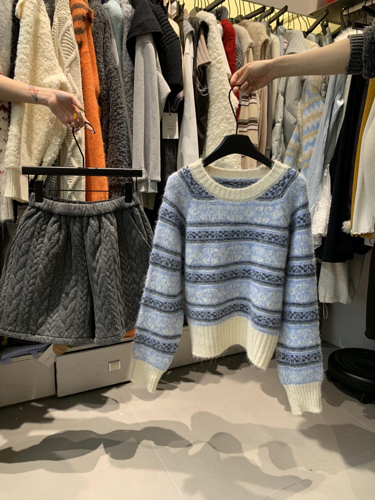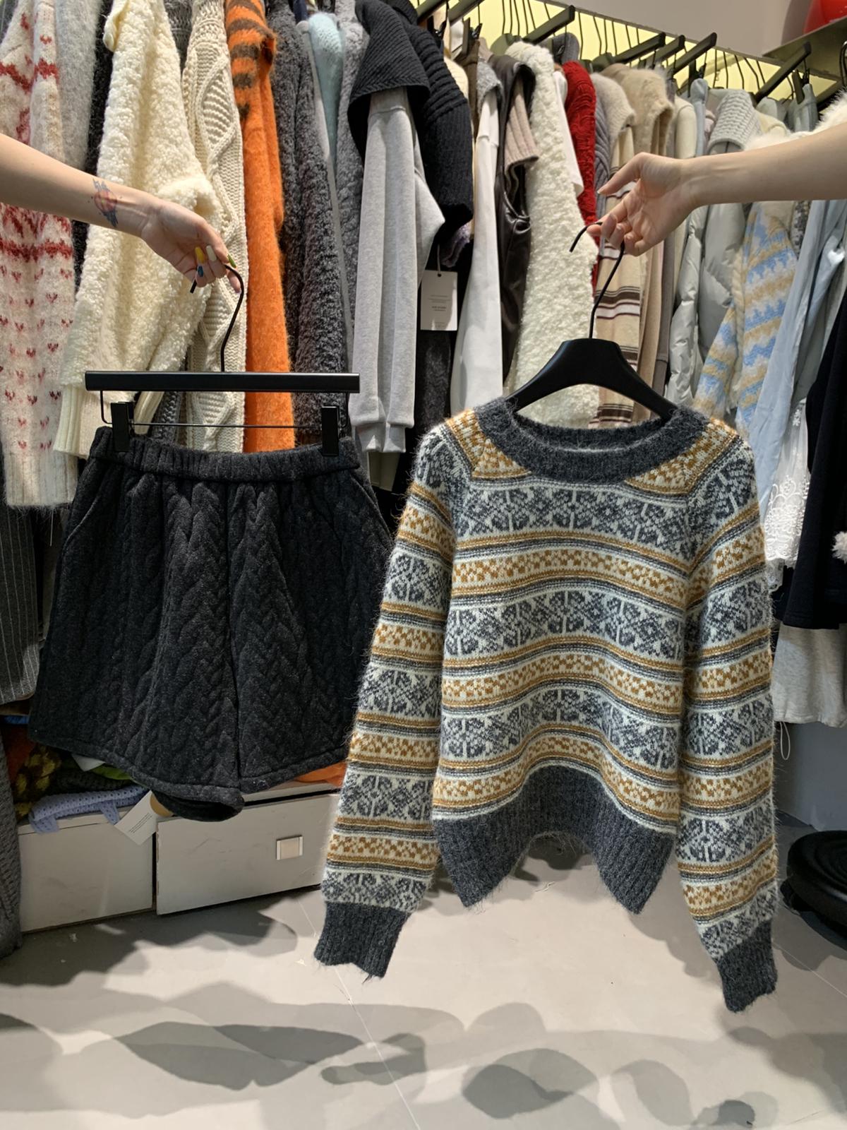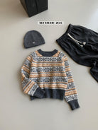 3. 【C8309】韓系休閒復古圖騰費爾島套頭保暖毛衣
