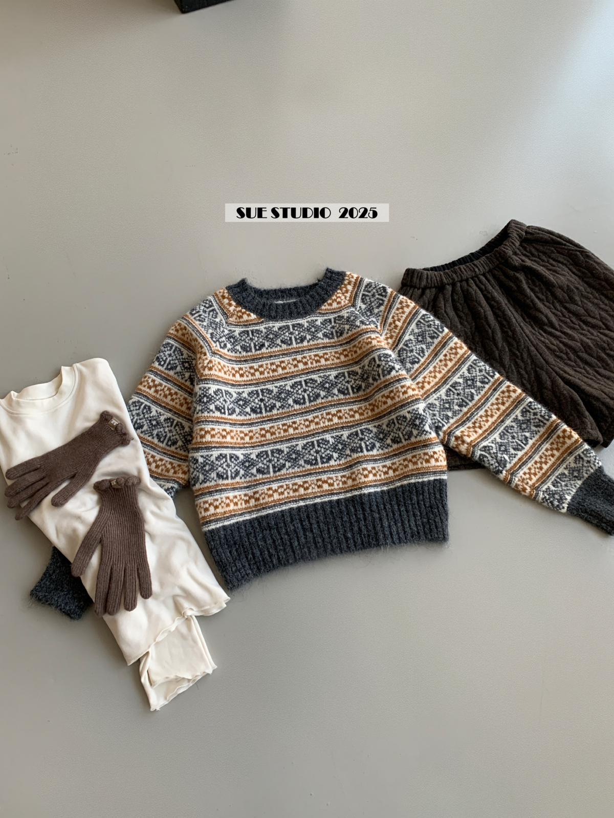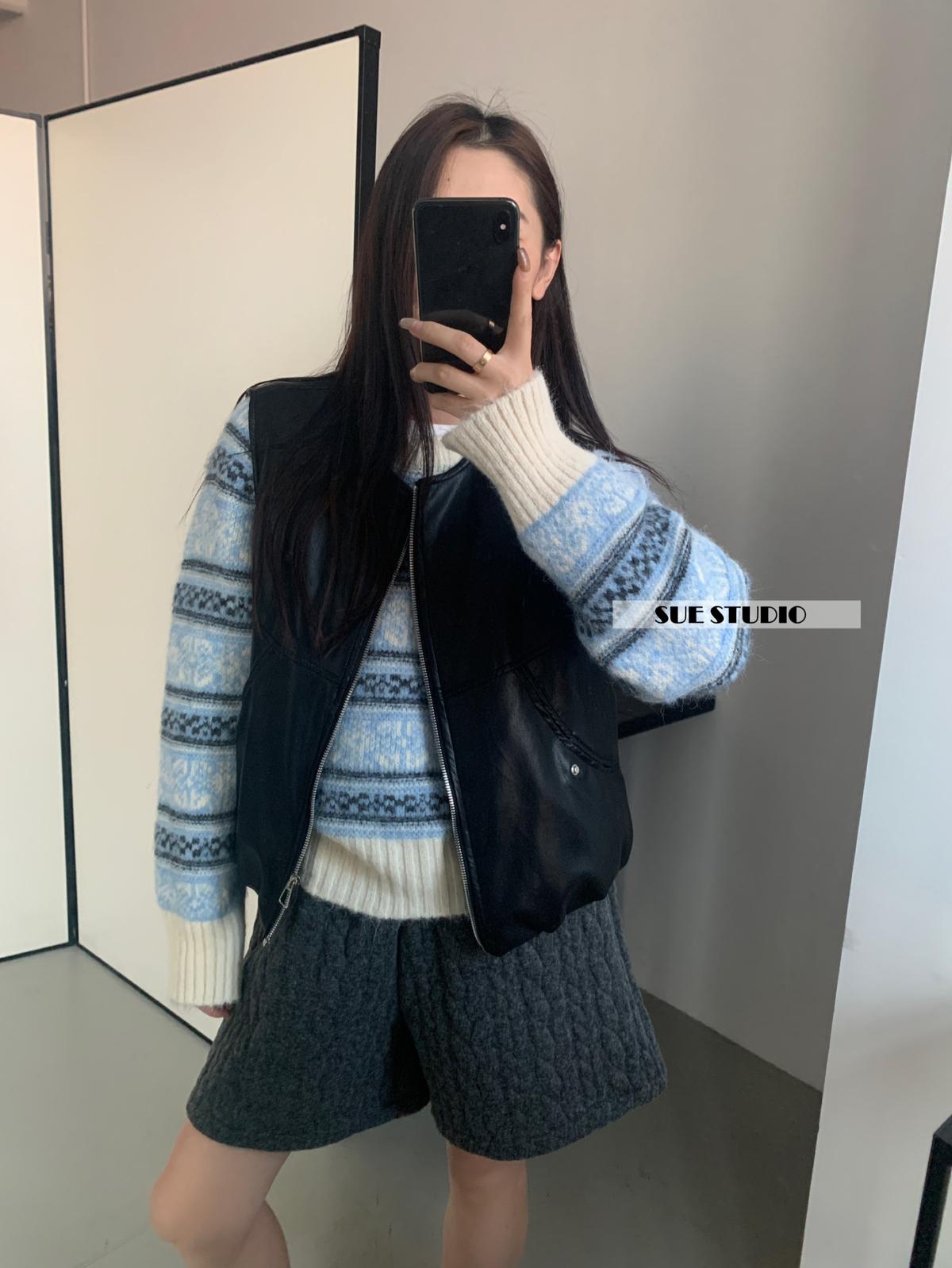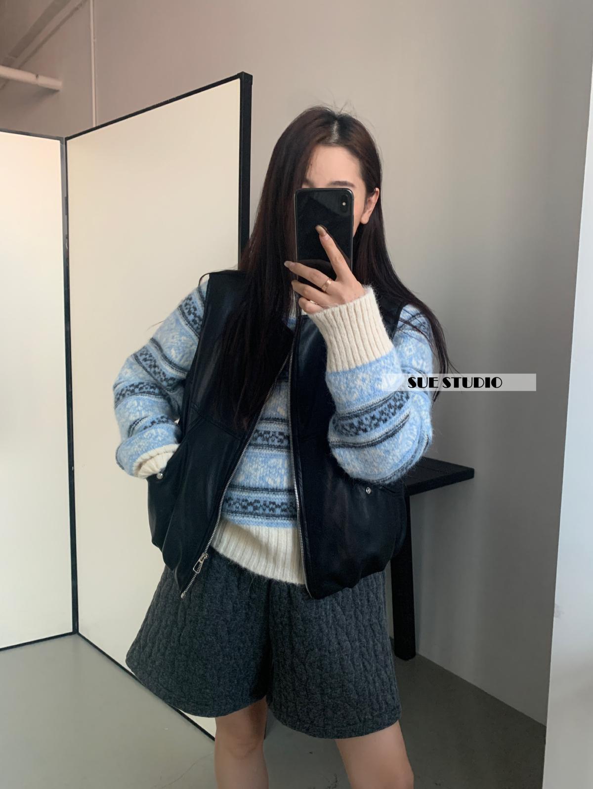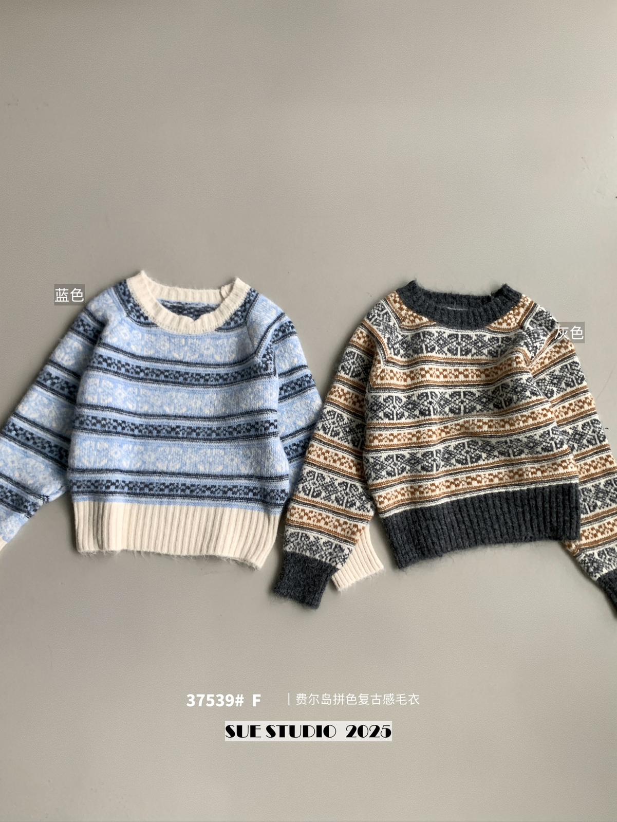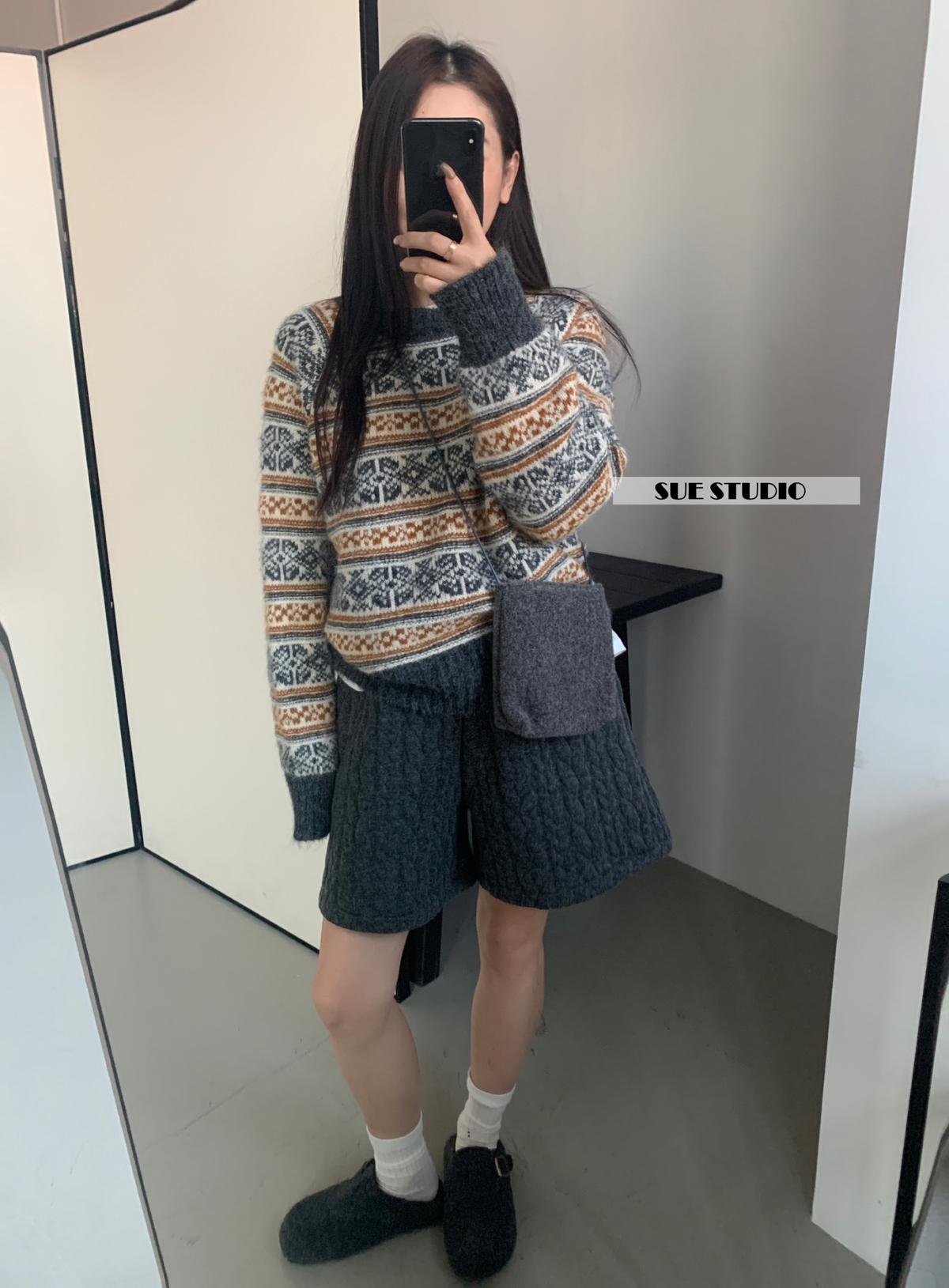 3. 【C8309】韓系休閒復古圖騰費爾島套頭保暖毛衣