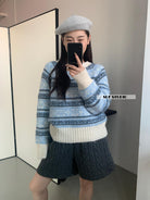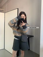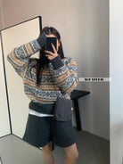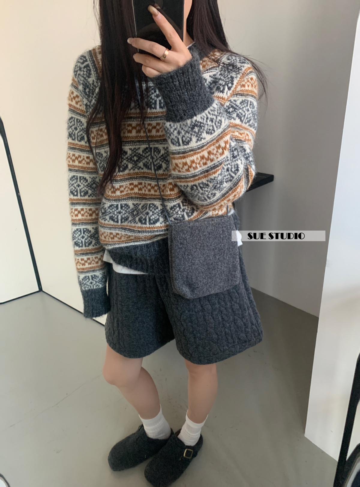 【C8309】韓系休閒復古圖騰費爾島套頭保暖毛衣