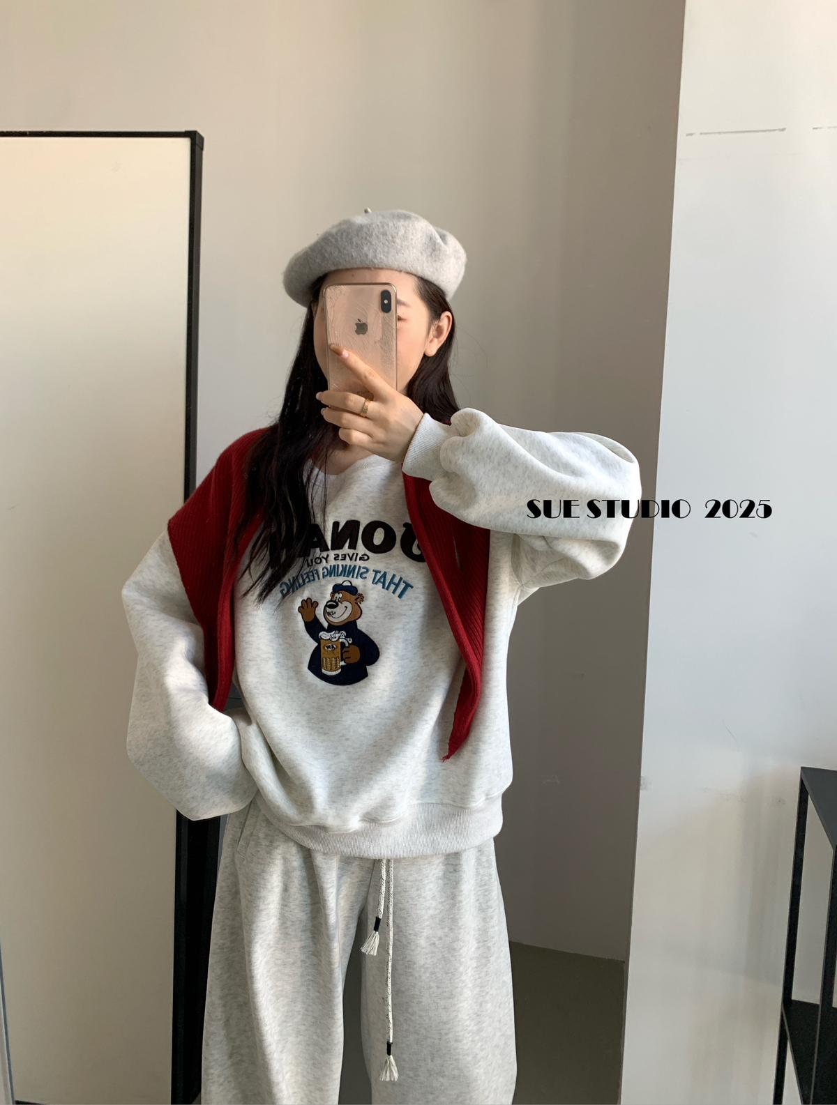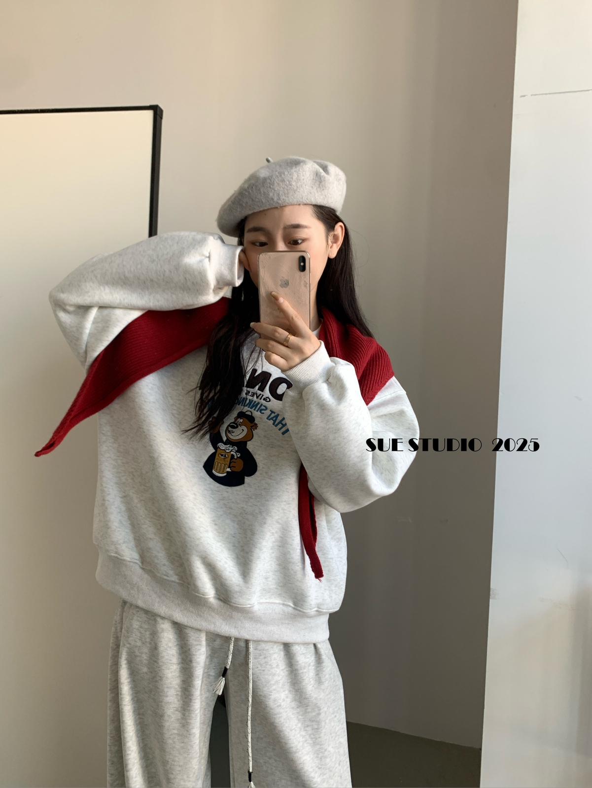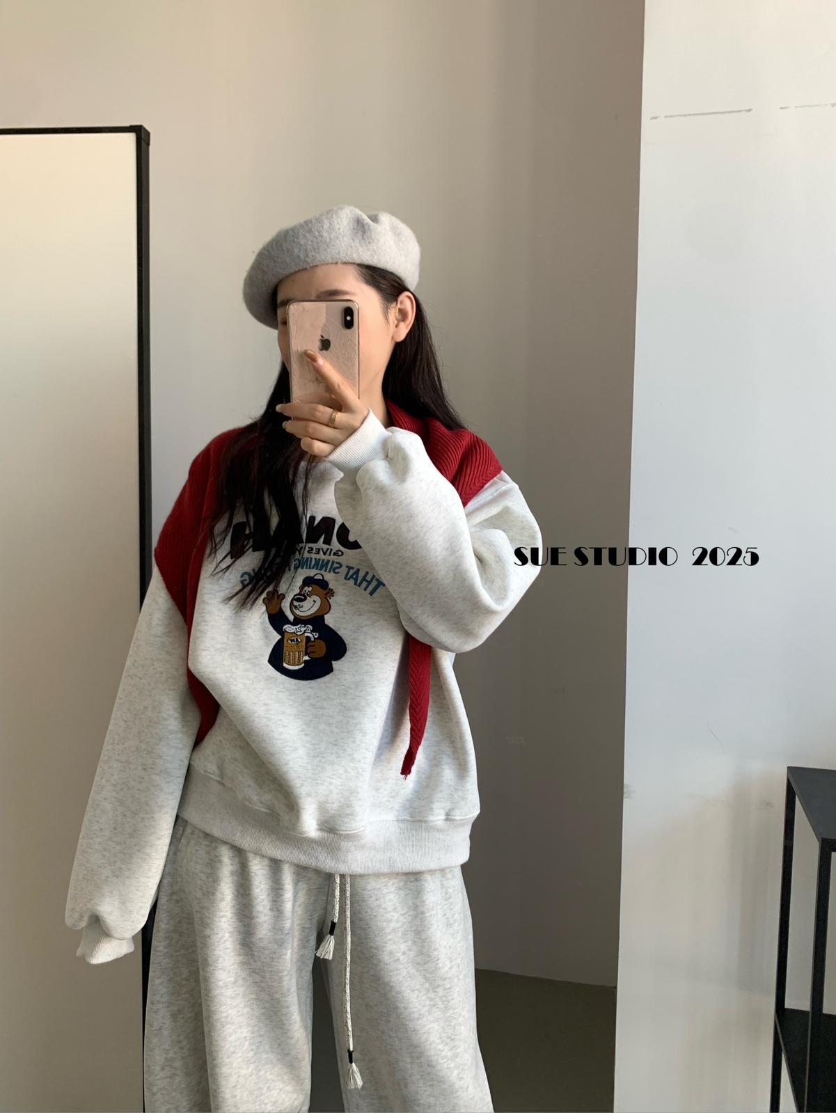 3. 【C8311】韓系休閒寬鬆刺繡小熊加絨衛衣