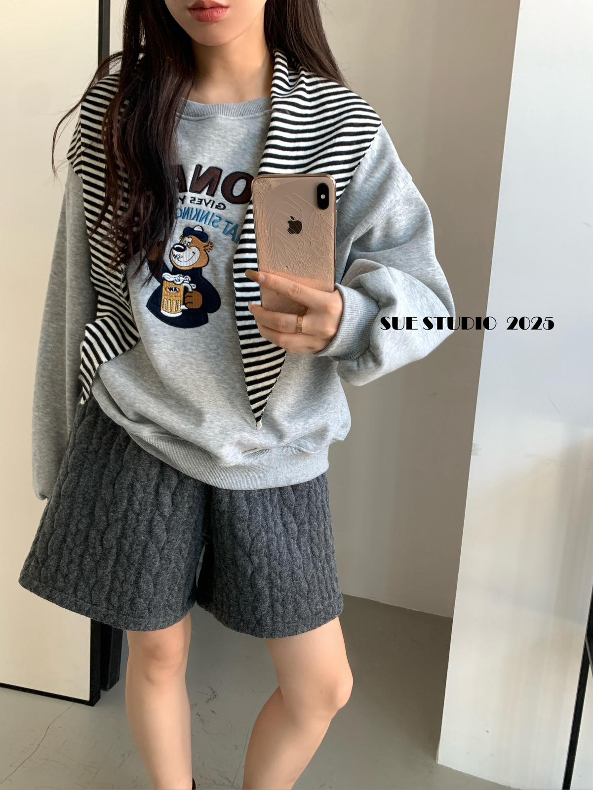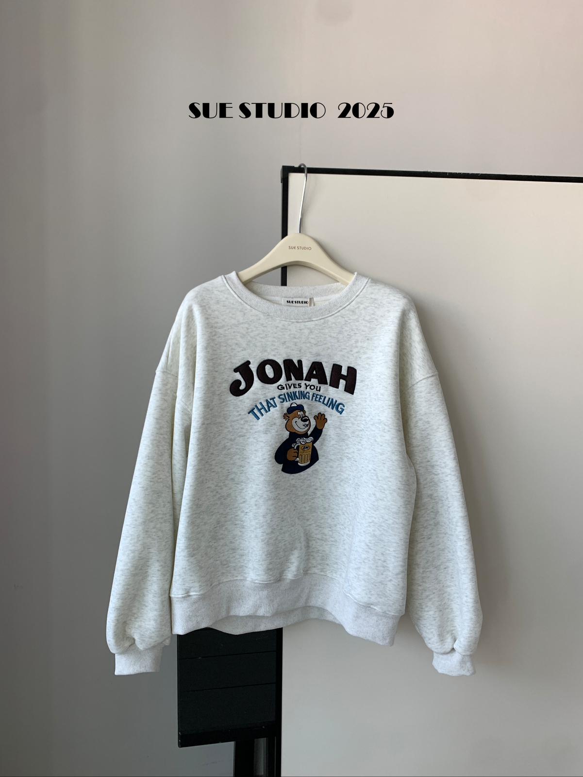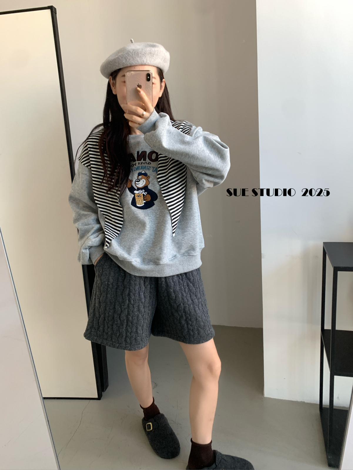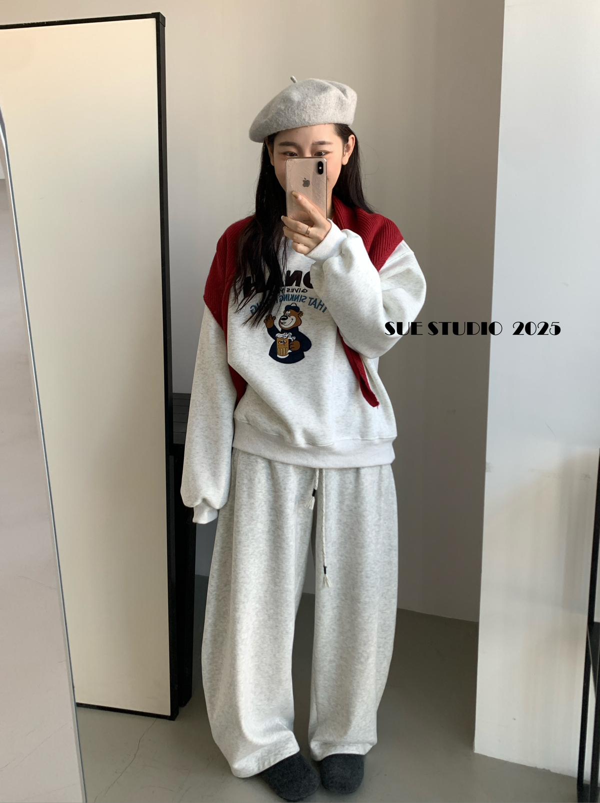 3. 【C8311】韓系休閒寬鬆刺繡小熊加絨衛衣