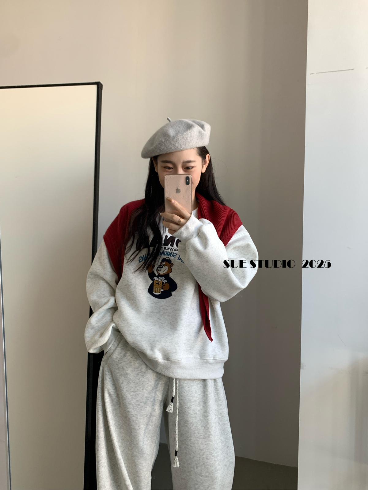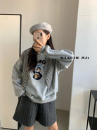 【C8311】韓系休閒寬鬆刺繡小熊加絨衛衣
