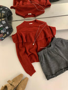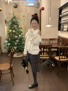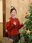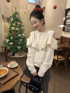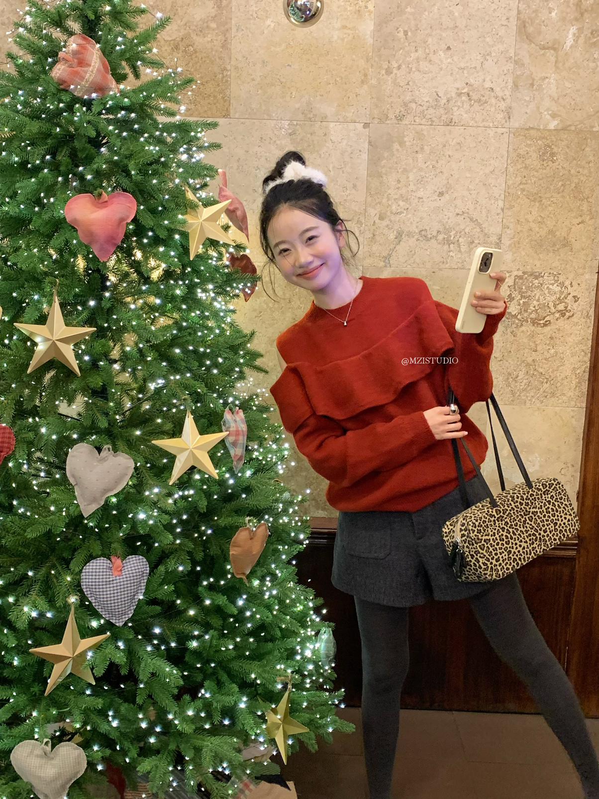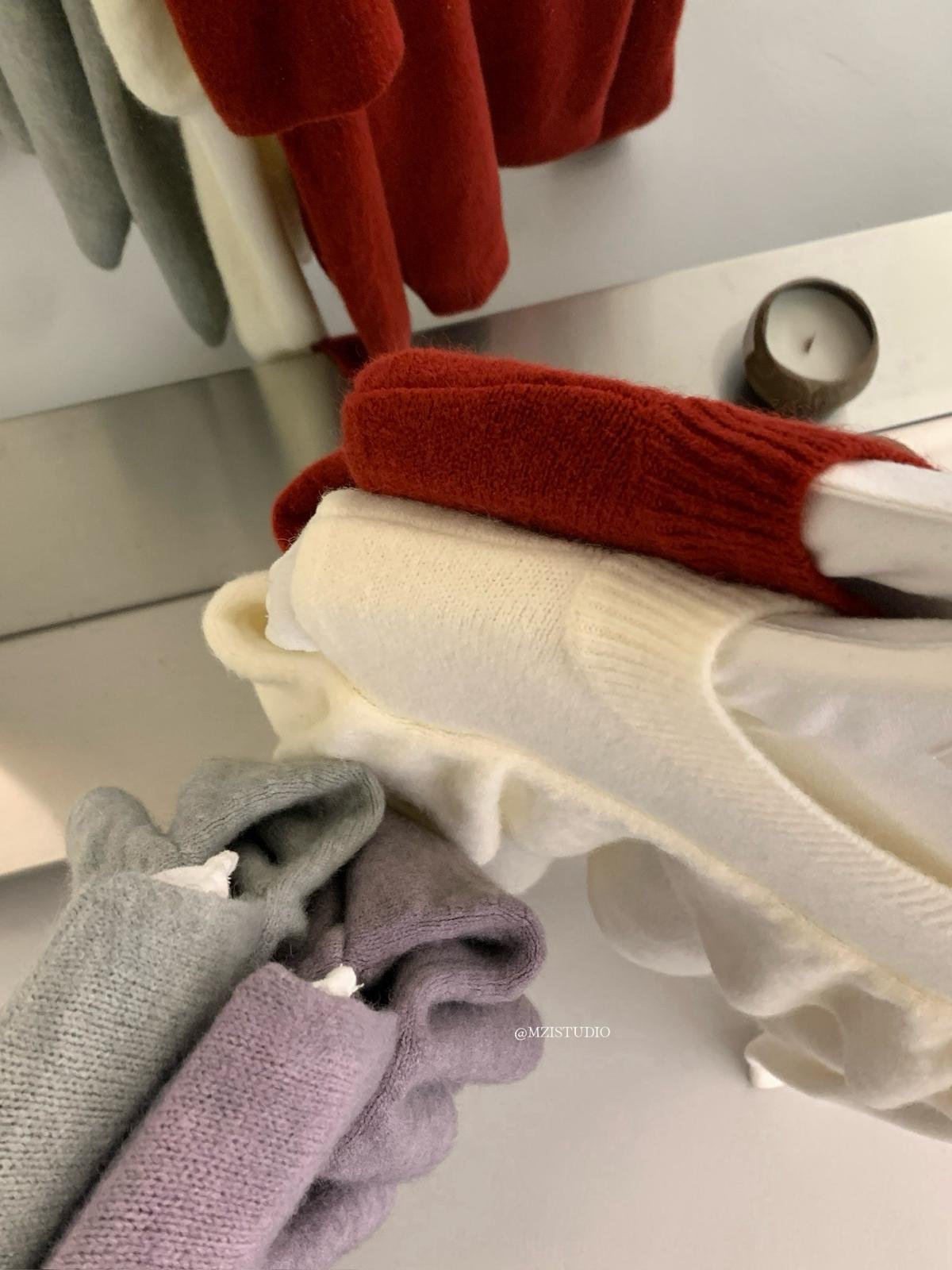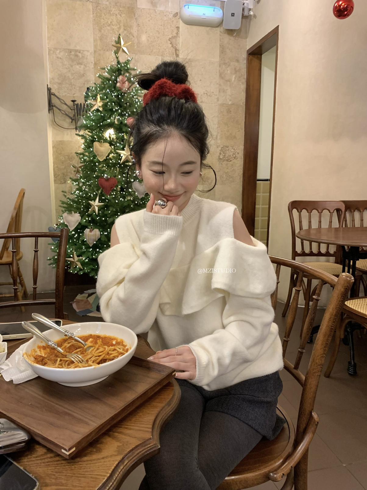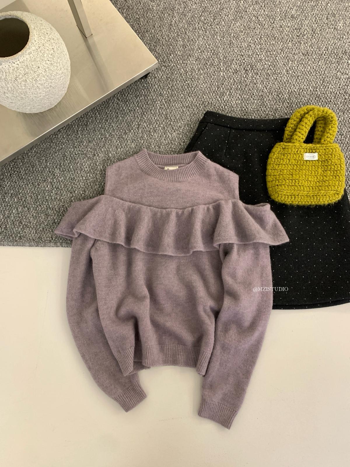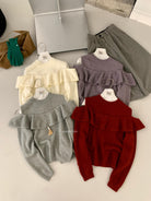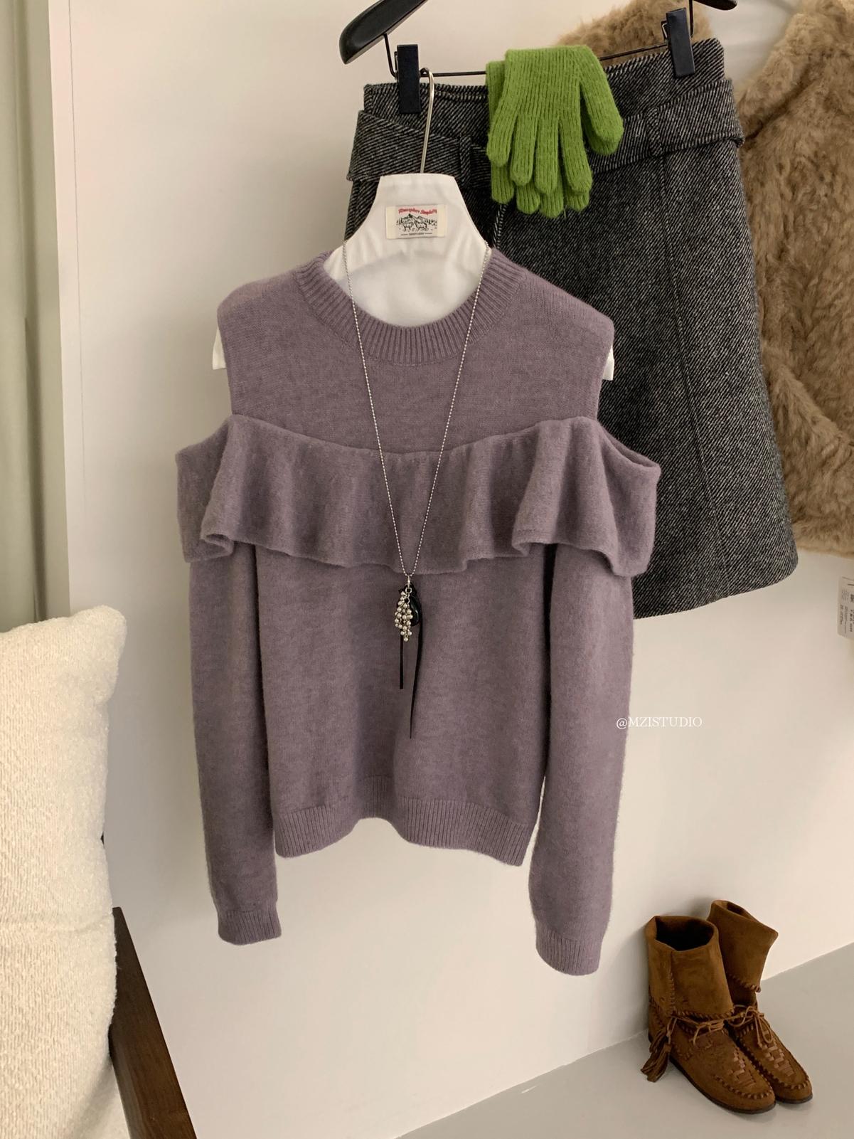 3. 【C8315】韓感約會小心機假兩件荷葉邊露肩顯瘦氛圍感冬日保暖毛衣