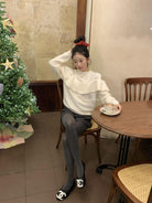【C8315】韓感約會小心機假兩件荷葉邊露肩顯瘦氛圍感冬日保暖毛衣