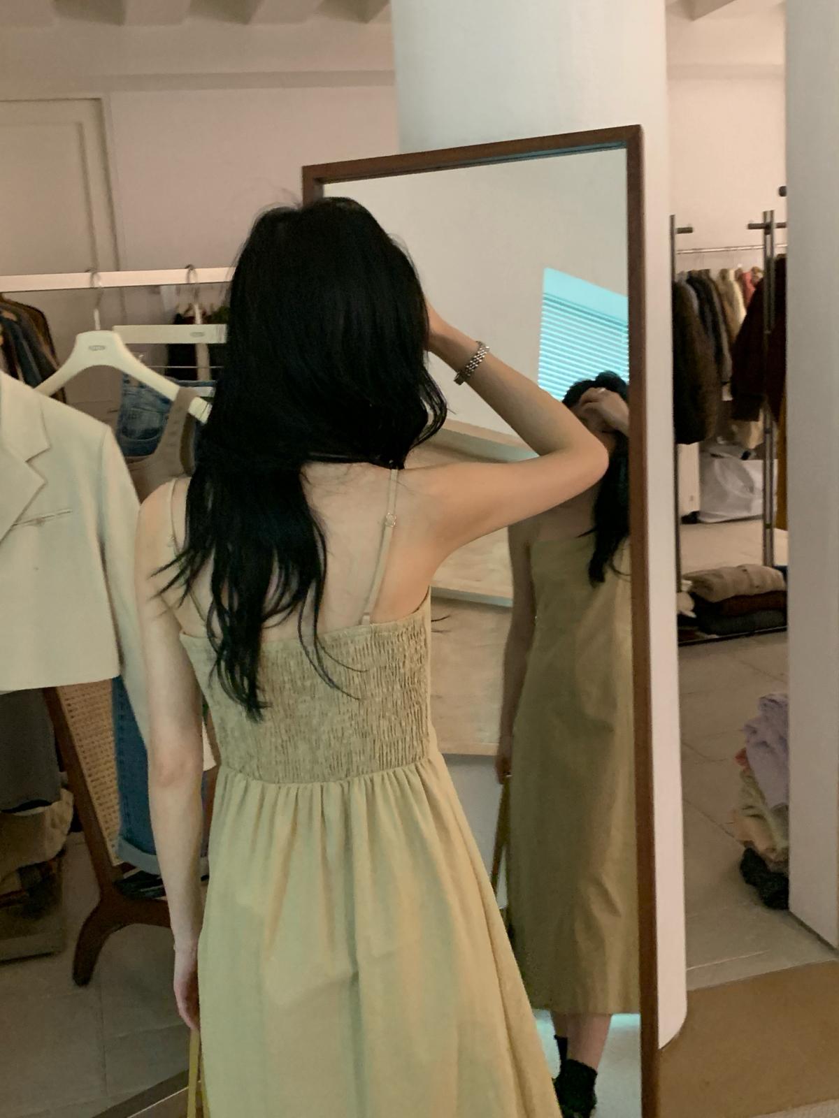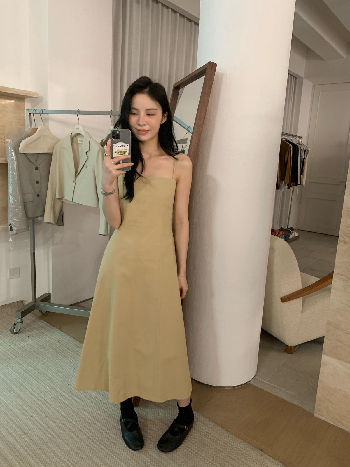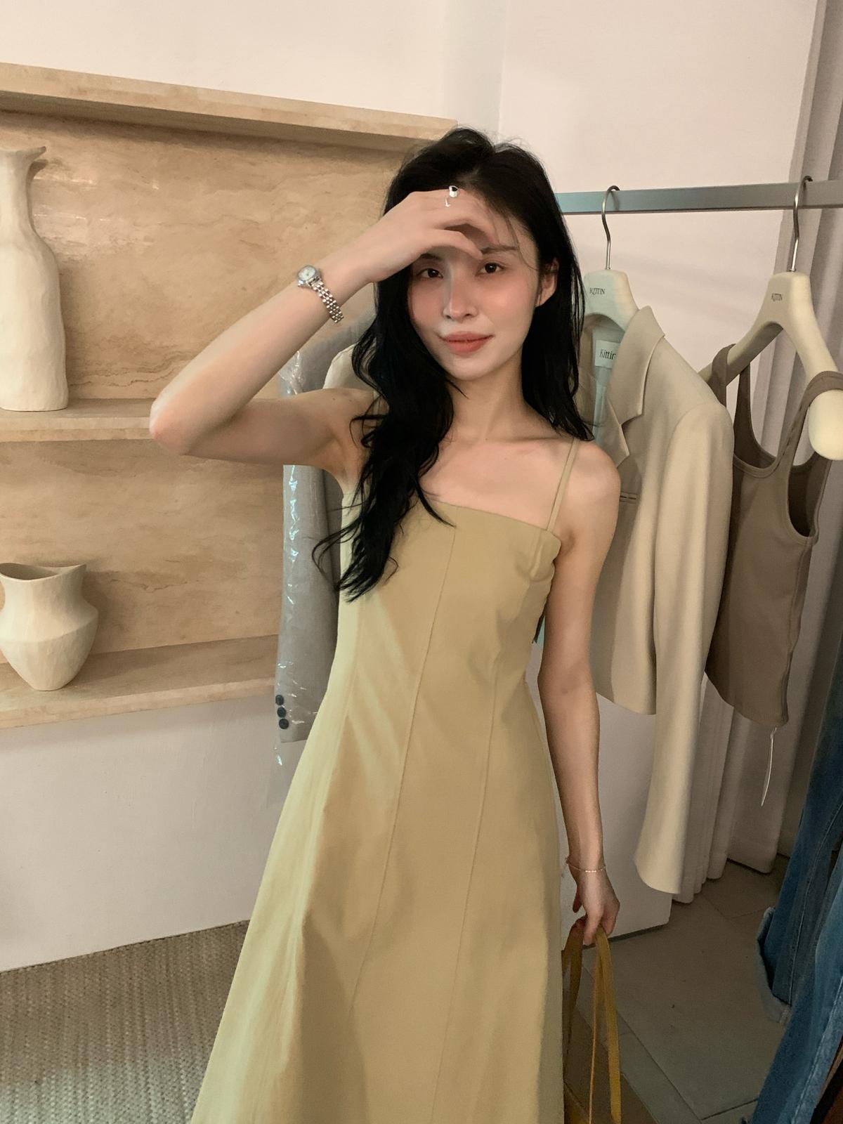 3. 【C8319】韓系棉感純色無袖收腰吊帶連衣裙