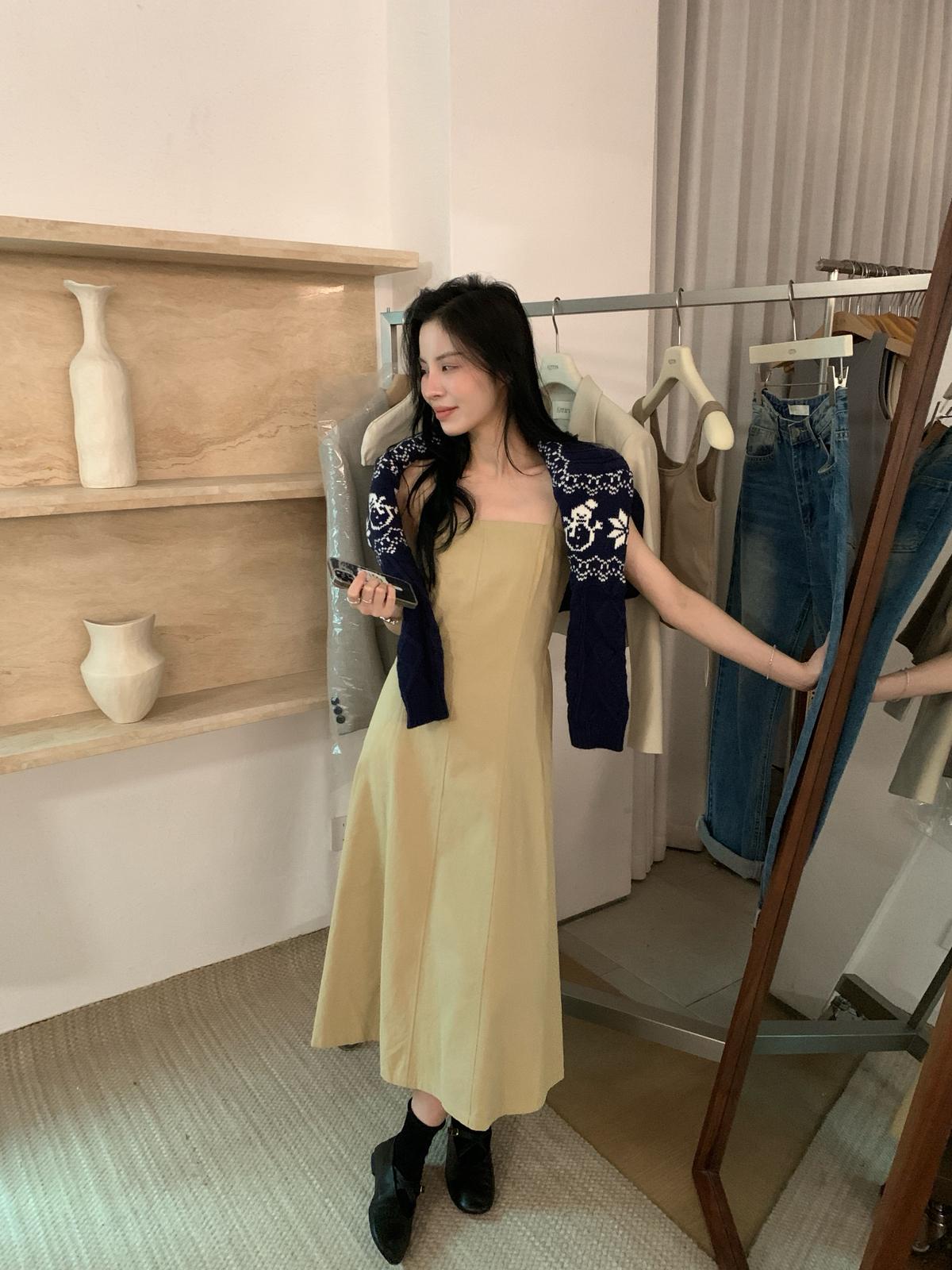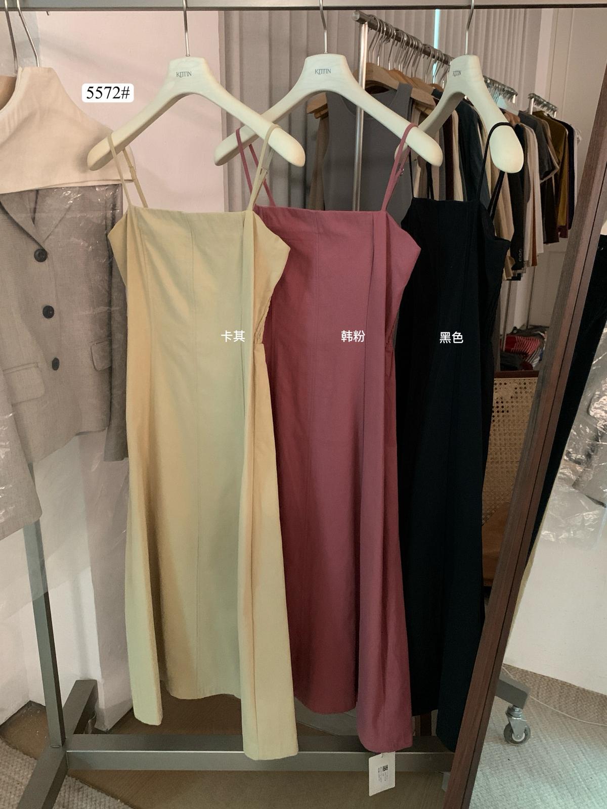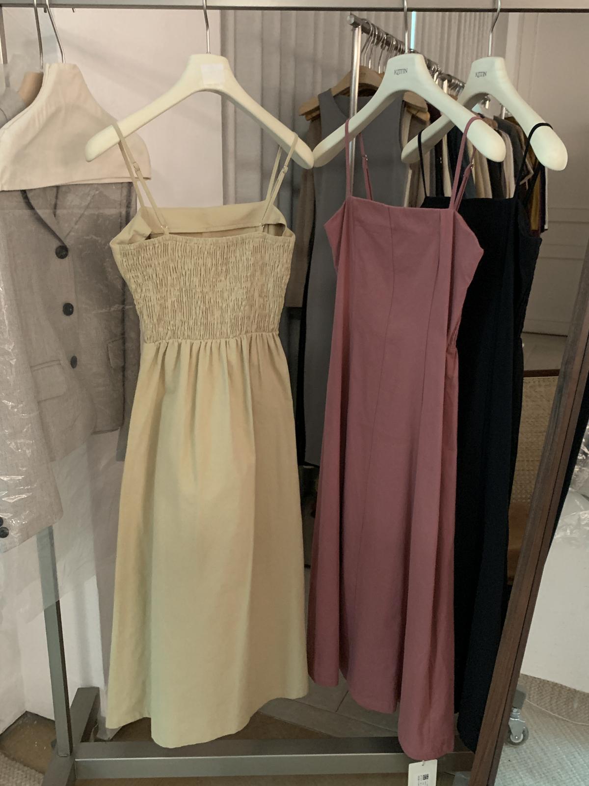 3. 【C8319】韓系棉感純色無袖收腰吊帶連衣裙