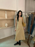 【C8319】韓系棉感純色無袖收腰吊帶連衣裙