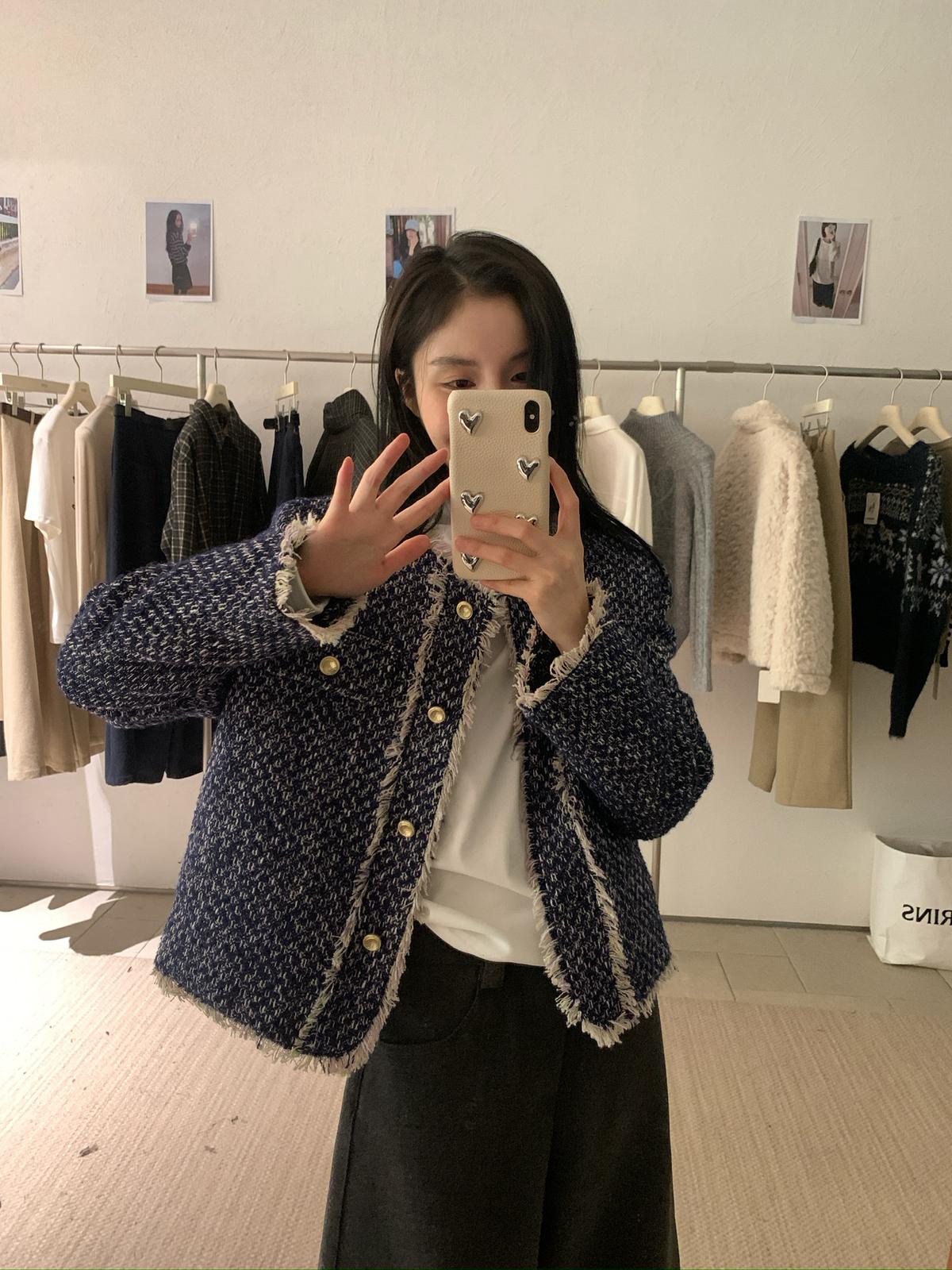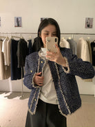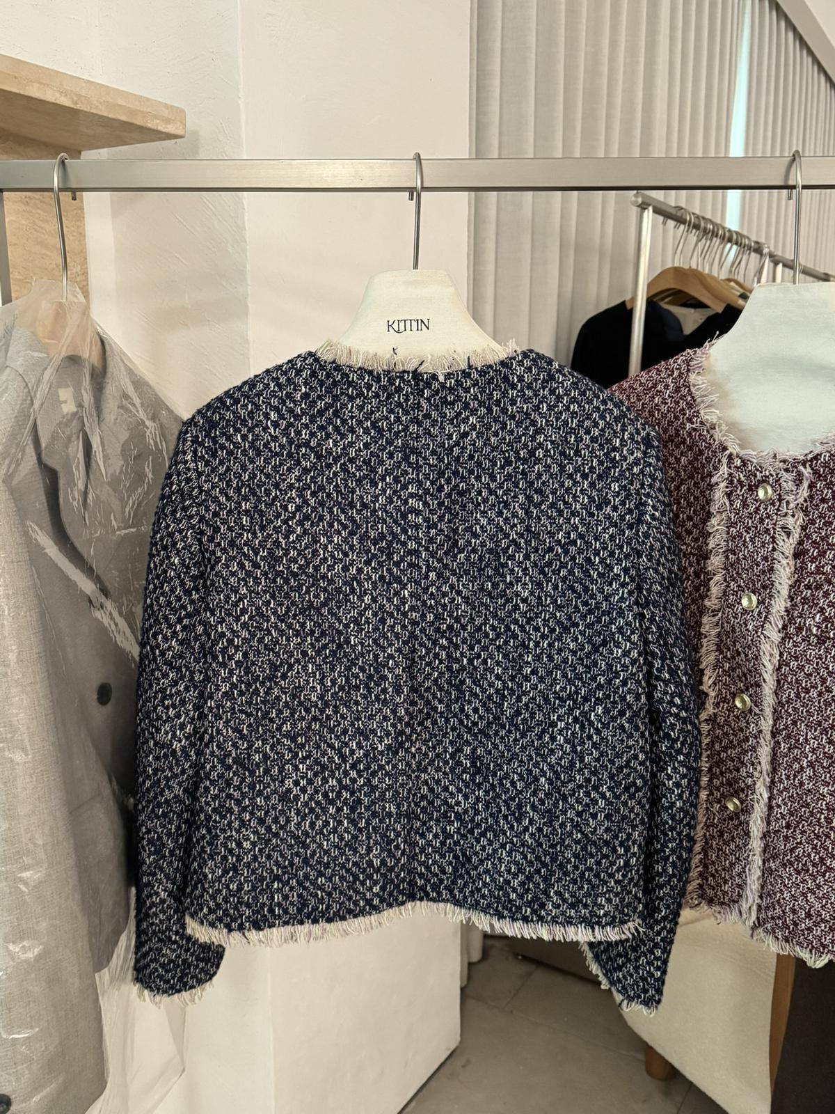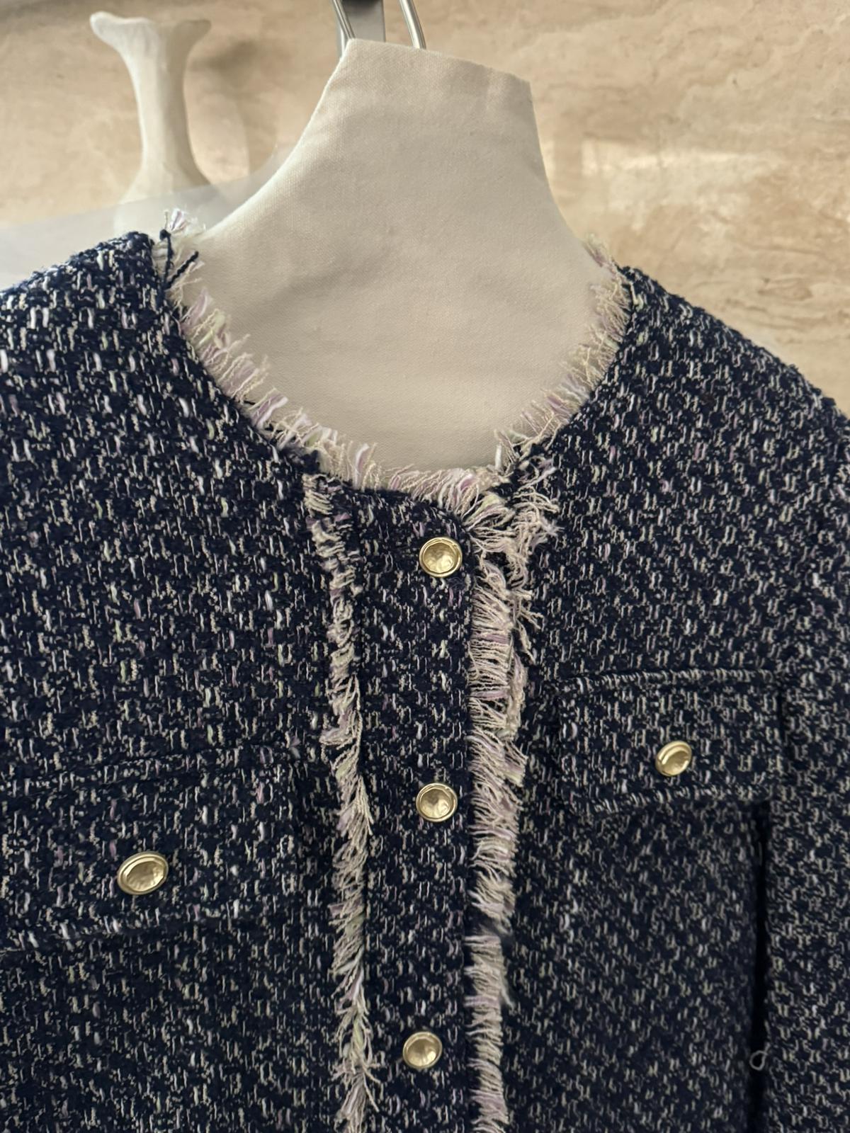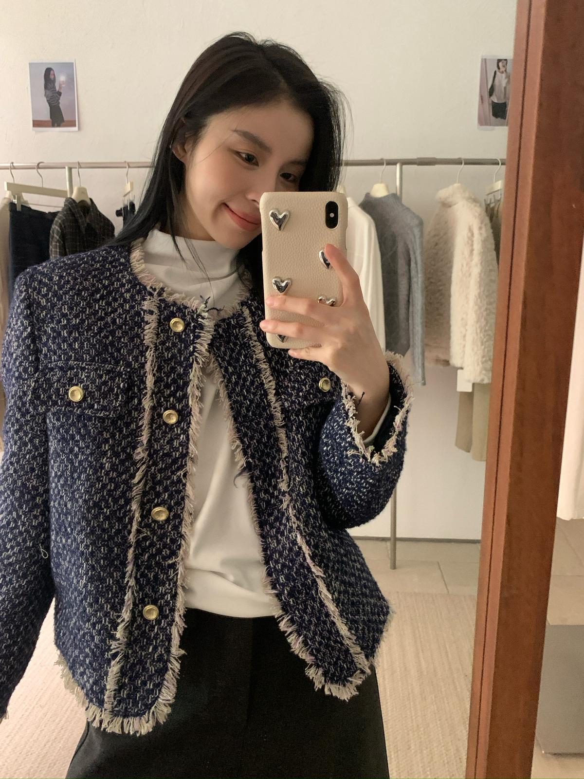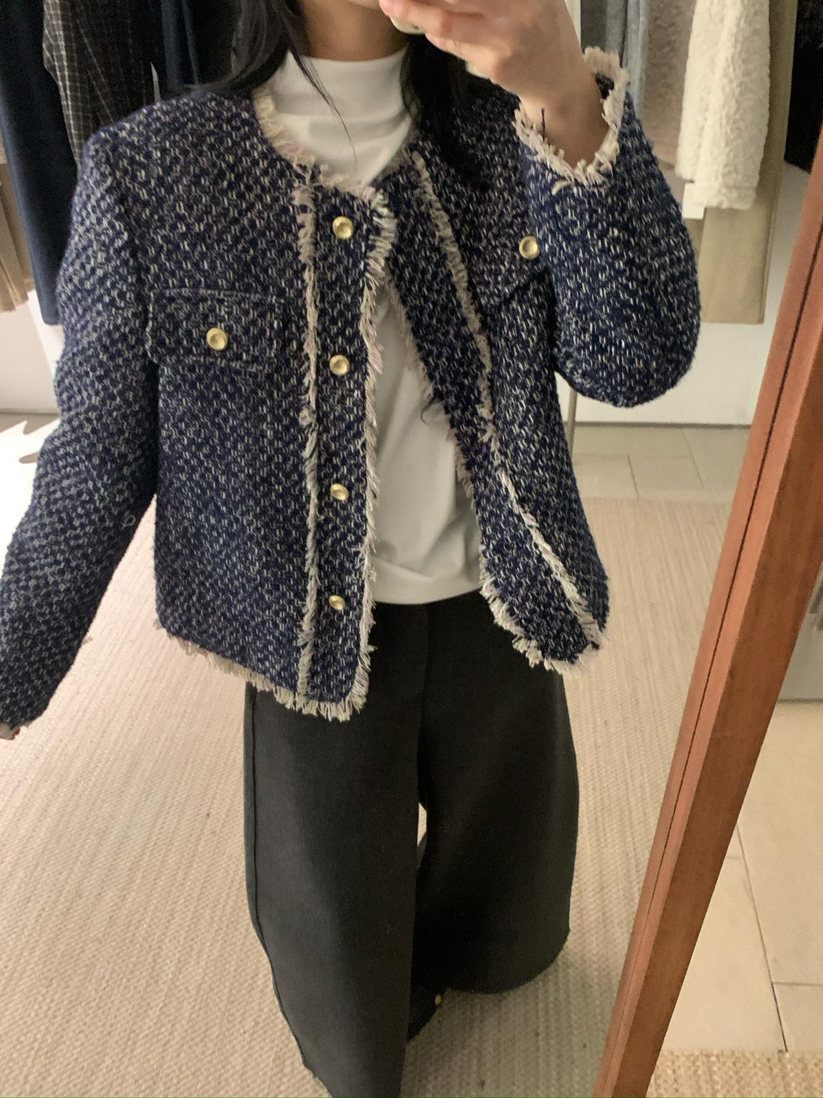 3. 【C8320】法式小香風復古斜紋軟呢夾棉短外套