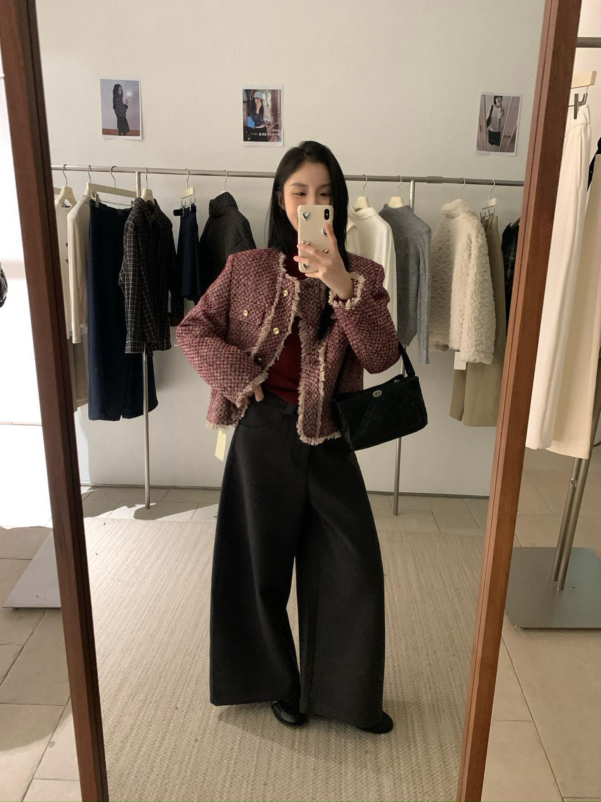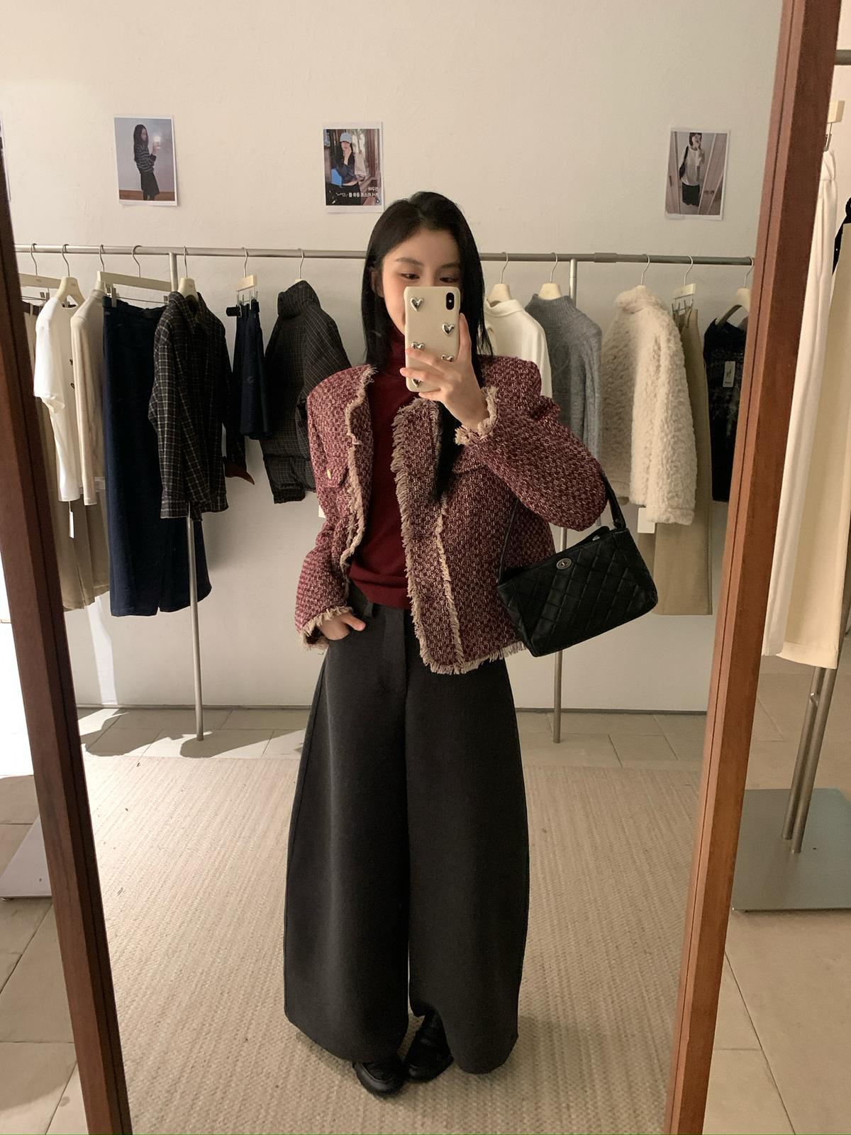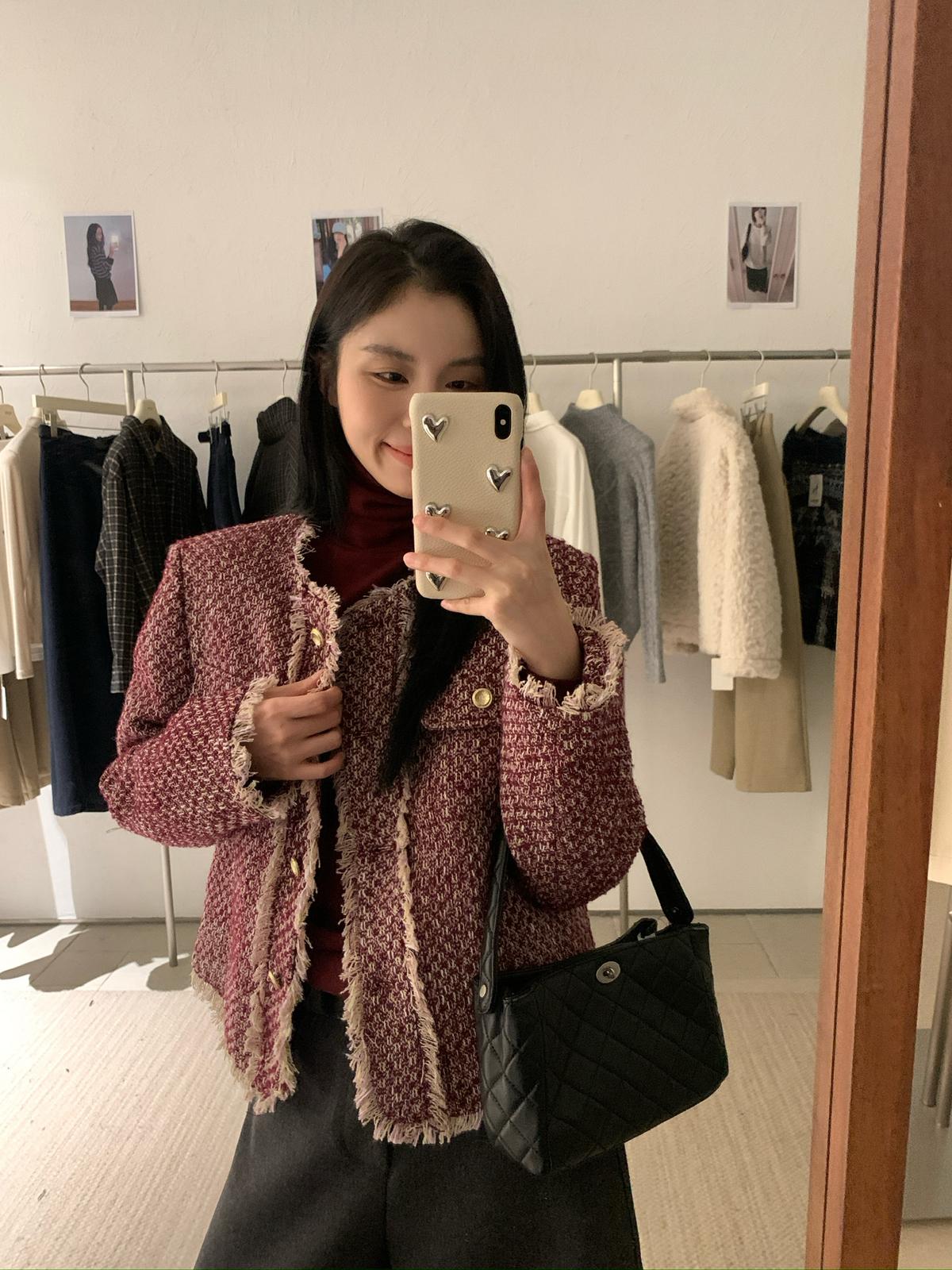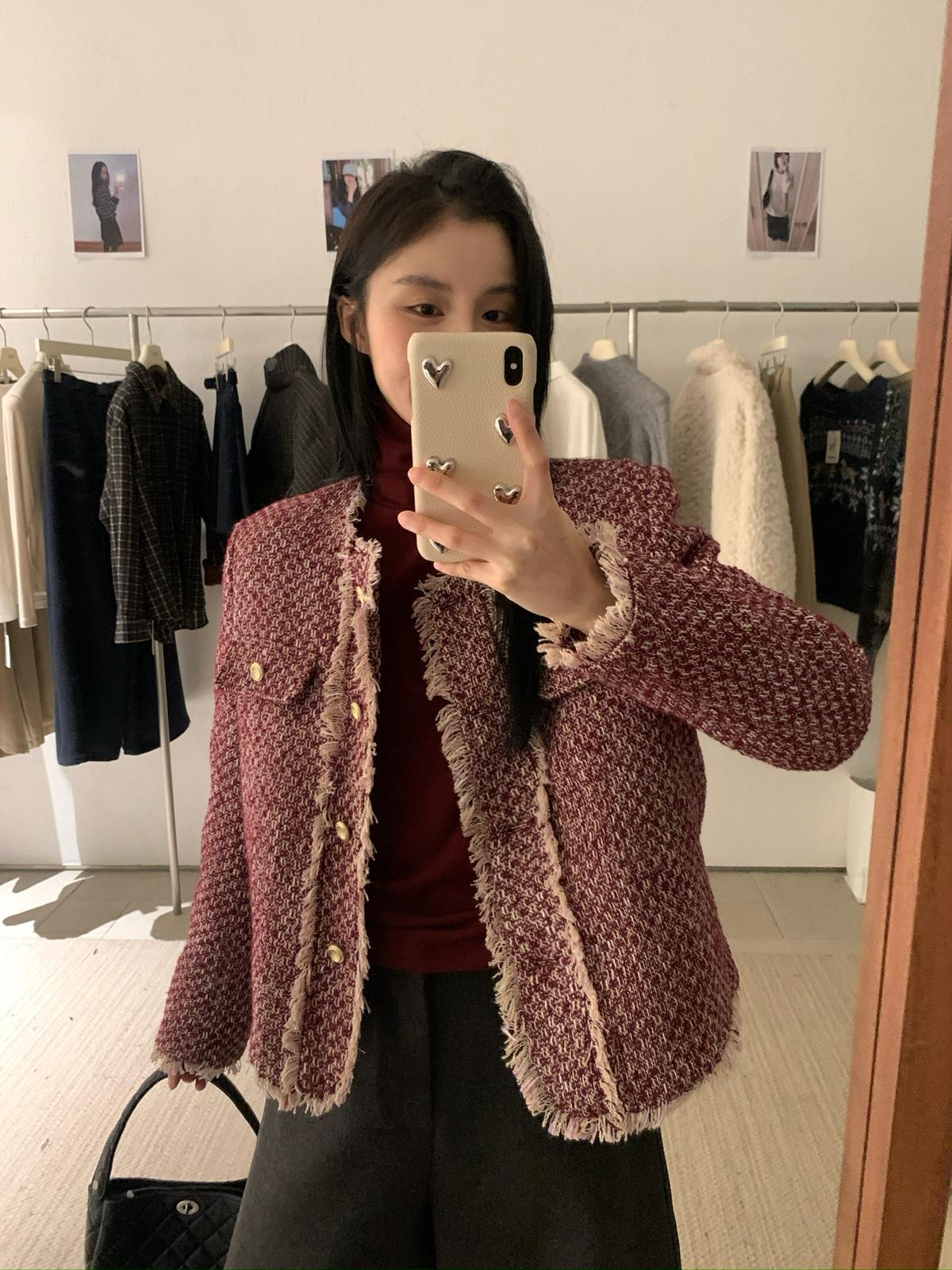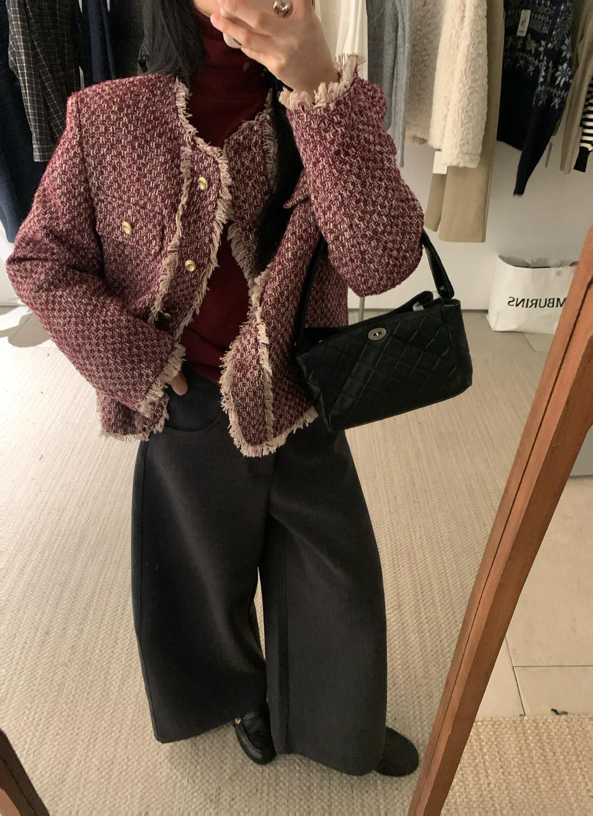 3. 【C8320】法式小香風復古斜紋軟呢夾棉短外套