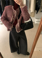 【C8320】法式小香風復古斜紋軟呢夾棉短外套